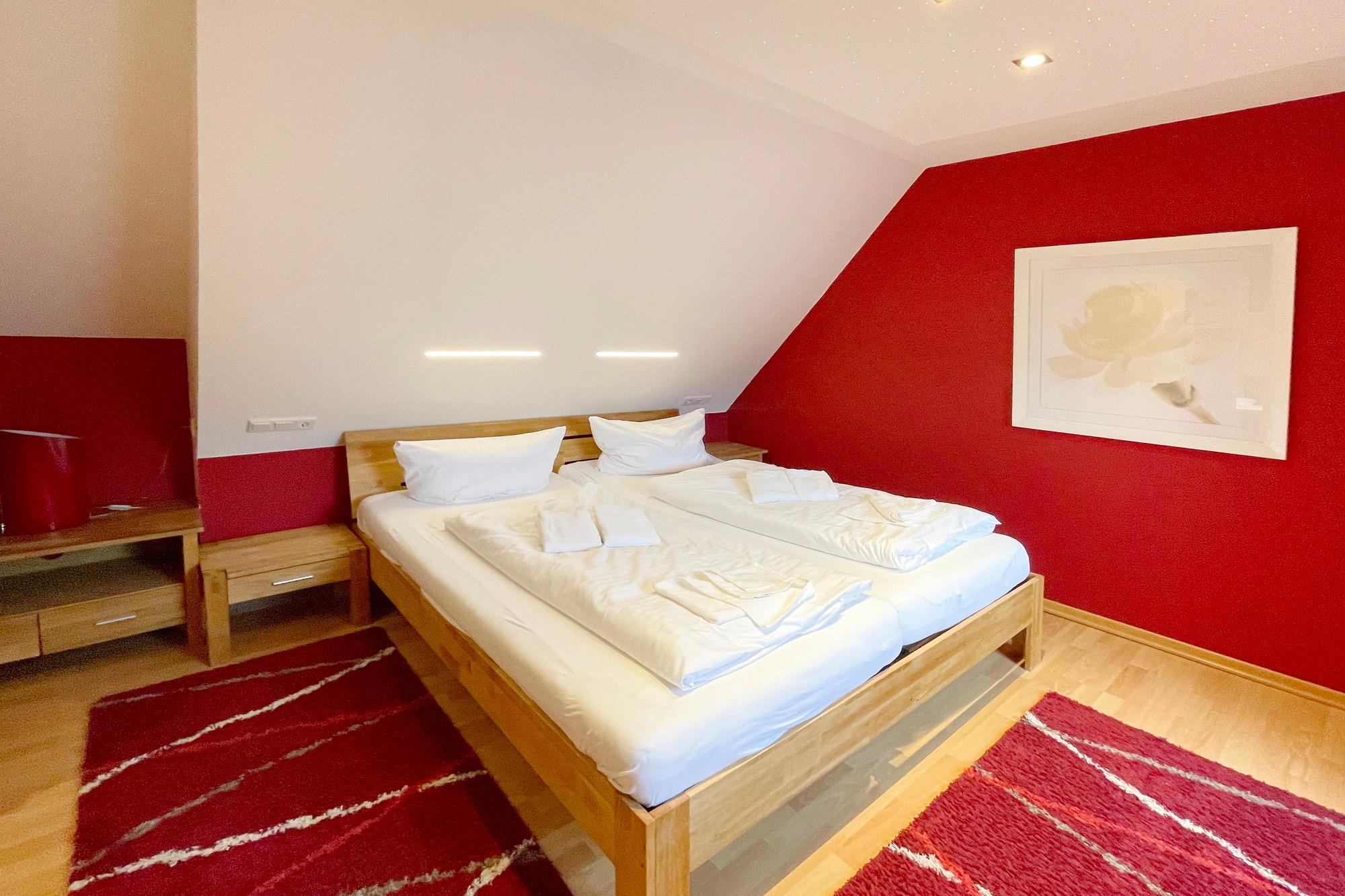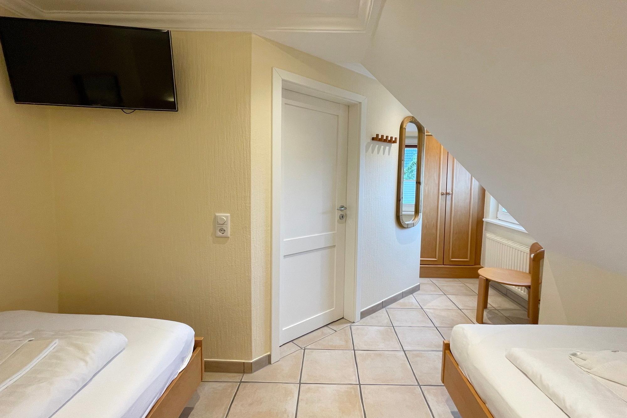 3 Zimmerwohnung mit Balkon (OG und DG), Wohnzimmer mit gemütlicher Sitzgruppe und Eßecke, offene Küche mit Cerankochfeld, und Geschirrspüler, Flatscreen-TV, 2 Schlafzimmer für je 2 Personen mit jeweils eigenem Badezimmer mit Dusche WC und Waschbecken, im UG befinden sich für die Gäste des Hauses Waschmaschine und Trockner gegen Gebühr. 1 PKW-Stellpaltz. Gerne dürfen Sie hier ein gut erzogenes Haustier mitbringen. Dafür wird dann eine einmalige Haustiergebühr berechnet.