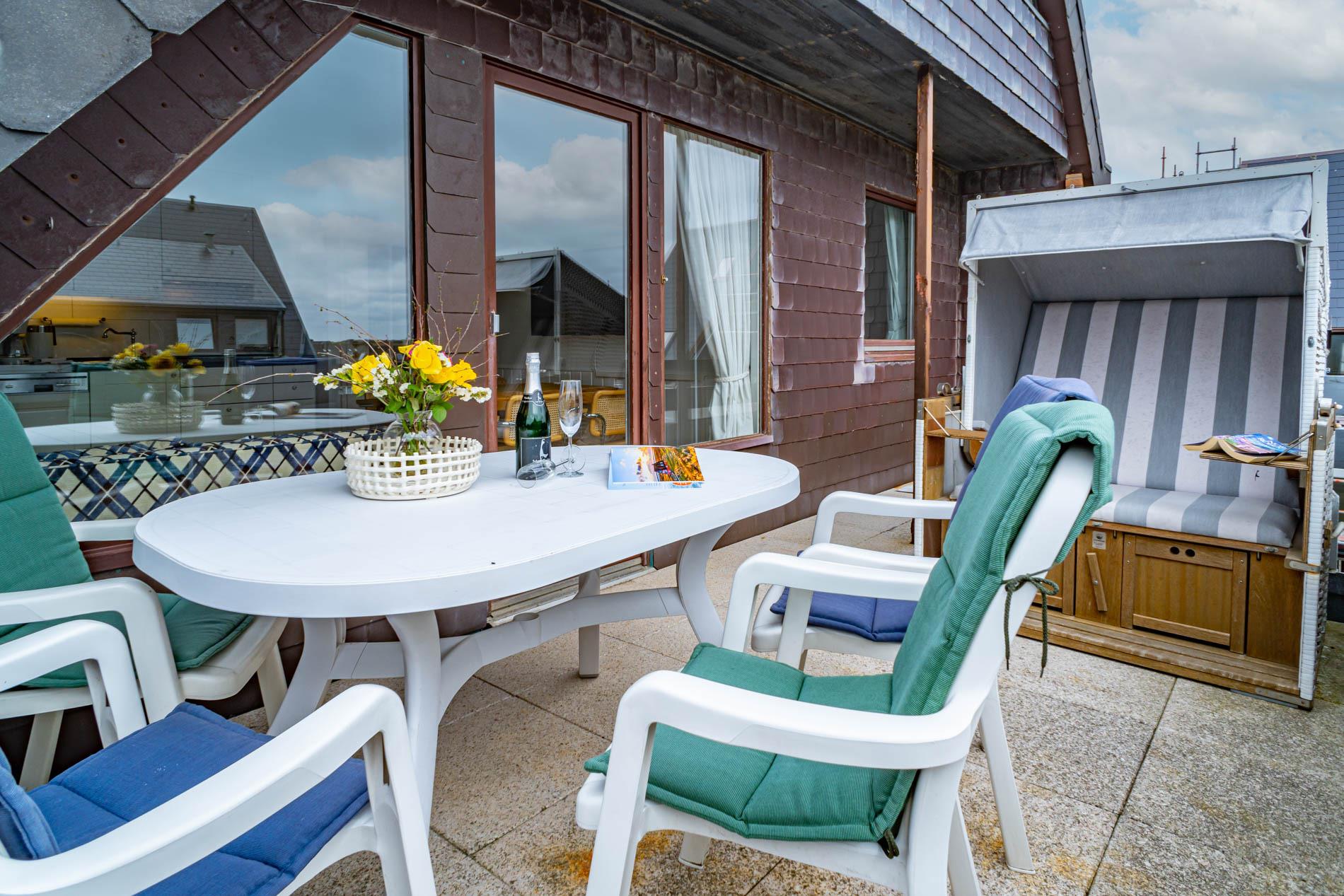 Diese hervorragend ausgestattete 2-Zimmer-Nichtraucher-Ferienwohnung mit ca. 79 m² Gesamtfläche bietet höchsten Komfort für bis zu 3 Personen. Sie liegt in der 2. Etage und verfügt über einen großzügigen Südbalkon, ausgestattet mit Balkonmöbeln, Auflagen und einem Strandkorb. Die zentrale und dennoch ruhige Lage direkt hinter den Dünen von Westerland macht sie zu einem perfekten Rückzugsort. Ein eigener PKW-Stellplatz am Haus ist ebenfalls vorhanden.