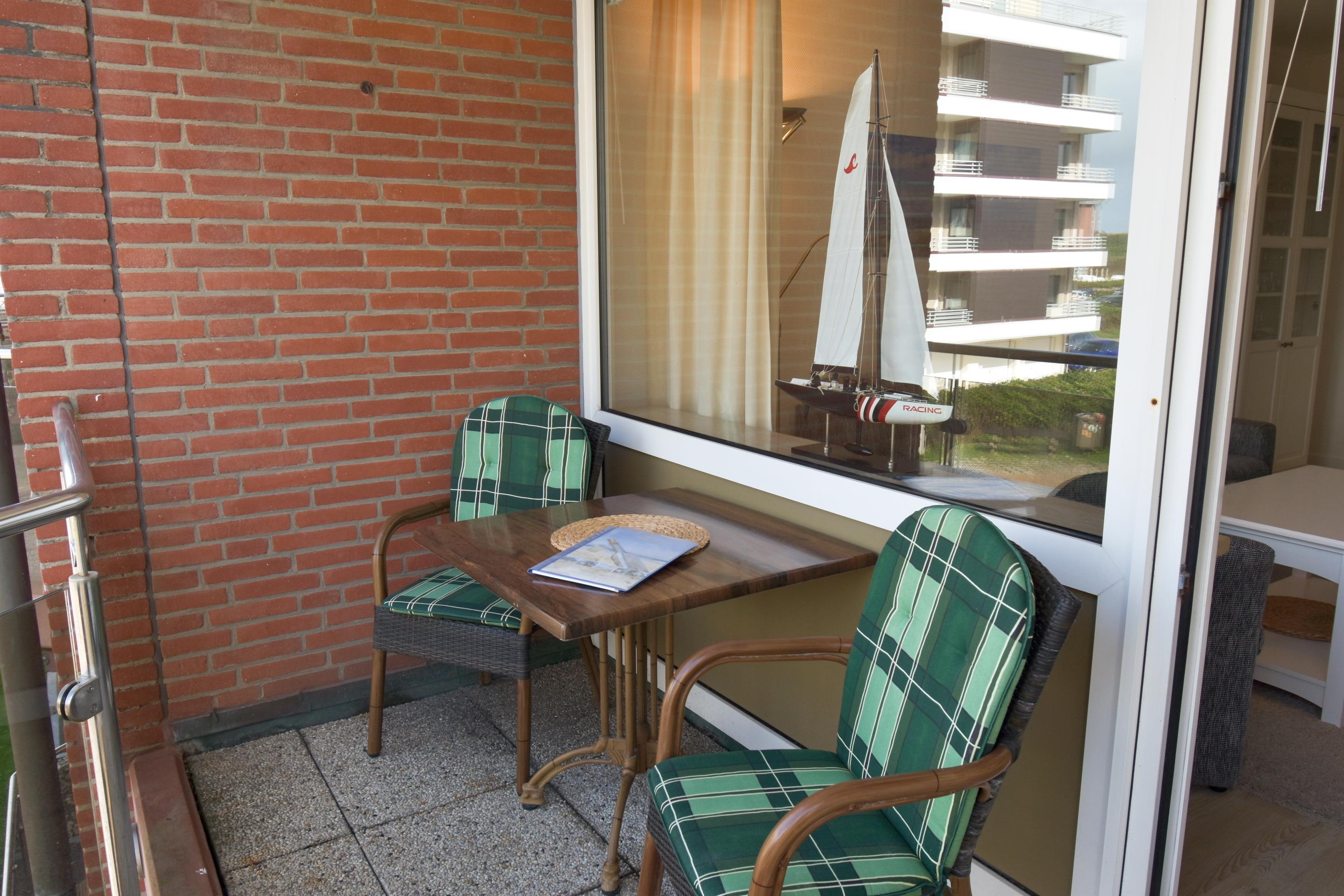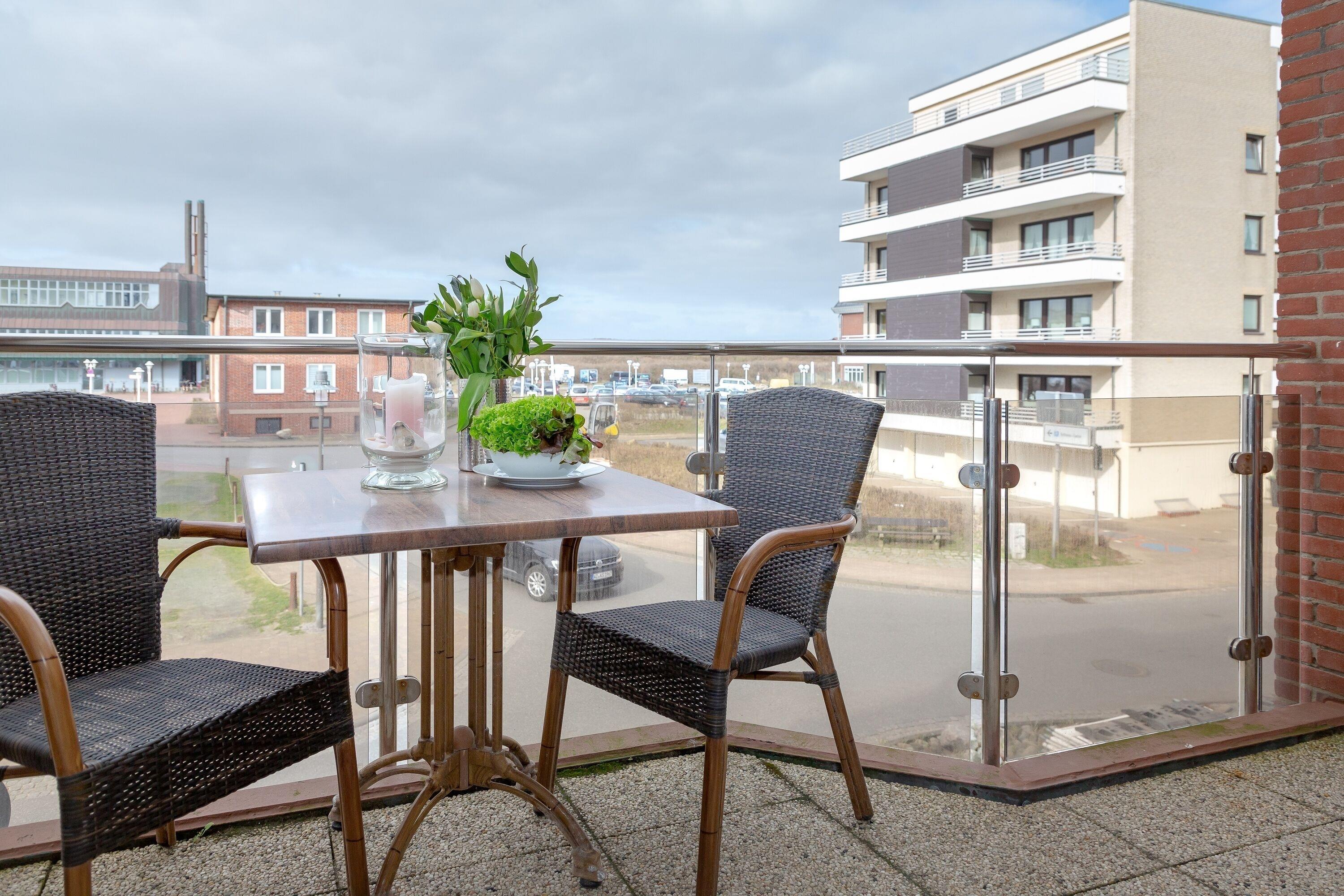 2-Zimmer-Nichtraucher-Ferienwohnung, ca. 53 qm, in der 1. Etage für max. 4 Personen nach Westen mit Westbalkon (Nachmittagssonne mit Balkonmöbeln und Auflagen)