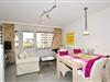 Der geschmackvoll eingerichtete Wohnraum bestehend aus einer Sitzecke (2-Sitzer-Couch, 1 Sessel), einem Kabel-Flachbild-TV, Radio/CD, DVD-Player, einem Essplatz und einer neuen offenen Küchenzeile mit Austritt zur Loggia lädt zum Verweilen ein.