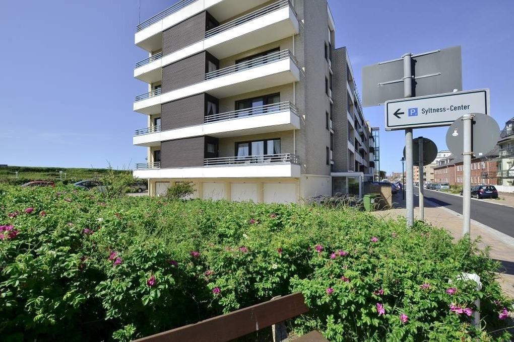 Die Ferienwohnung liegt direkt am Meerwasserschwimmbad "Sylter Welle", Syltness-Center und Hauptstrand.