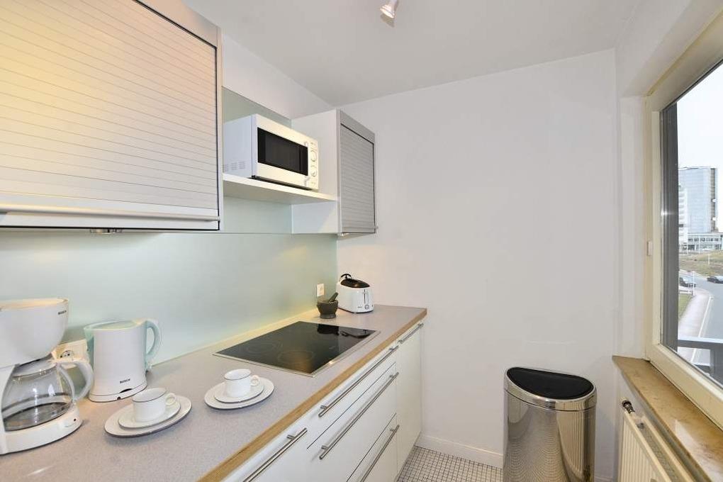 Die vollausgestattete, helle Küche hat einen Geschirrspüler, eine Nespresso-Maschine, ein 4-Platten-Ceranfeld und einen Kühlschrank mit 3-Sterne-Gefrierfach.