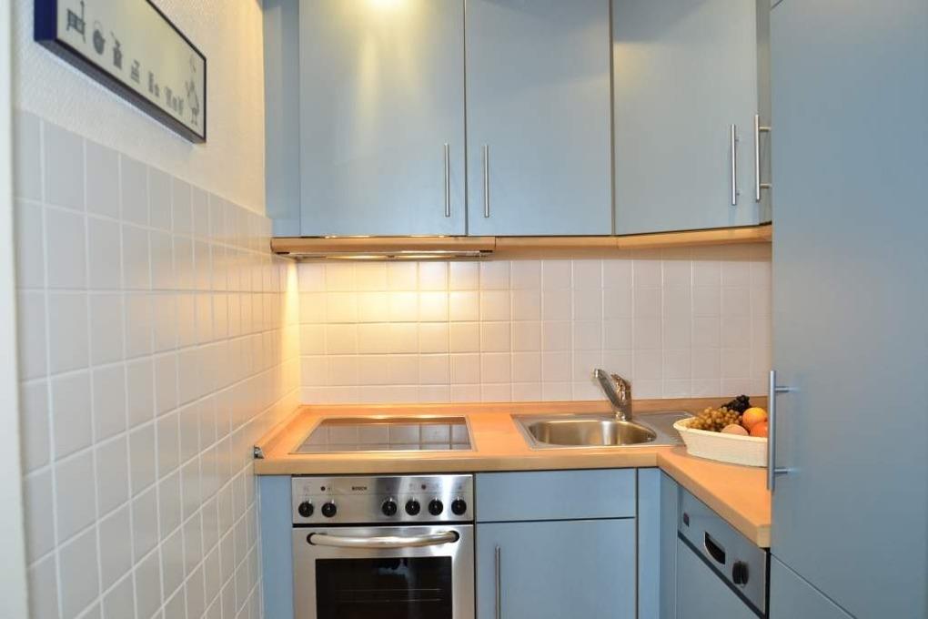 Die Küche hat einen Geschirrspüler, einen Herd mit Backofen und Ceranfeld (4 Kochfelder), und einen Kühlschrank mit 3-Sterne-Gefrierfach. Kaffeemaschine (Filter), Wasserkocher und Toaster gehören zur Grundausstattung.