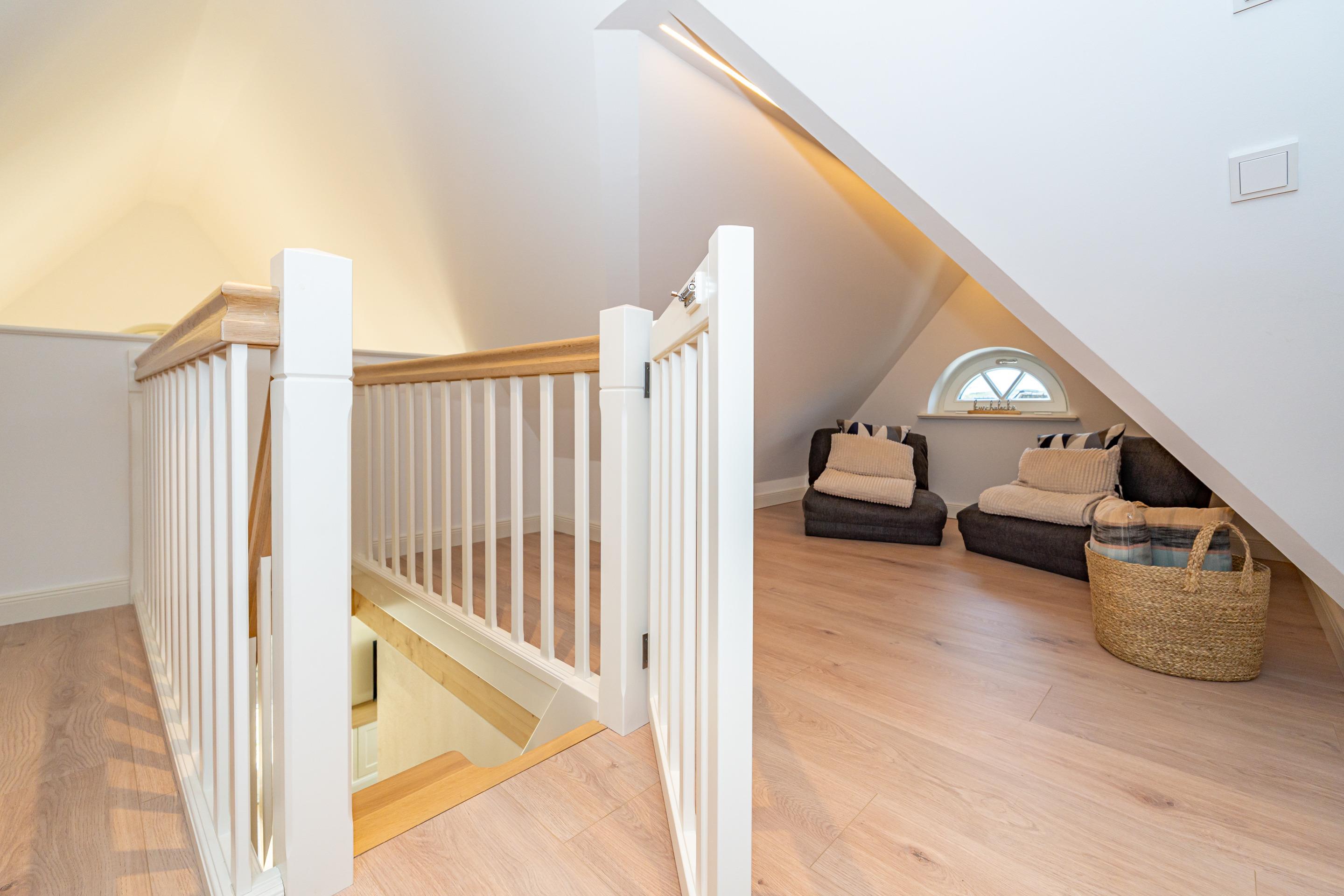 Diese abgeschlossene Wohneinheit ("Haus in Haus") mit eigenem Eingang, im Obergeschoss eines freistehenden Zweifamilienhauses, bietet Privatsphäre, hohen Wohnkomfort und eine exquisite Einrichtung. Die Wohnung erstreckt sich über das Obergeschoss plus großer offener Galerie und überzeugt mit lichtdurchfluteten Räumen und hochwertigen Materialien.