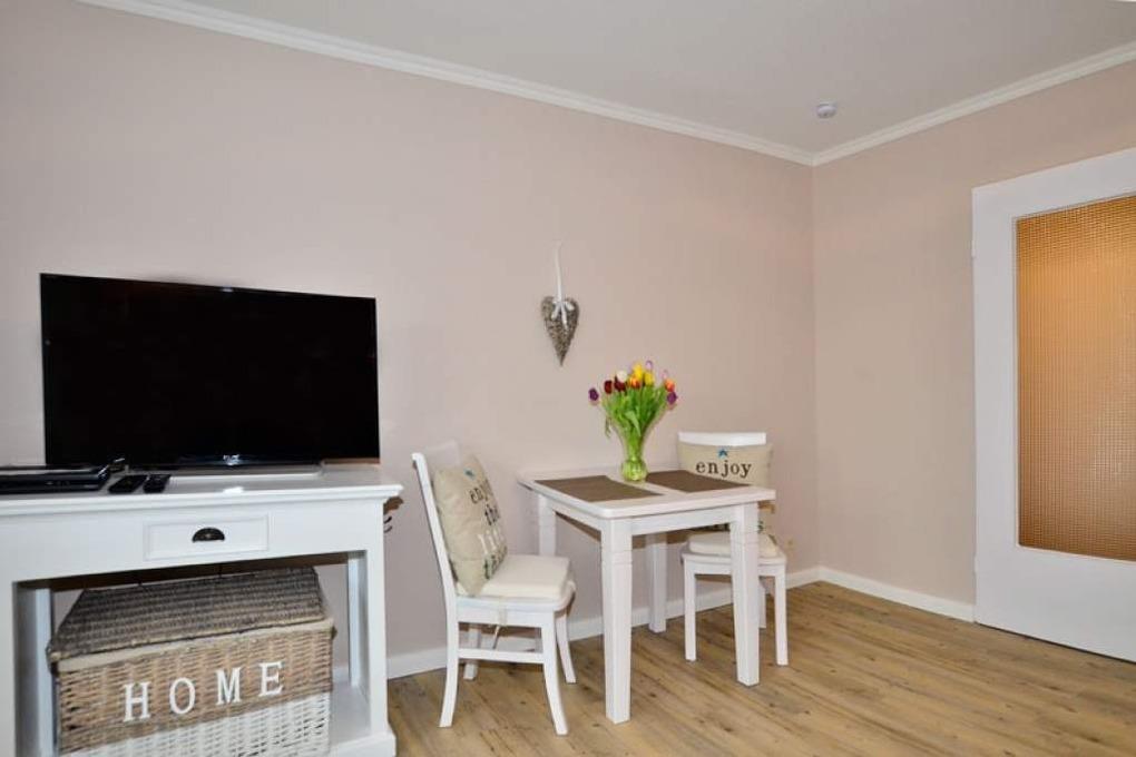 Der Wohn-/Schlafraum verfügt, neben einem hochwertigen Schlafsofa (mit Kaltschaummatratze, 160 x 200 cm, in optimaler Liegehöhe) noch über einen Sessel, einen separaten Essplatz mit 2 Stühlen und einen großen Sat-Flachbild-TV, Radio sowie Internetnutzung per W-Lan.