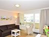 1-Zimmer-Nichtraucher-Ferienwohnung, ca. 35 m², in der 4. Etage zur Südseite mit Südbalkon (ganzen Tag Sonne, mit Balkonmöbeln und Auflagen) für max. 2 Personen.