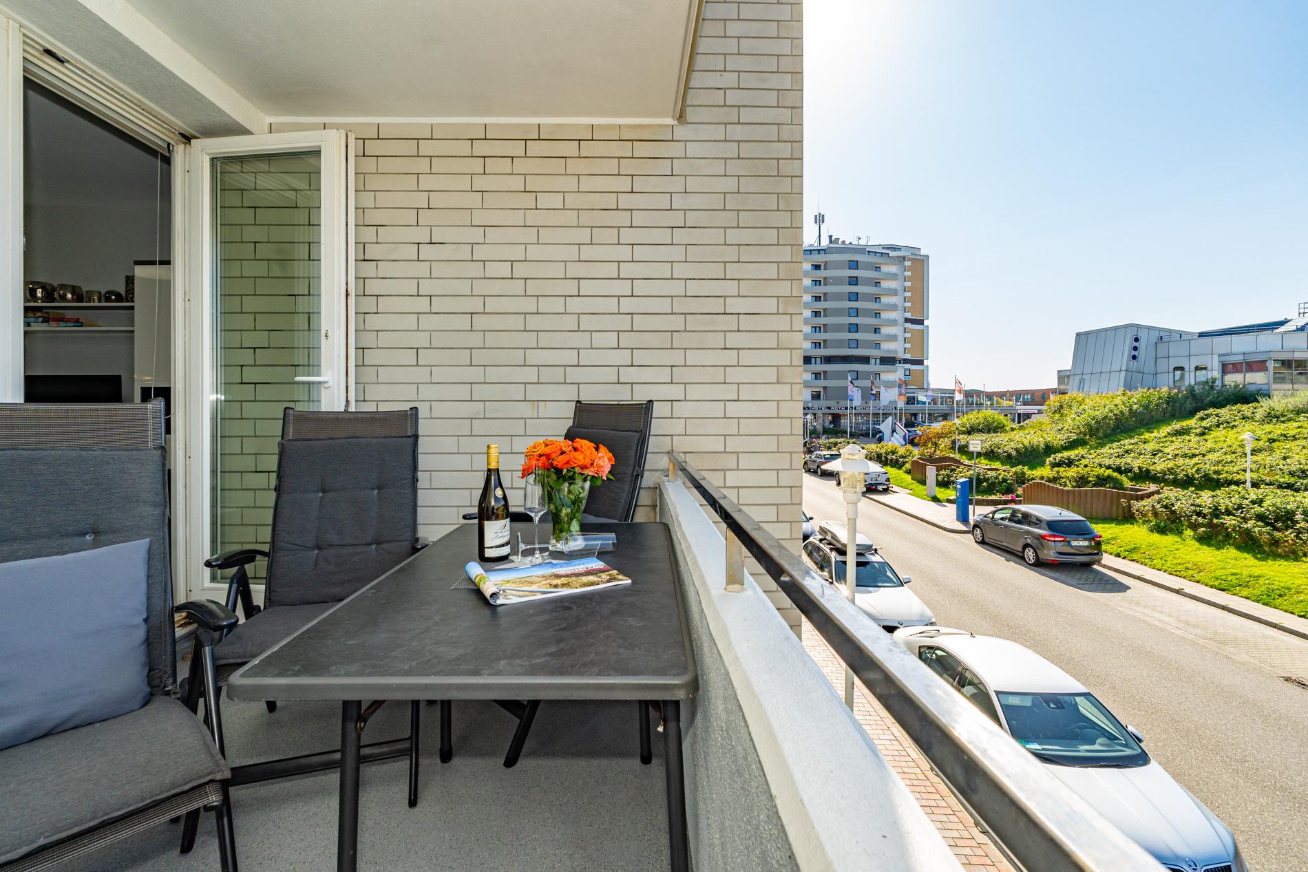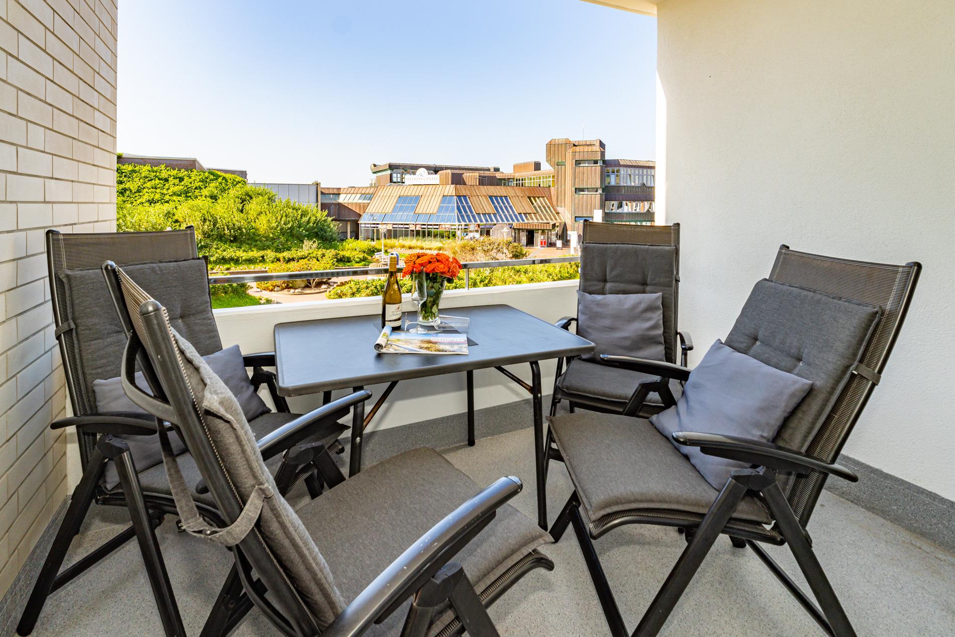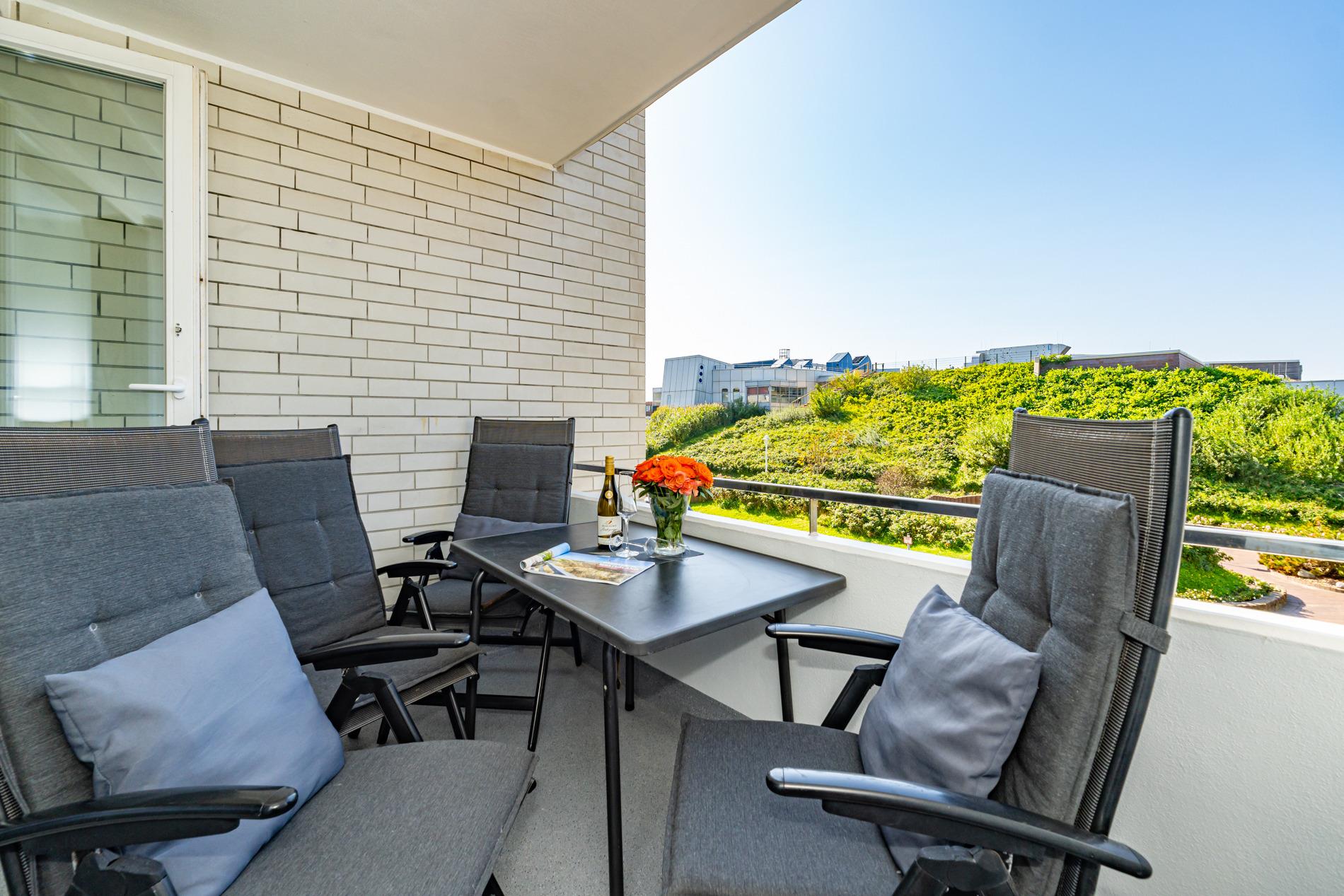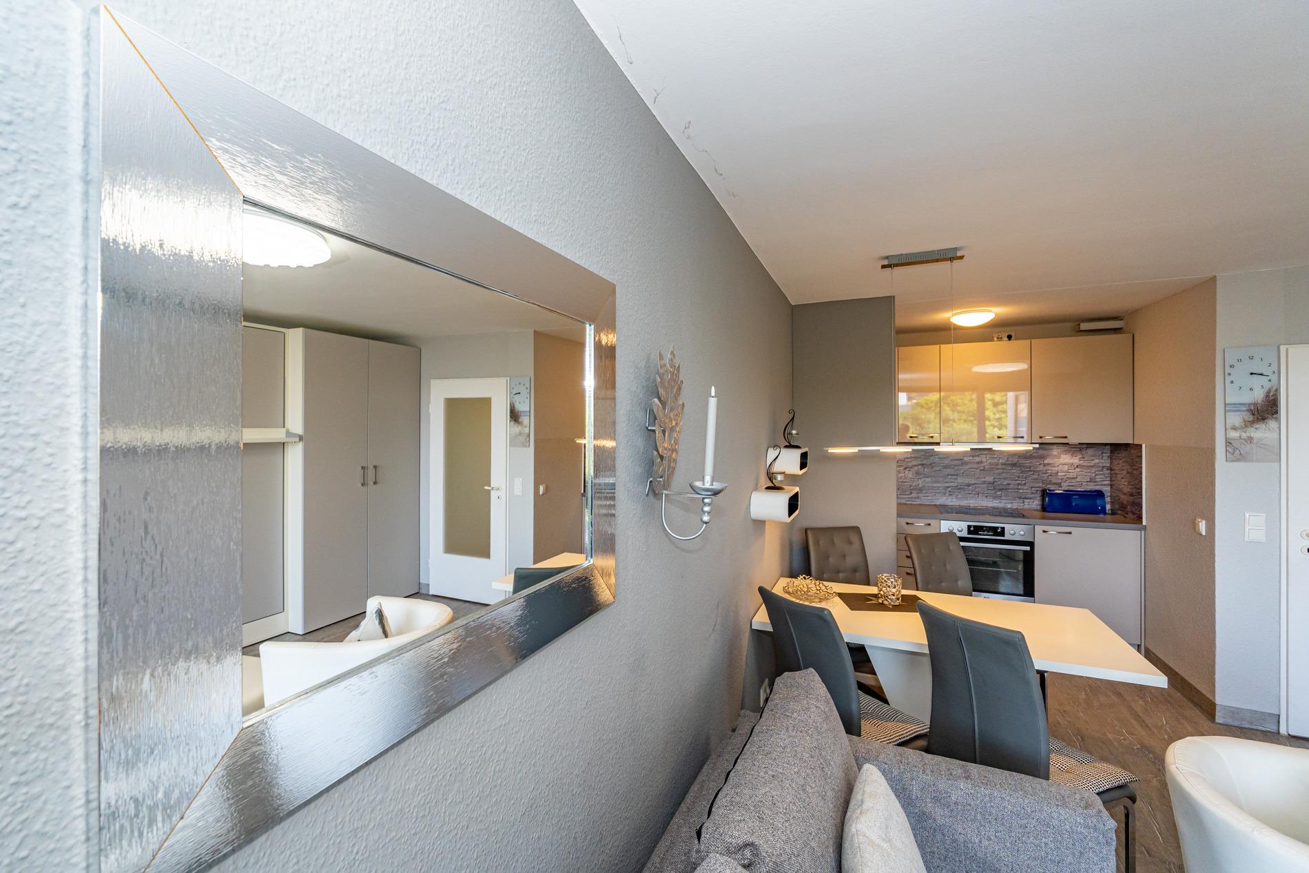 Die moderne 2-Zimmer-Nichtraucher-Ferienwohnung, hat ca. 44 m² und liegt in der 1. Etage zur Seeseite mit Westloggia (Nachmittagssonne, mit Balkonmöbeln und Auflagen) und bietet Platz bis zu 4 Personen.