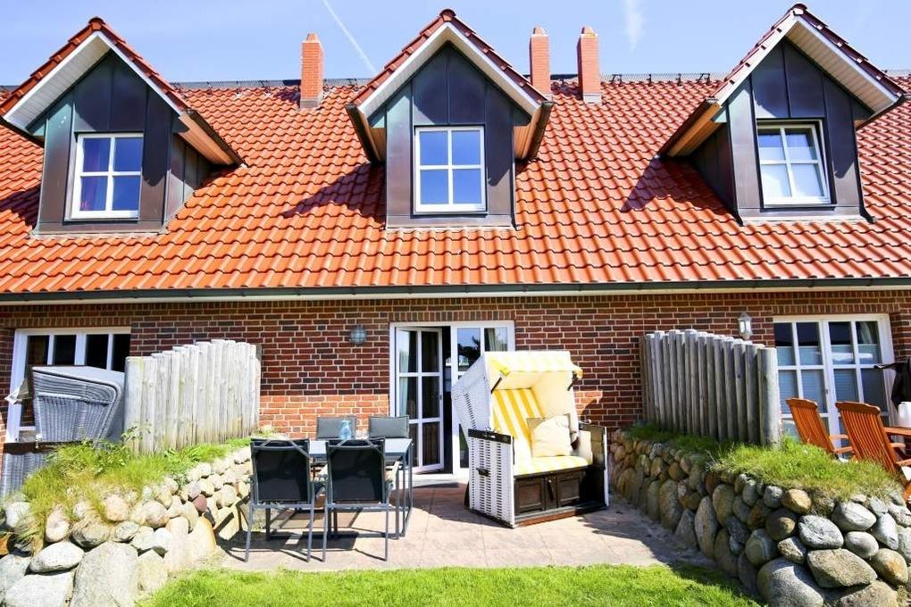 Exklusiv und großzügig präsentiert sich das Nichtraucher-Ferienhausteil mit ca. 98 qm für 6 Personen mit Südterrasse (mit Saisonstrandkorb und Gartenmöbeln).