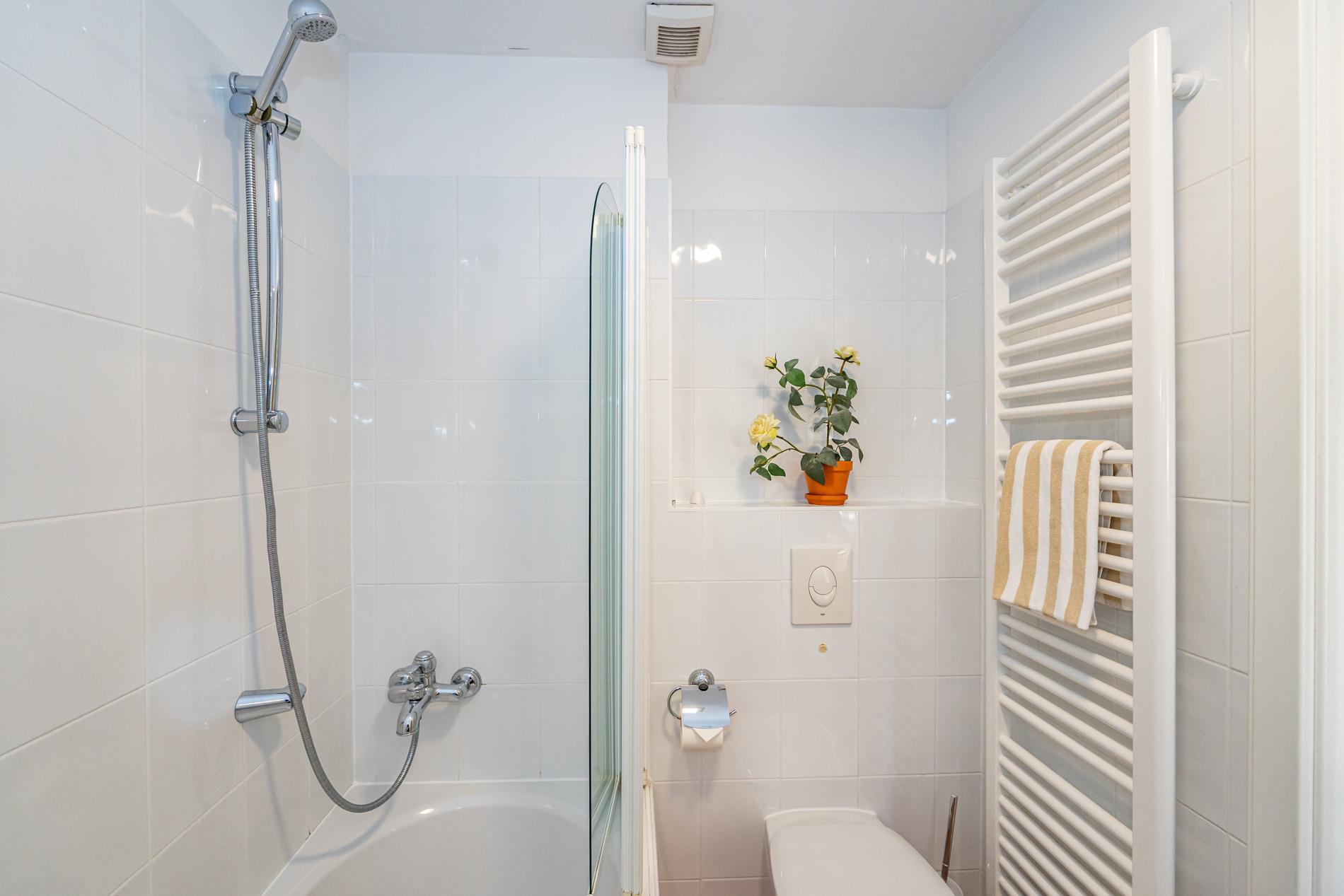 Das zweite Badezimmer besitzt eine Badewanne mit Duschvorrichtung, Waschtisch, Handtuchtrockner, WC und Fön.