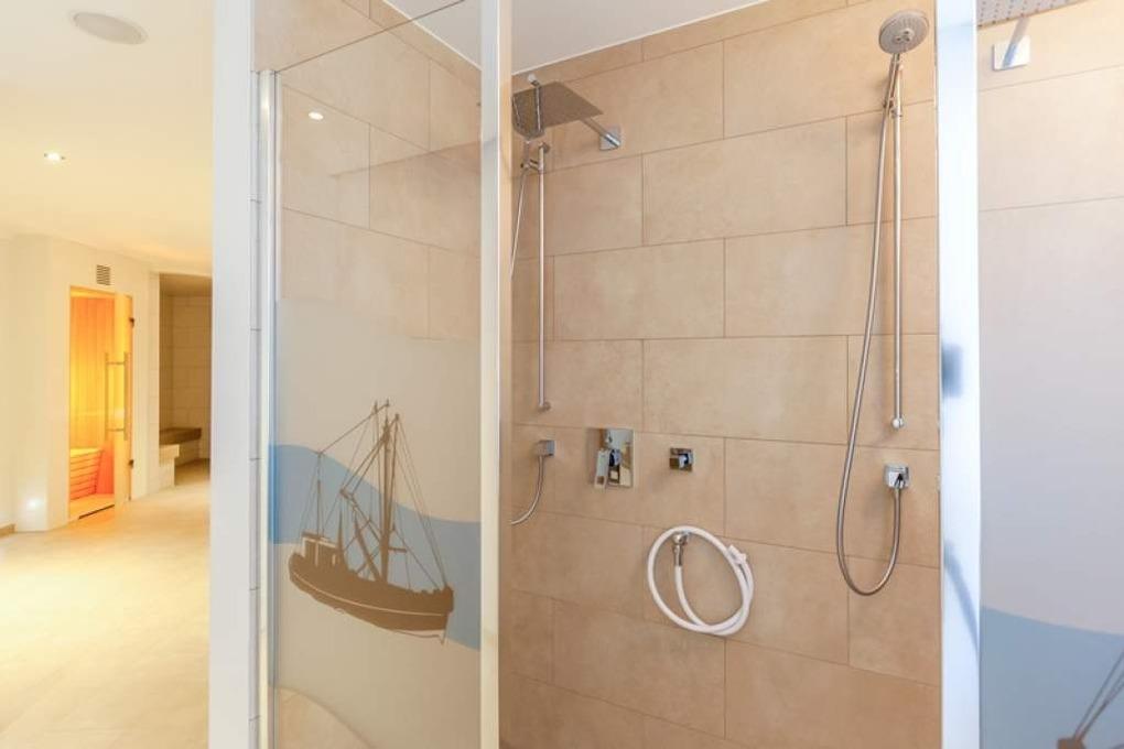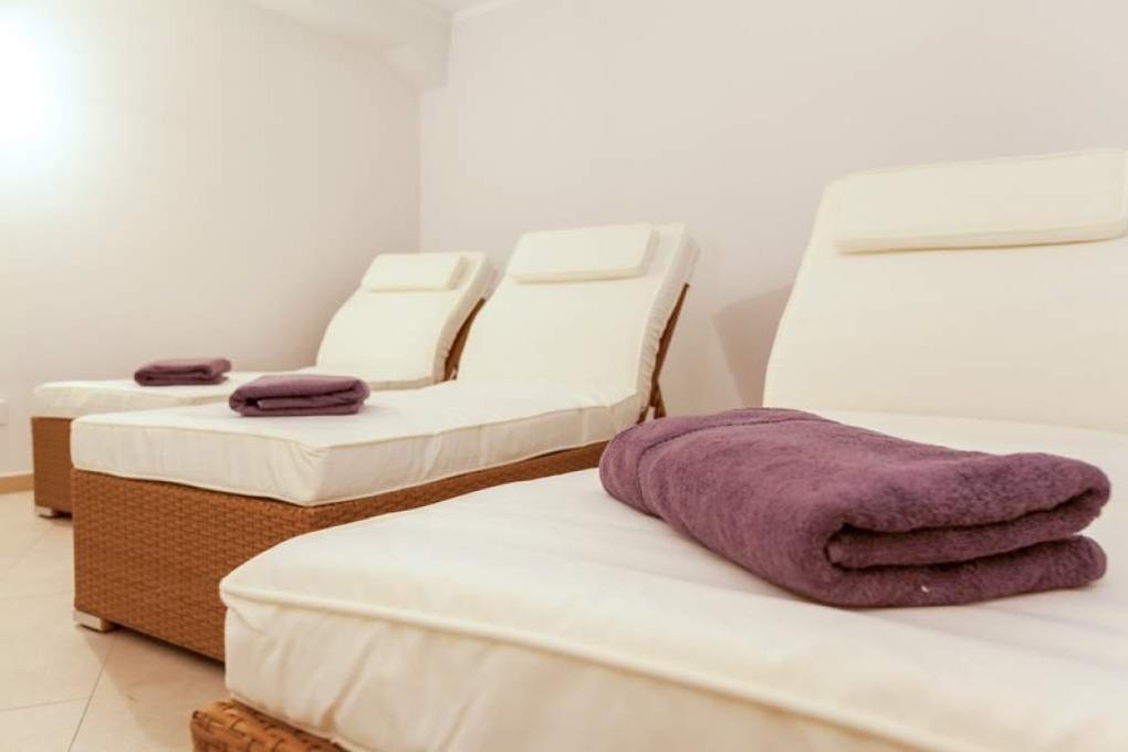 Ein Wellnesspaket (bestehend aus 1 Bademantel, 1 Saunatuch, 1 Badetuch und 1 Paar Badeslipper) kann für 15,00 Eur/Paket mit gemietet werden.