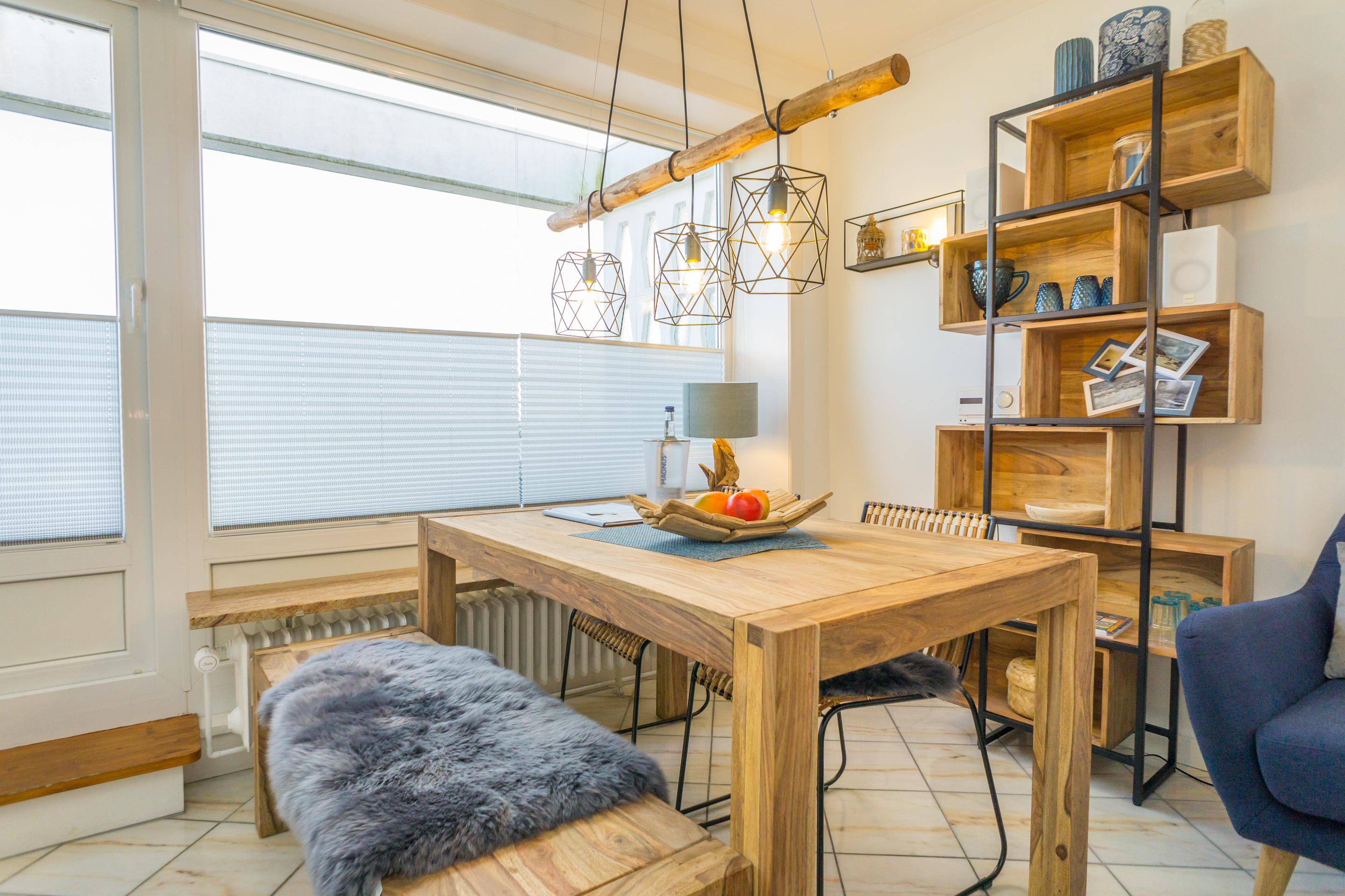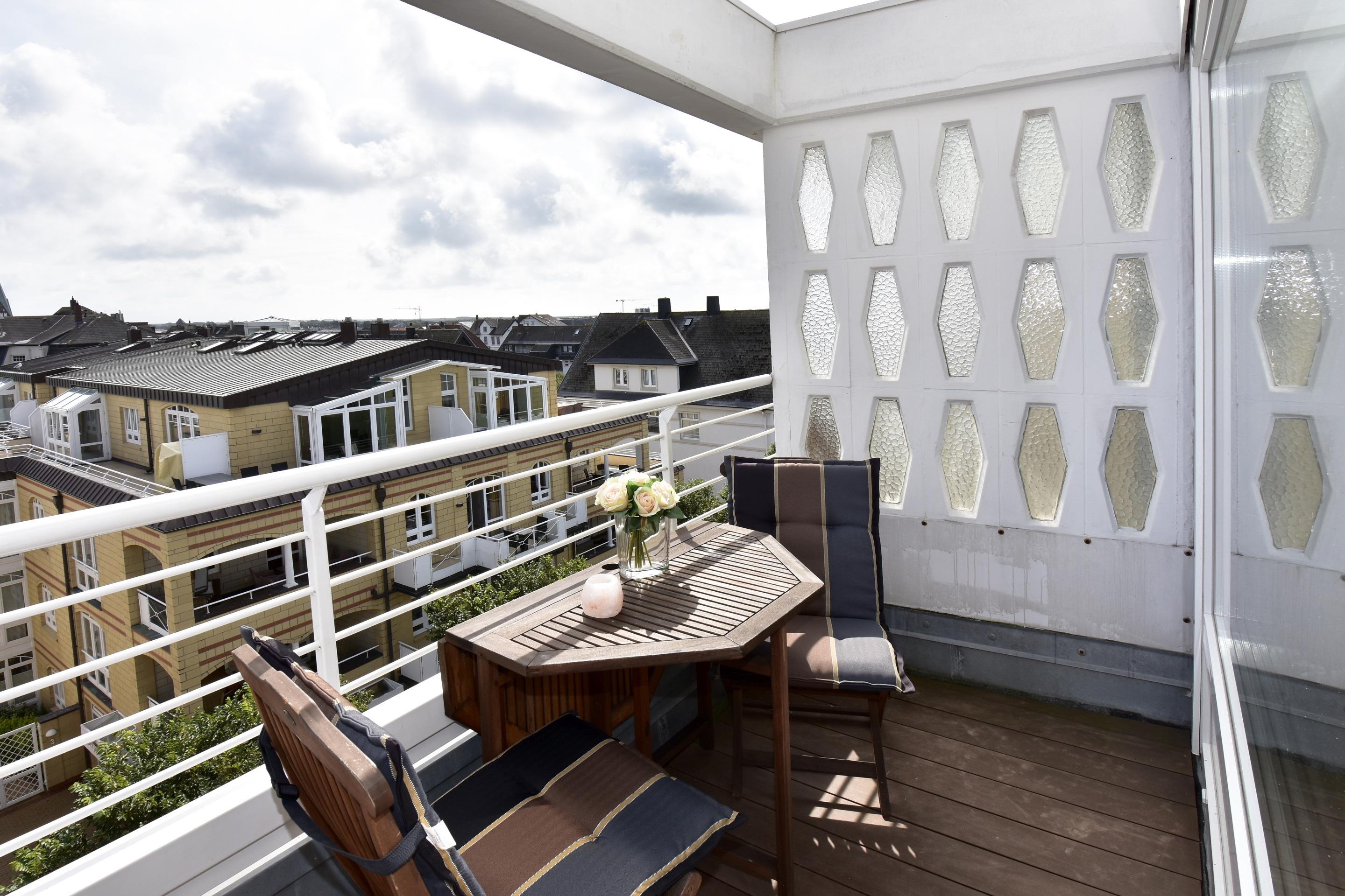 Erleben Sie mitten im Zentrum von Westerland den grandiosen Balkon-Blick vom nordöstlichen Wattenmeer über das Rantum-Becken bis zum südlichen Horizont. Ein Strandkorb und eine Sitzgarnitur laden nach einem traumhaften Sonnenaufgang von der Fußgängerzone abgewandt zum Frühstücken oder Sonnenbaden ein während Ihre Füße vom angenehmen Holzboden verwöhnt werden. Entscheiden Sie spontan, ob Sie nach wenigen Schritten in der Fußgängerzone der legendären Friedrichstrasse shoppen gehen oder lieber den Tag am ca. 200m entfernten Strand oder dem Erlebnis-/Wellnessbad „Sylter Welle“ verbringen wollen. Lassen Sie sich nach einem ereignisreichen Tag in den beiden Schlafzimmern bei gekipptem Fenster vom Meeresrauschen in den Schlaf schaukeln.