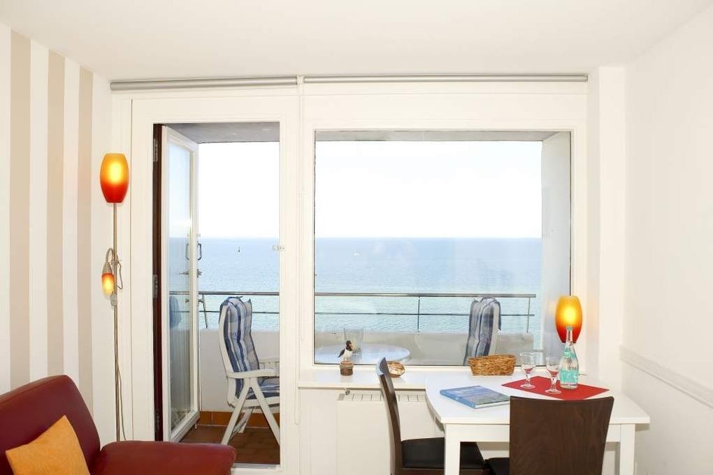 Exklusive 1-Zimmer-Nichtraucher-Ferienwohnung, für Allergiker geeignet, ca. 25 qm, in der 12. Etage zur Westseite mit spektakulärem Seeblick für max. 2 Personen.
