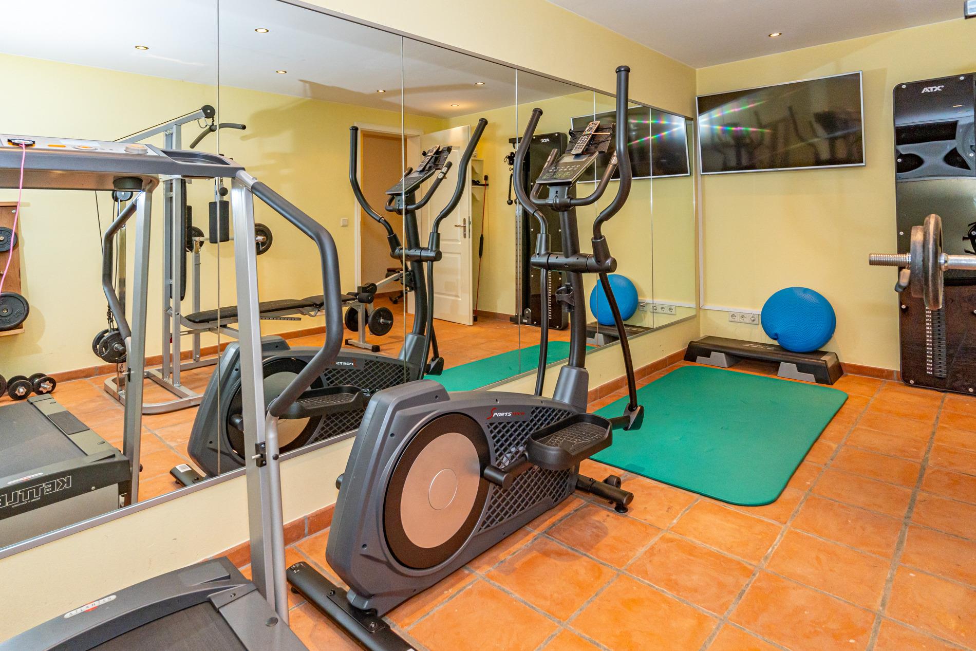 Der hauseigene Wellness- und Fitnessbereich steht Ihnen zur freien Nutzung zur Verfügung. Die Sauna ist mit zwei zusätzlichen Duschen und einem Ruhebereich mit zwei Liegen ausgestattet. Ein separates Gäste-WC befindet sich zwischen Saunabereich und Fitnessraum. Der Fitnessraum verfügt über moderne Geräte und einen Flachbild-TV. Für Ihren Komfort stehen Bademantel und Saunatuch zur Verfügung.