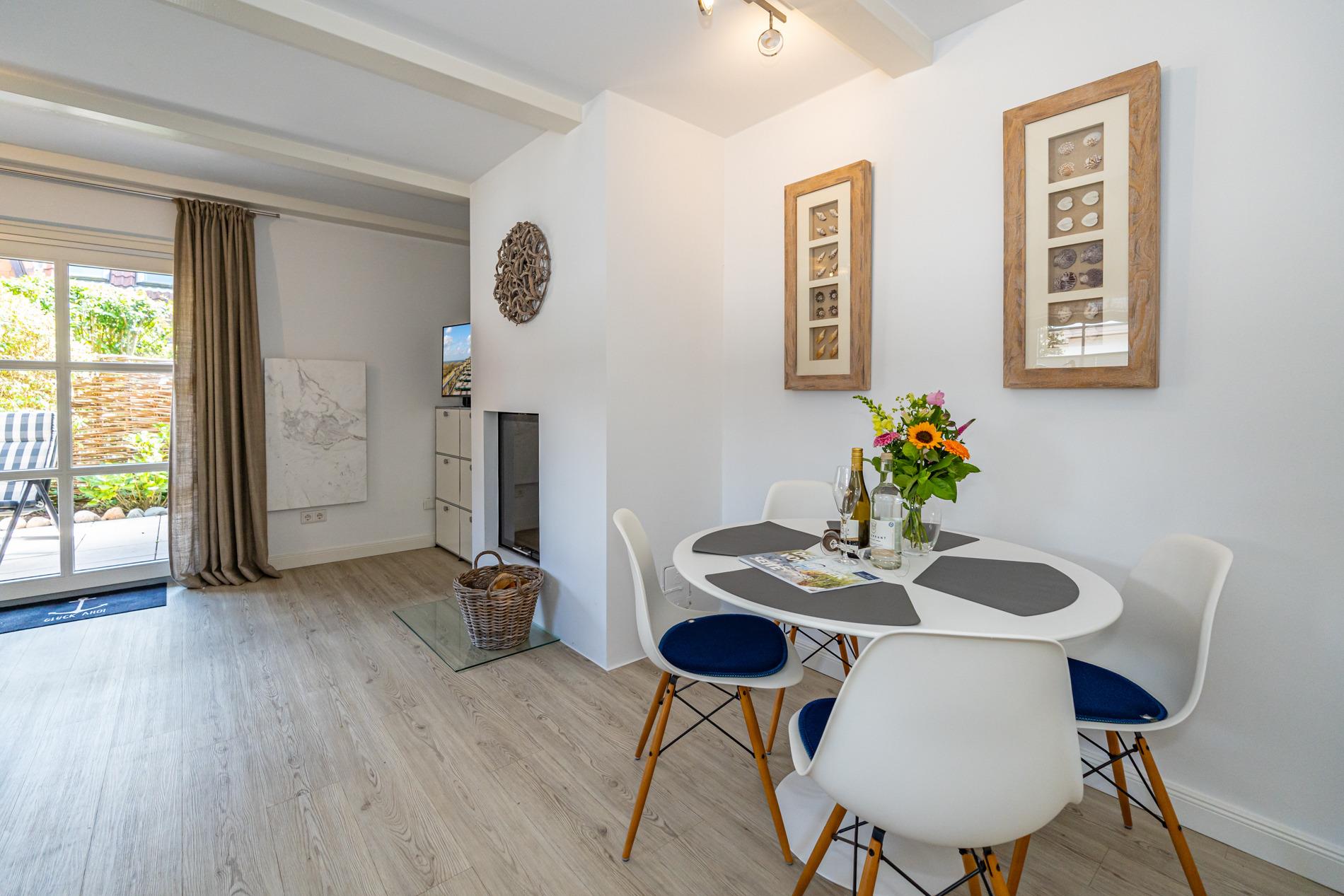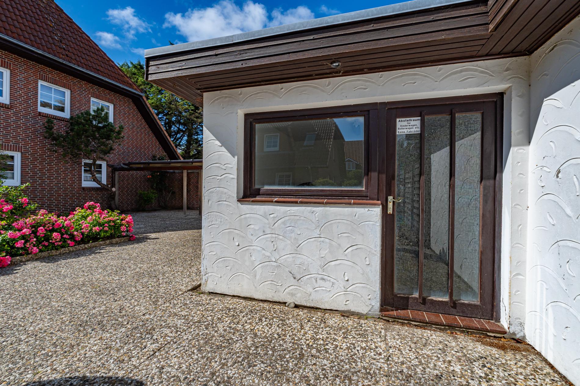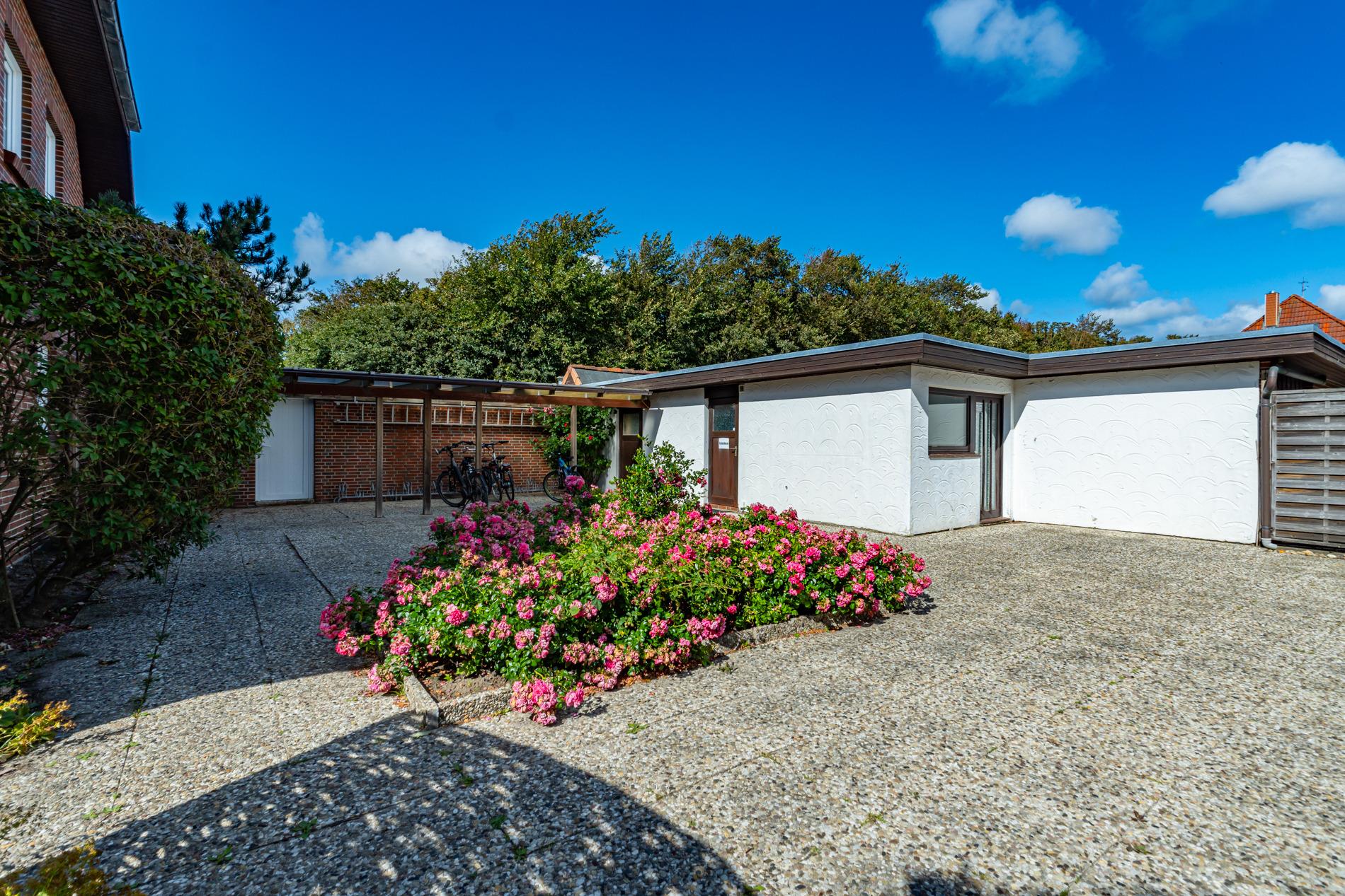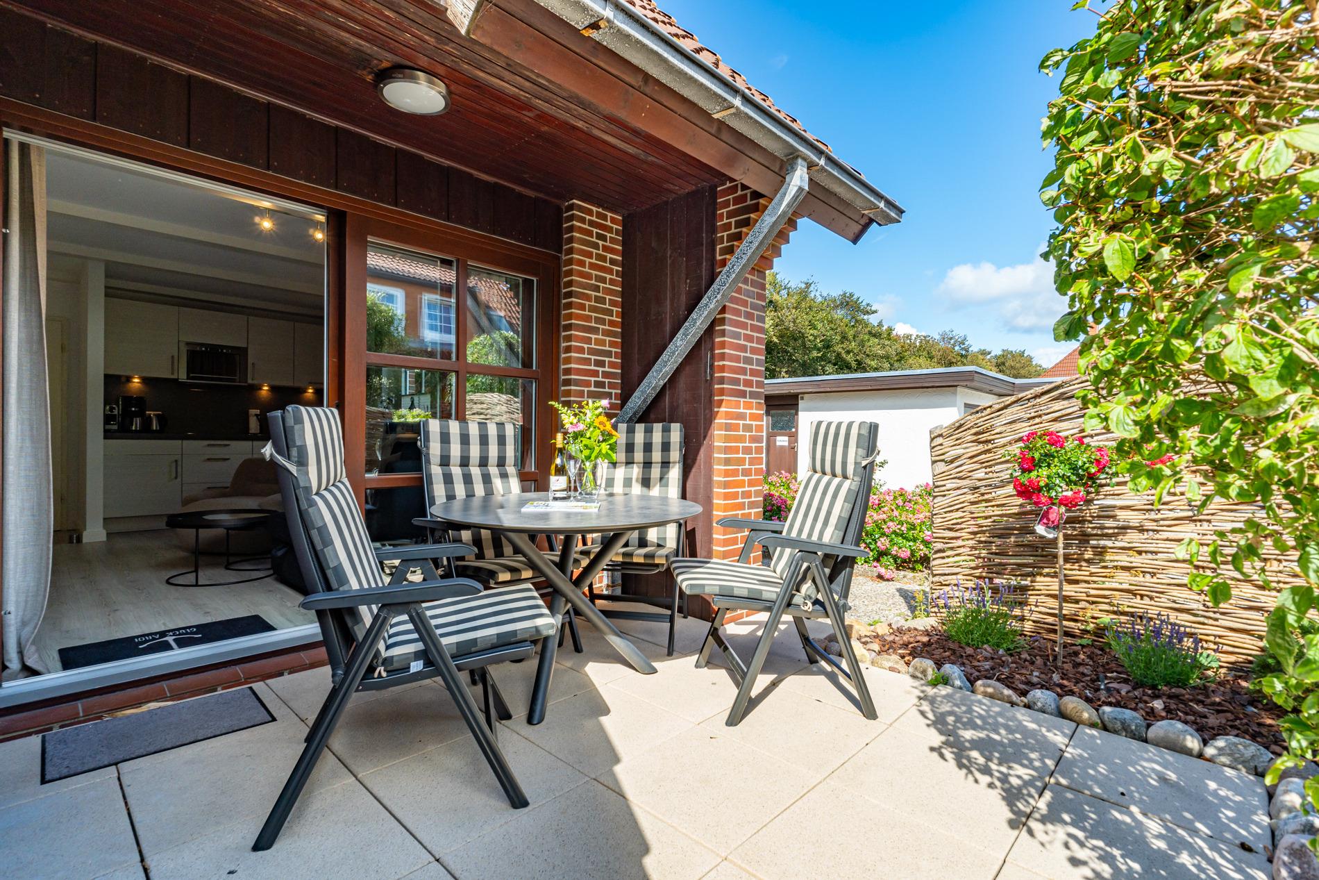 Im Süden Westerlands in ruhiger, strandnaher Lage mit Einzelgarage, geschütztem Fahrradabstellplatz, Südterrasse und Kamin!