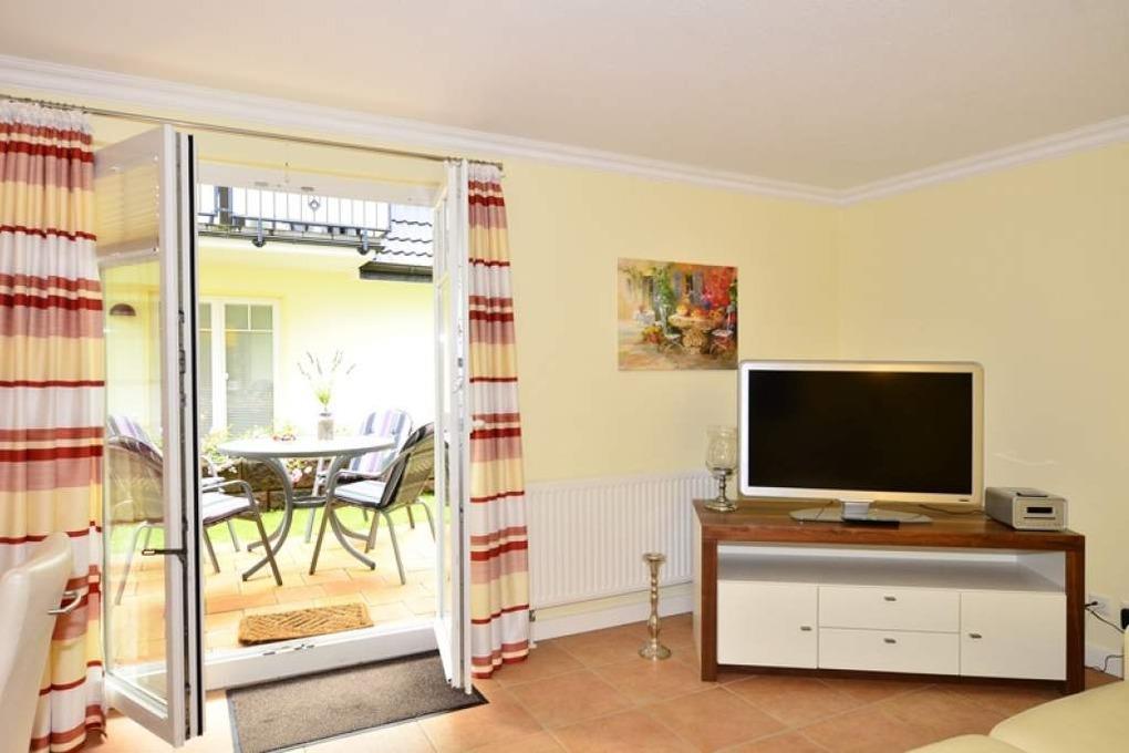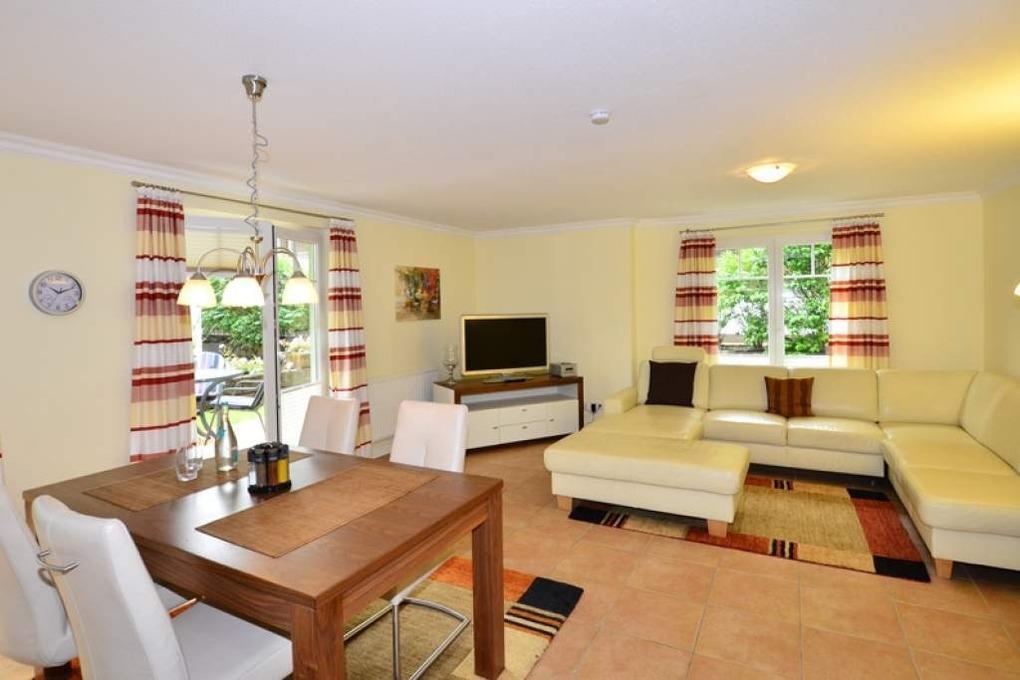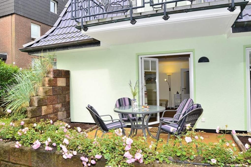 2-Zimmer-Nichtraucher-Ferienwohnung mit gehobenem Komfort ca. 59 qm im Parterre zur Ostseite mit Terrasse (mit Terrassenmöbeln und Auflagen) für max. 4 Personen.