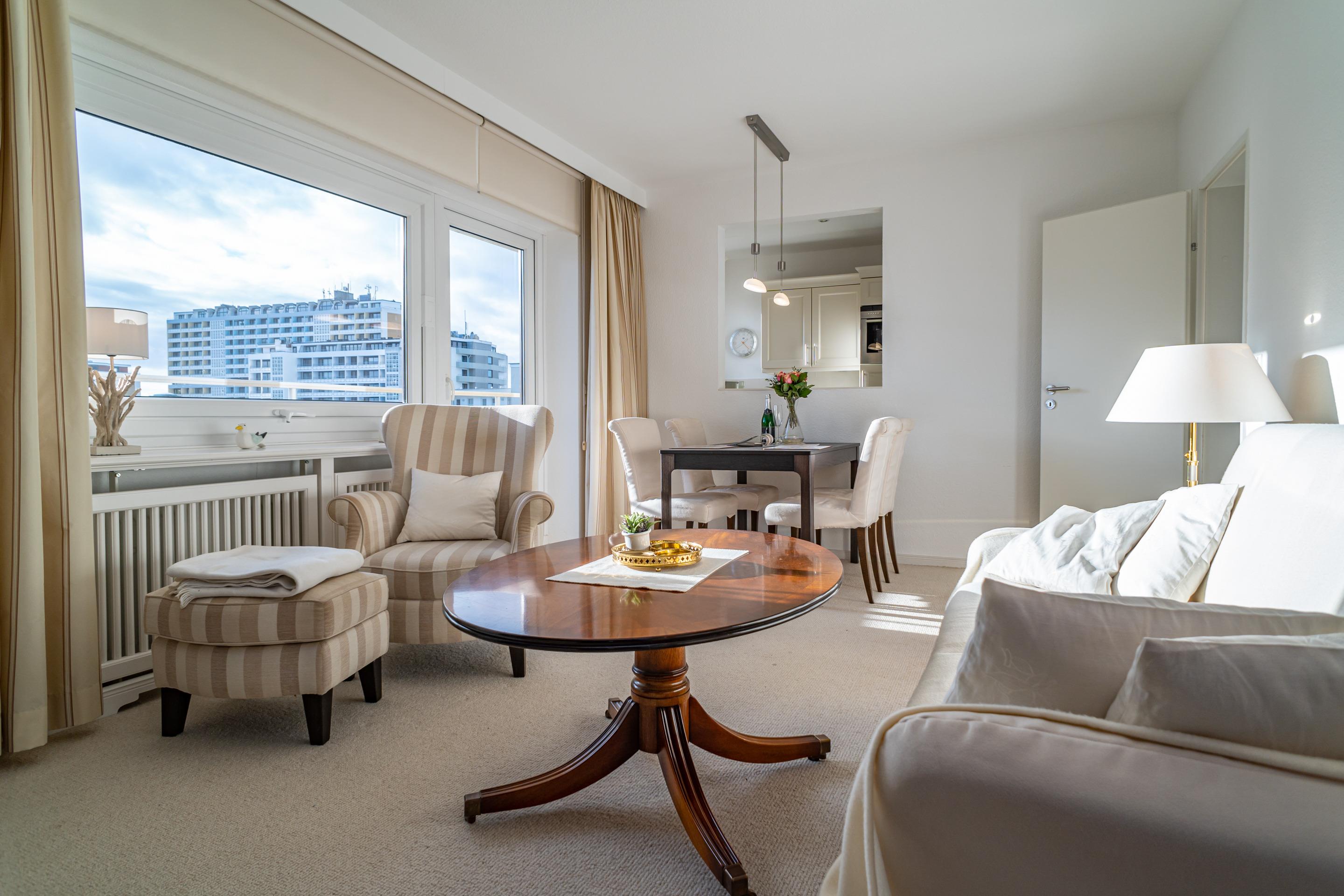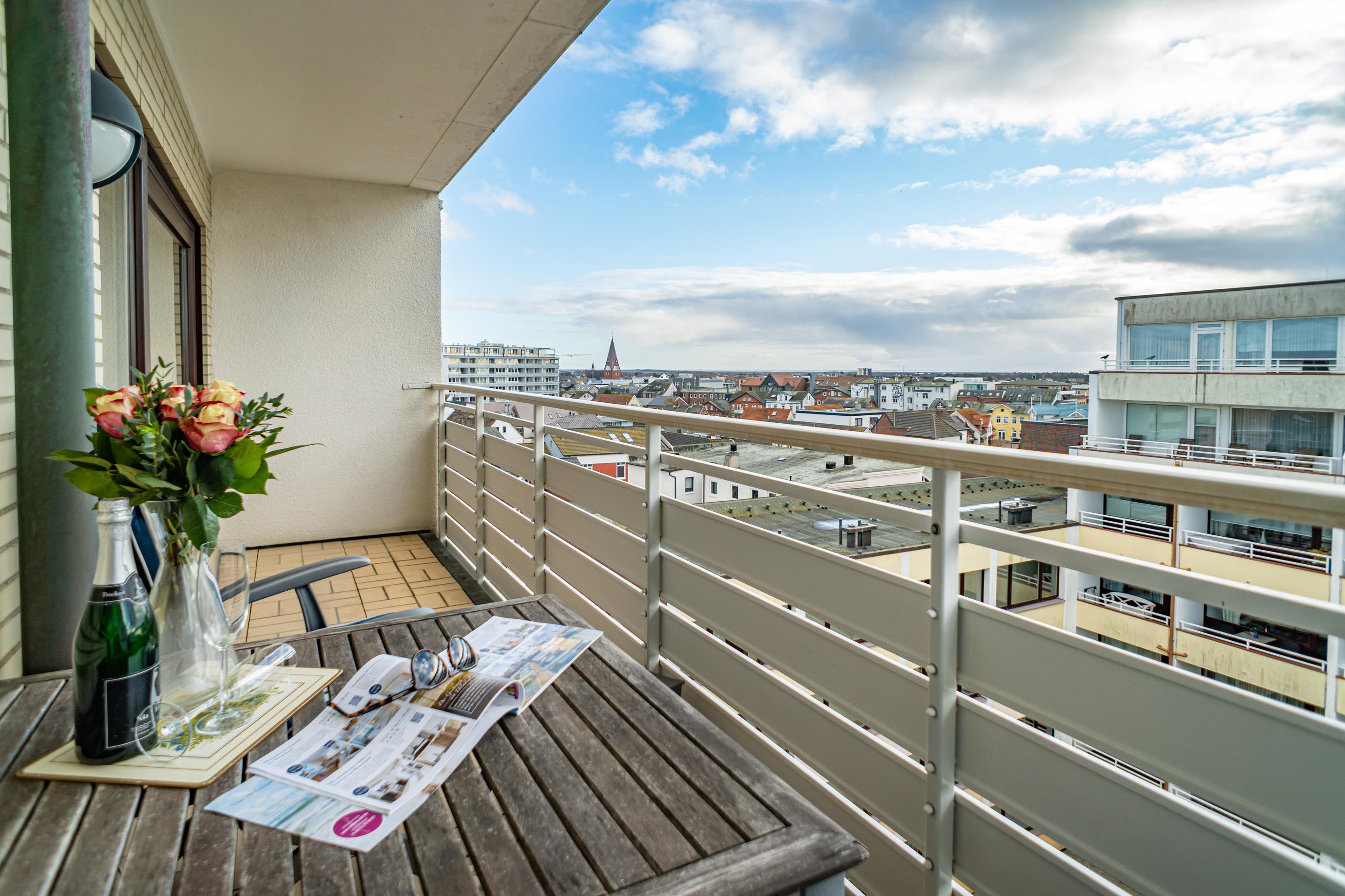 2-Zimmer-Nichtraucher-Ferienwohnung, ca. 48 qm, in der 6. Etage mit Südloggia (mit Balkonmöbeln und Auflagen)