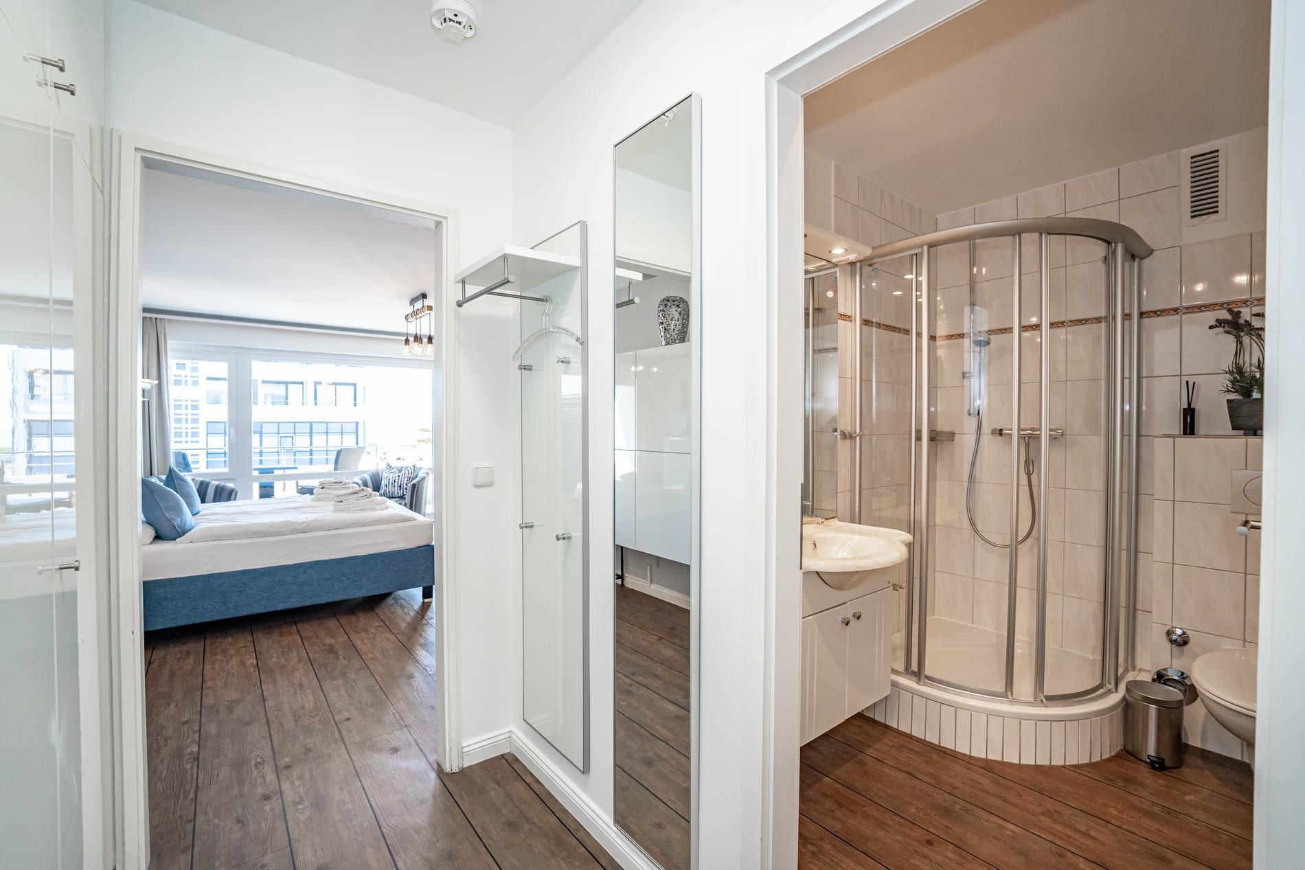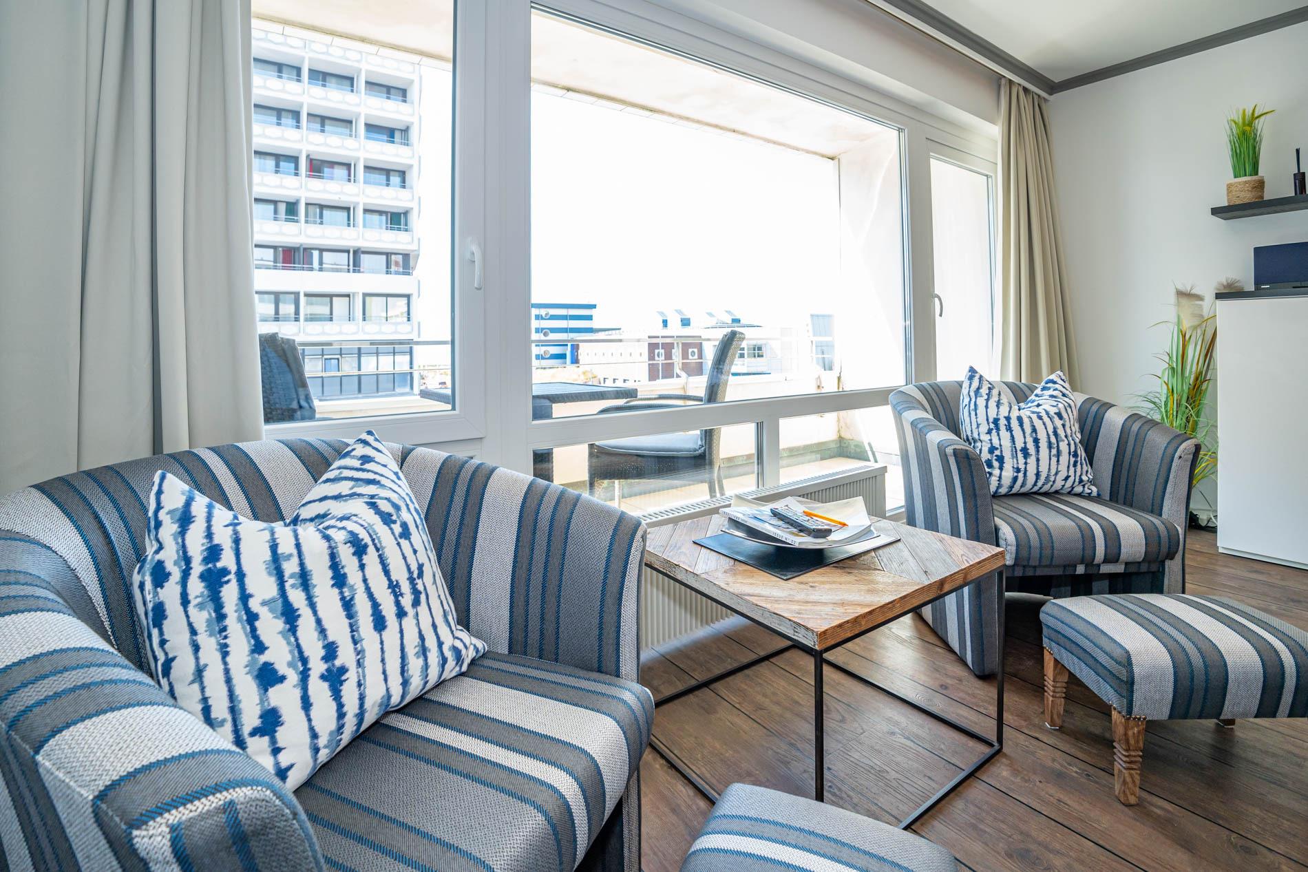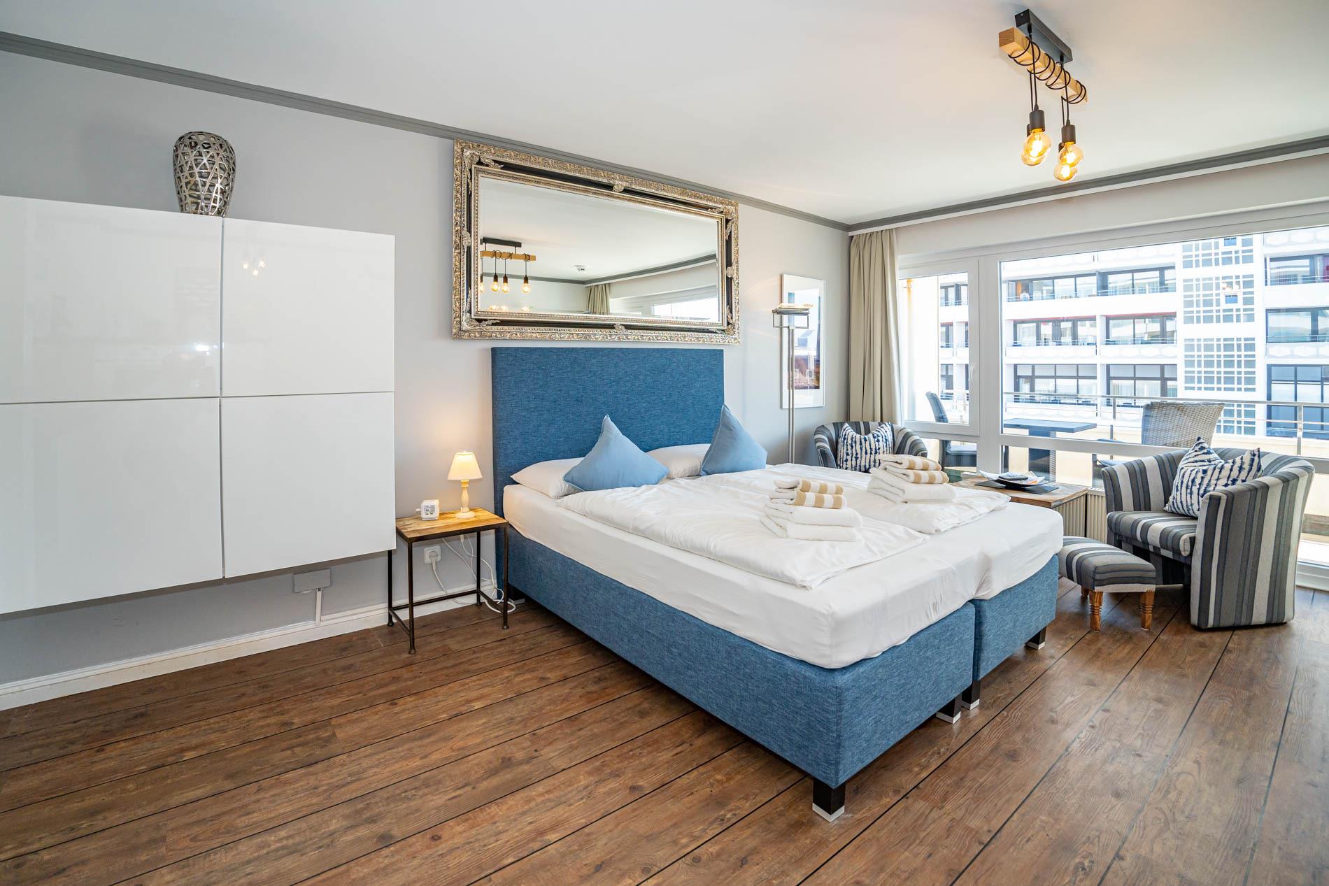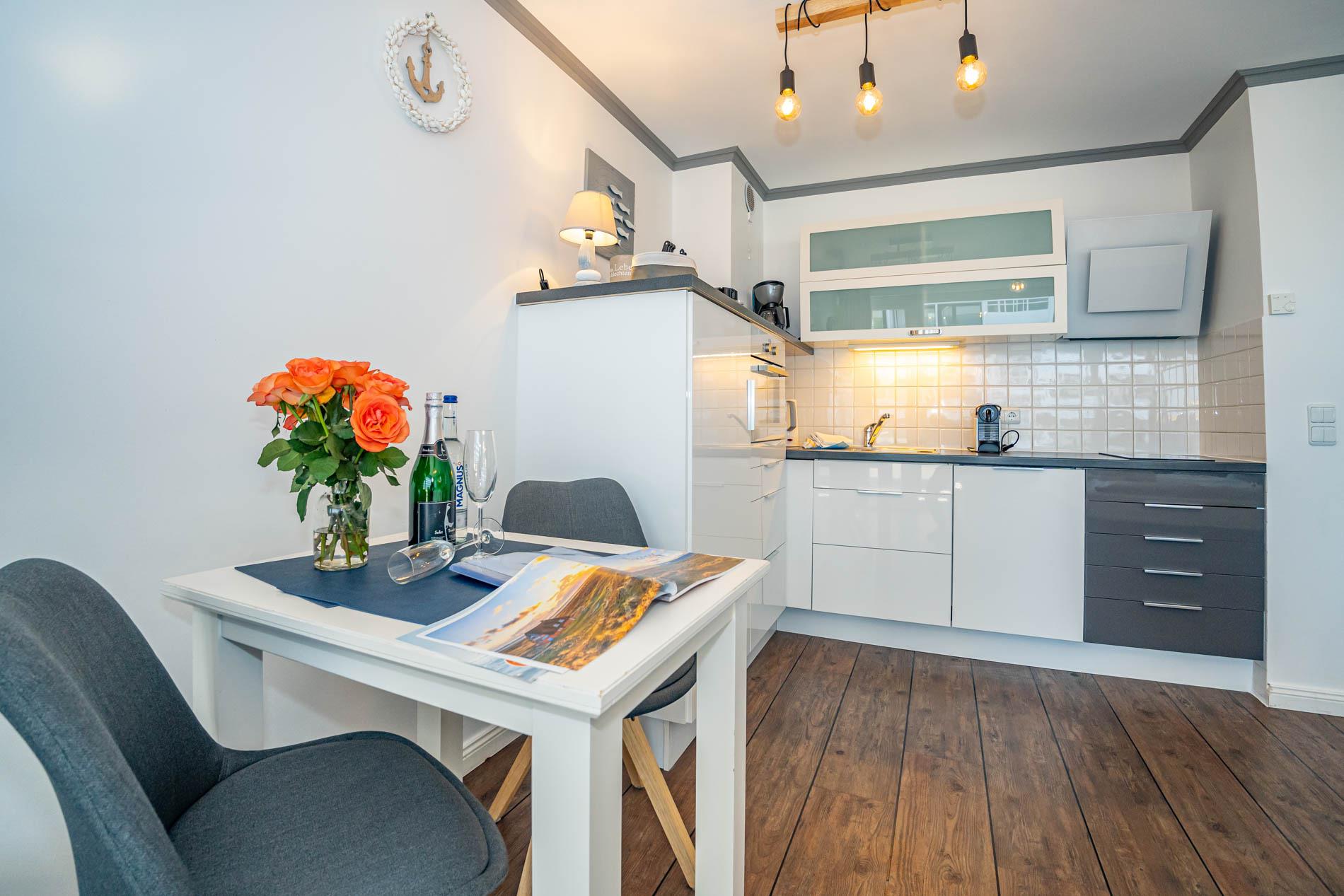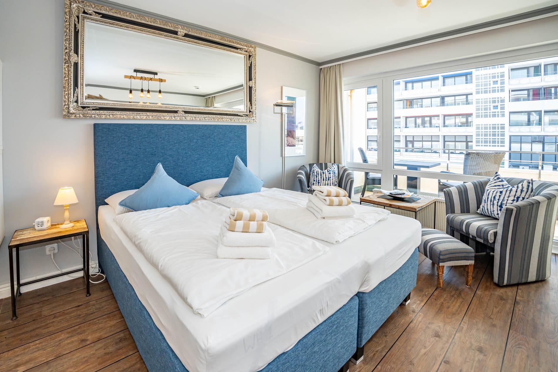 Diese gut ausgestattete und renovierte 1-Zimmer-Nichtraucher-Ferienwohnung (ca. 30 qm) bietet einen kleinen Meerblick sowie einen Westbalkon, der in der Nachmittagssonne mit bequemen Möbeln und Auflagen zu entspannten Stunden einlädt. Die Wohnung befindet sich in der 2. Etage und ist ideal für zwei Personen.