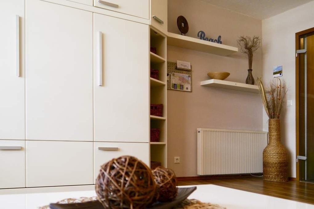 Gut ausgestattete 1-Zimmer-Nichtraucher-Ferienwohnung, ca. 30 qm in der 1. Etage mit Westbalkon (Nachmittagssonne mit Balkonmöbeln und Auflagen) für zwei Personen.