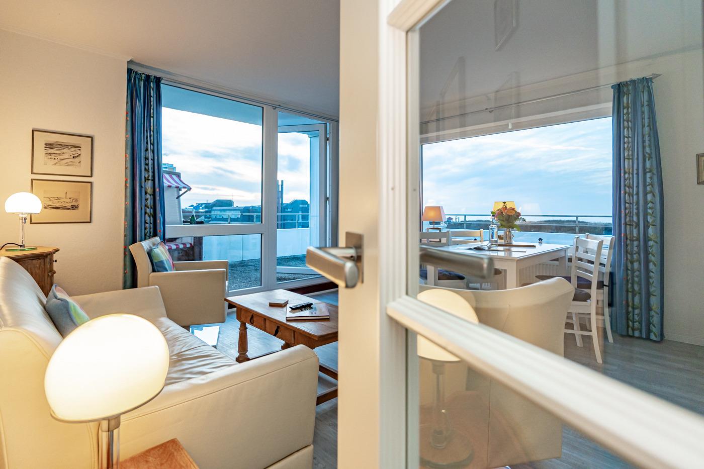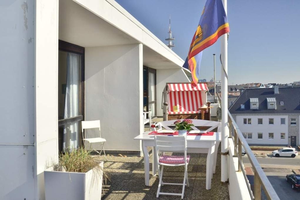 Dieses komfortable Penthouse mit grandiosem Meerblick und großzügiger, von Süden nach Westen umlaufender Dachterrasse gehört sicherlich zu den begehrtesten Ferienwohnungen in Westerland.