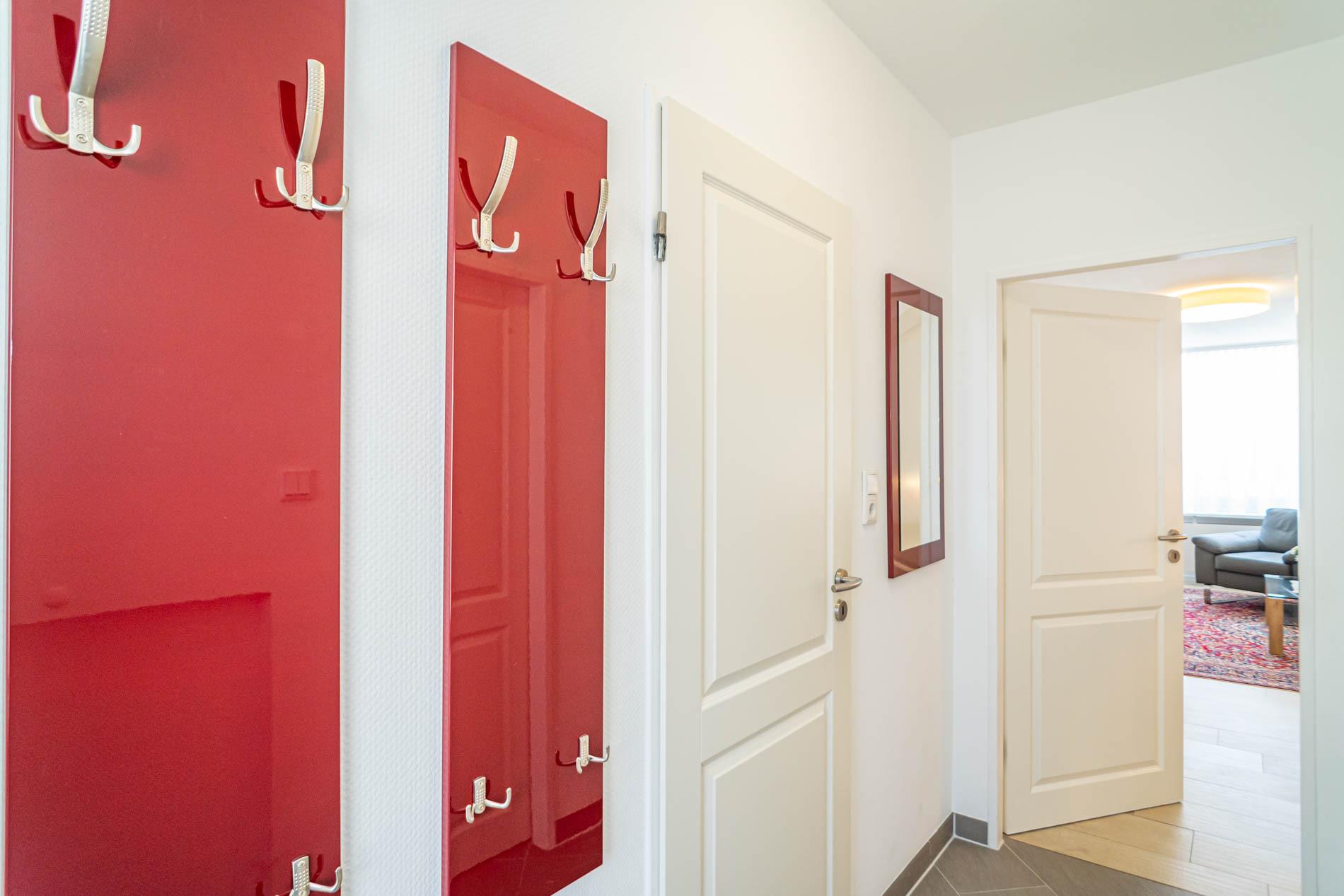 Vom Vorflur mit Garderobe gelangt man in das Wohnzimmer (mit Austritt zum Balkon), in das Schlafzimmer und in das neue Duschbad/WC.