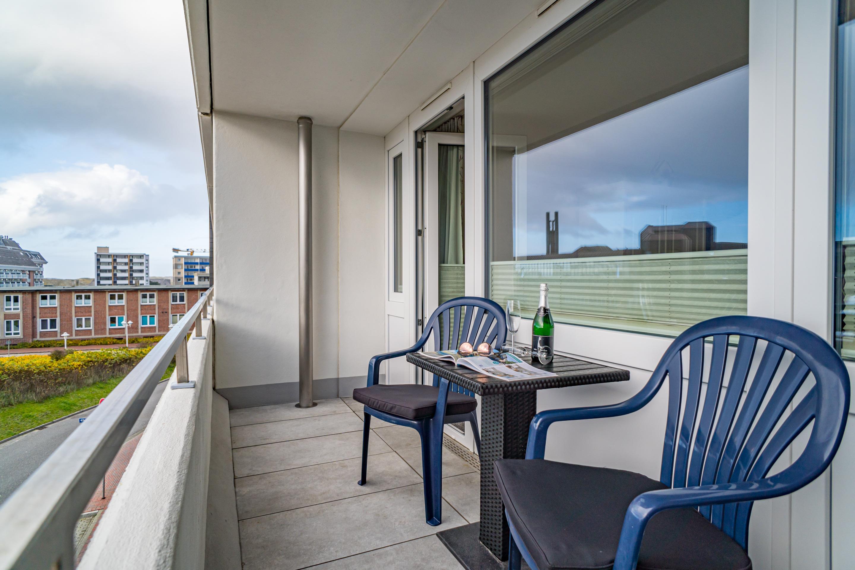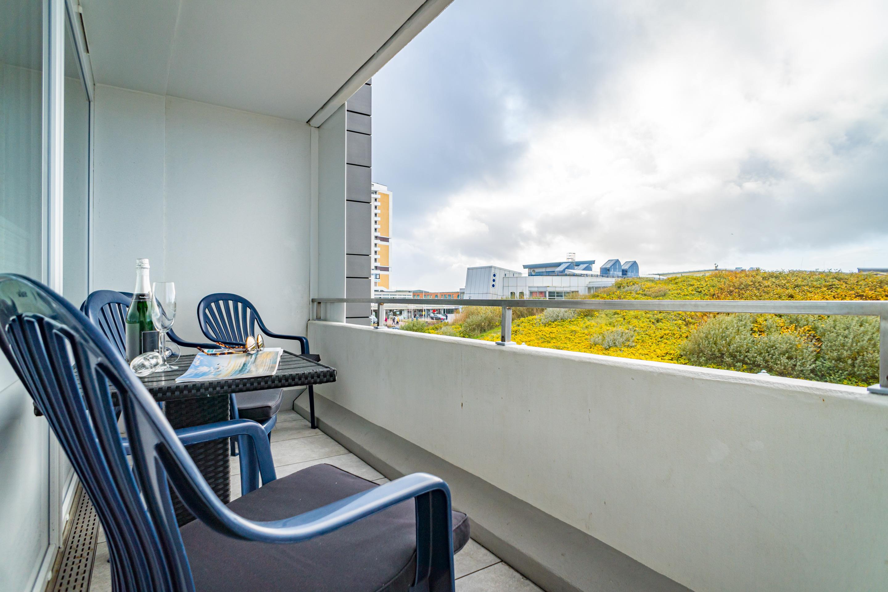 Erleben Sie exklusiven Wohnkomfort in dieser stilvollen 2-Zimmer-Nichtraucher-Ferienwohnung (ca. 51 qm) in der 2. Etage zur Seeseite – ideal für maximal 4 Personen. Die Wohnung besticht durch eine Westloggia, die Sie in der Nachmittagssonne mit Balkonmöbeln und Auflagen zum Verweilen einlädt. Beim Betreten der Ferienwohnung gelangen Sie über einen großzügigen Vorflur mit Garderobe in das helle Wohnzimmer, das direkten Zugang zum Balkon bietet. Von hier aus erreichen Sie das komfortable Schlafzimmer sowie das moderne Duschbad/WC mit Fön.
