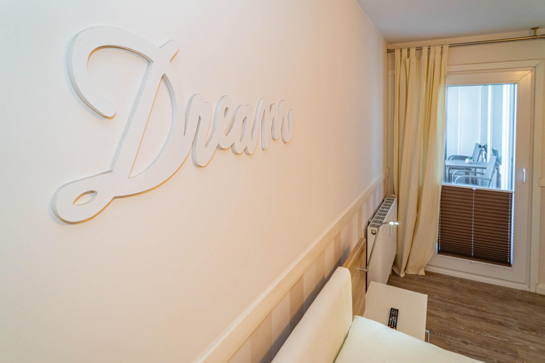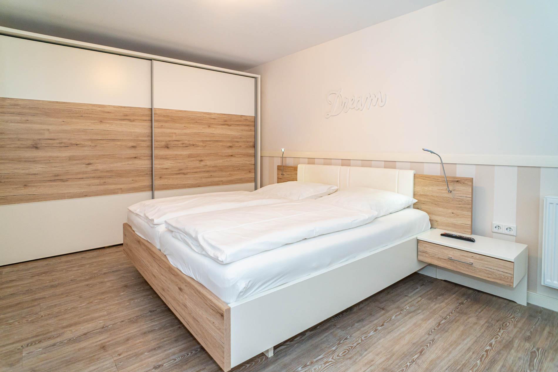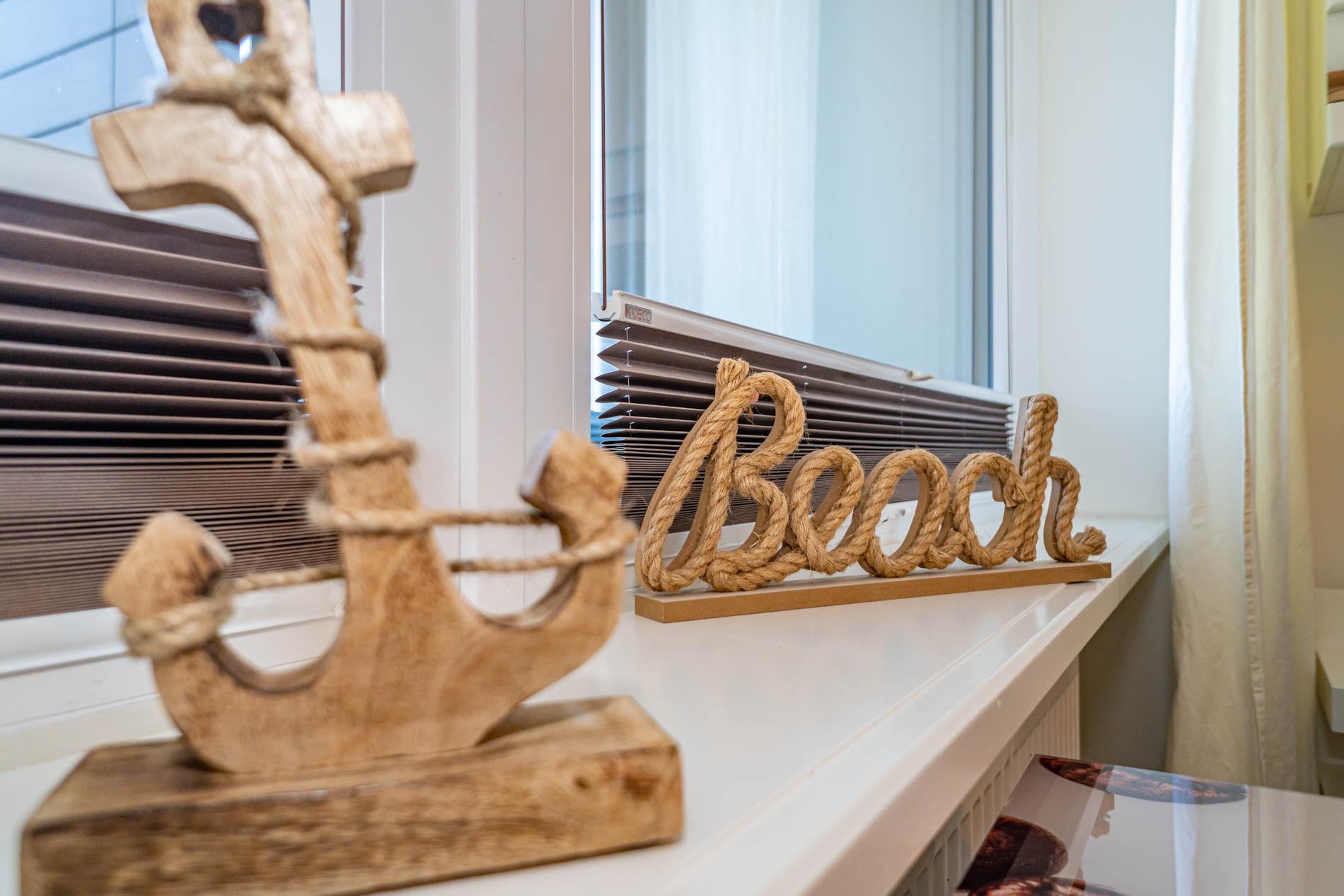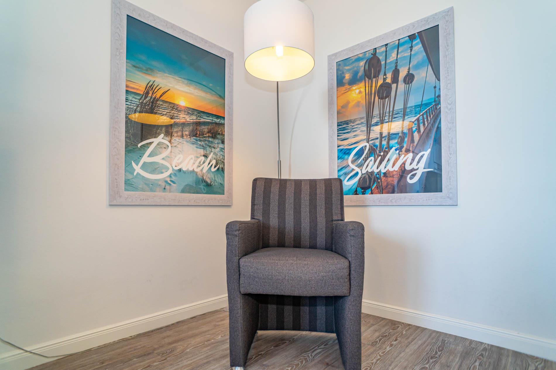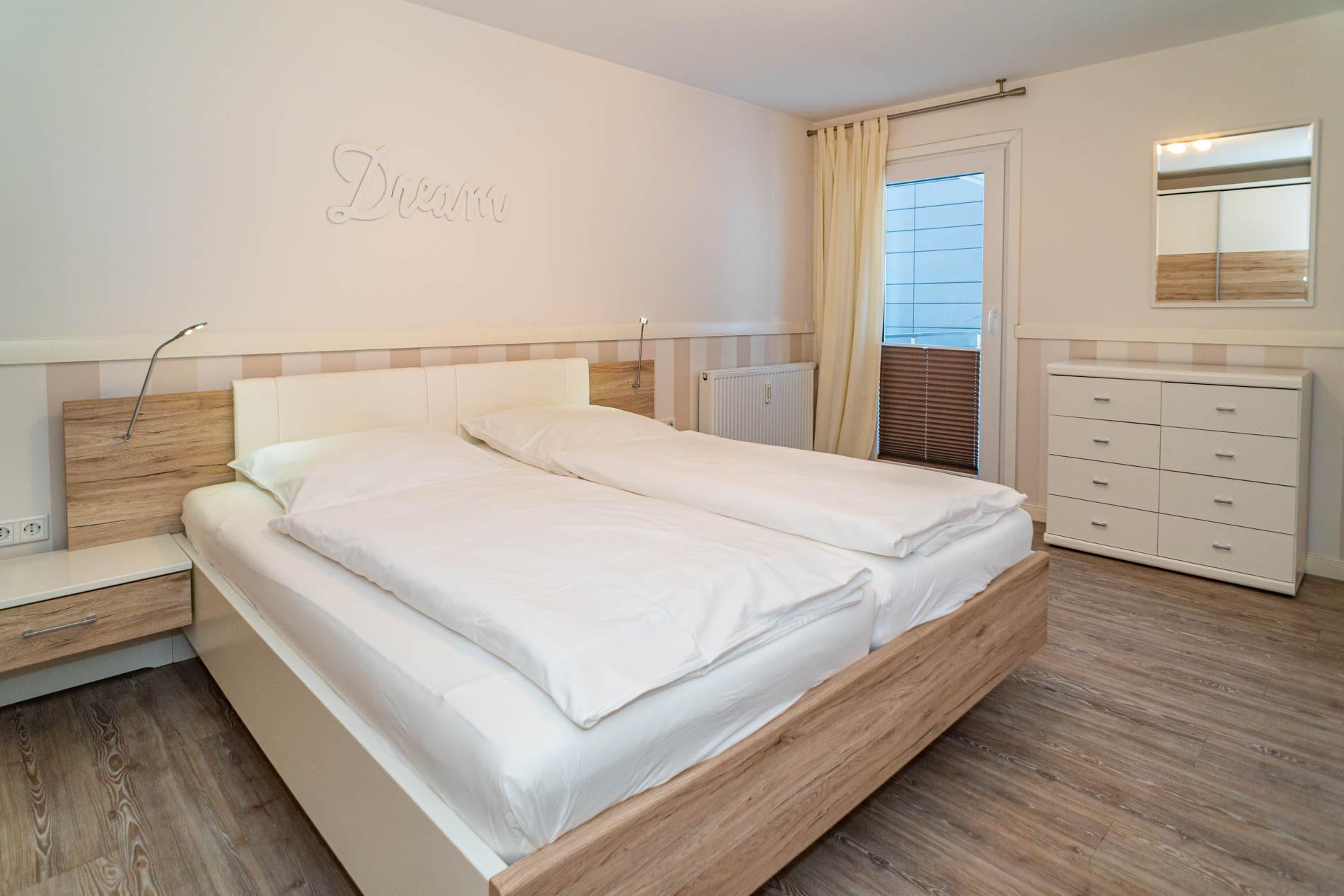 Hochwertig und modern eingerichtete 2-Zimmer-Nichtraucher-Ferienwohnung (ca. 59 qm) in der 2. Etage zur Seeseite mit Westloggia (Nachmittagssonne, mit Balkonmöbeln und Auflagen) für max. 4 Personen.