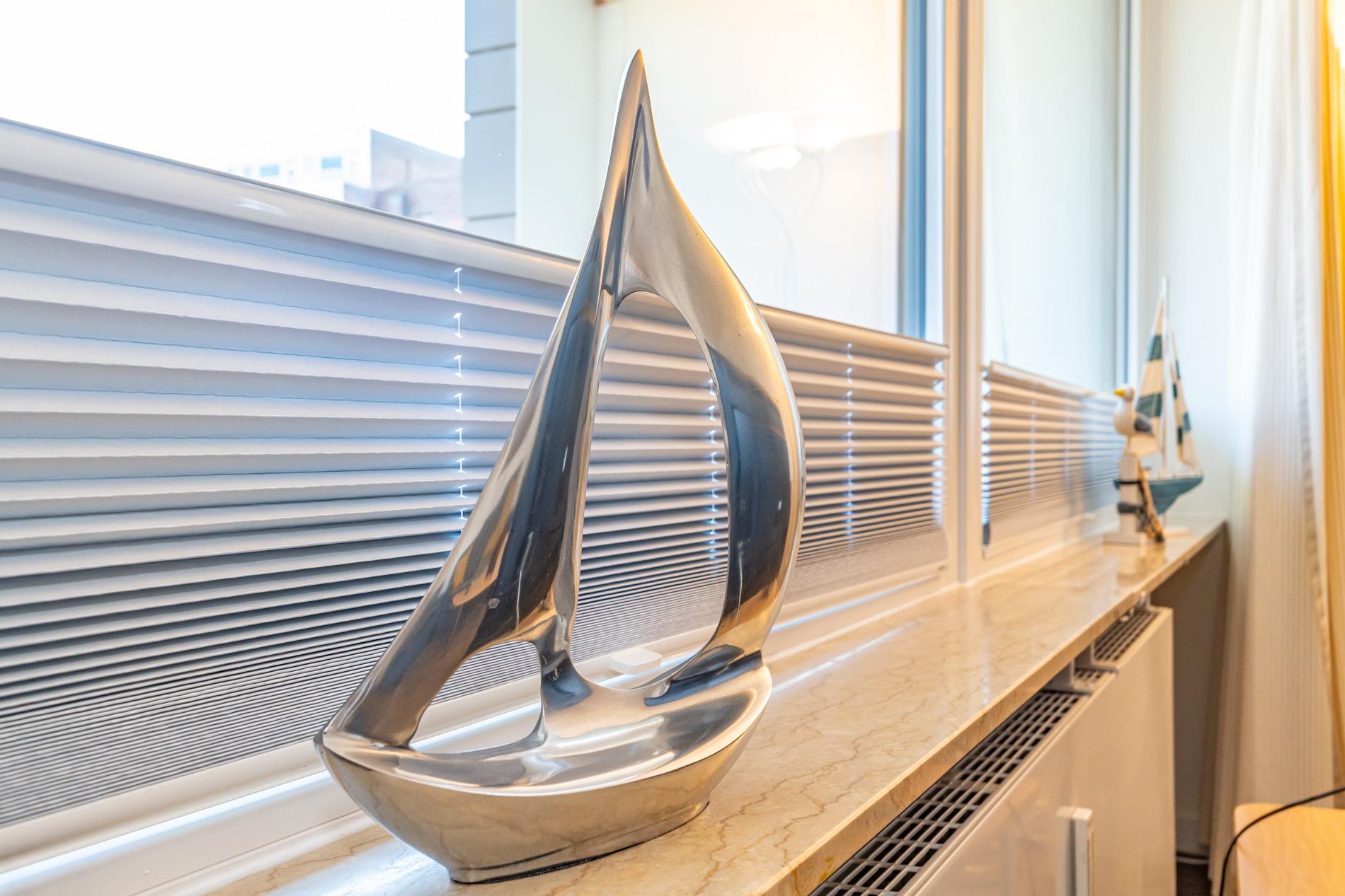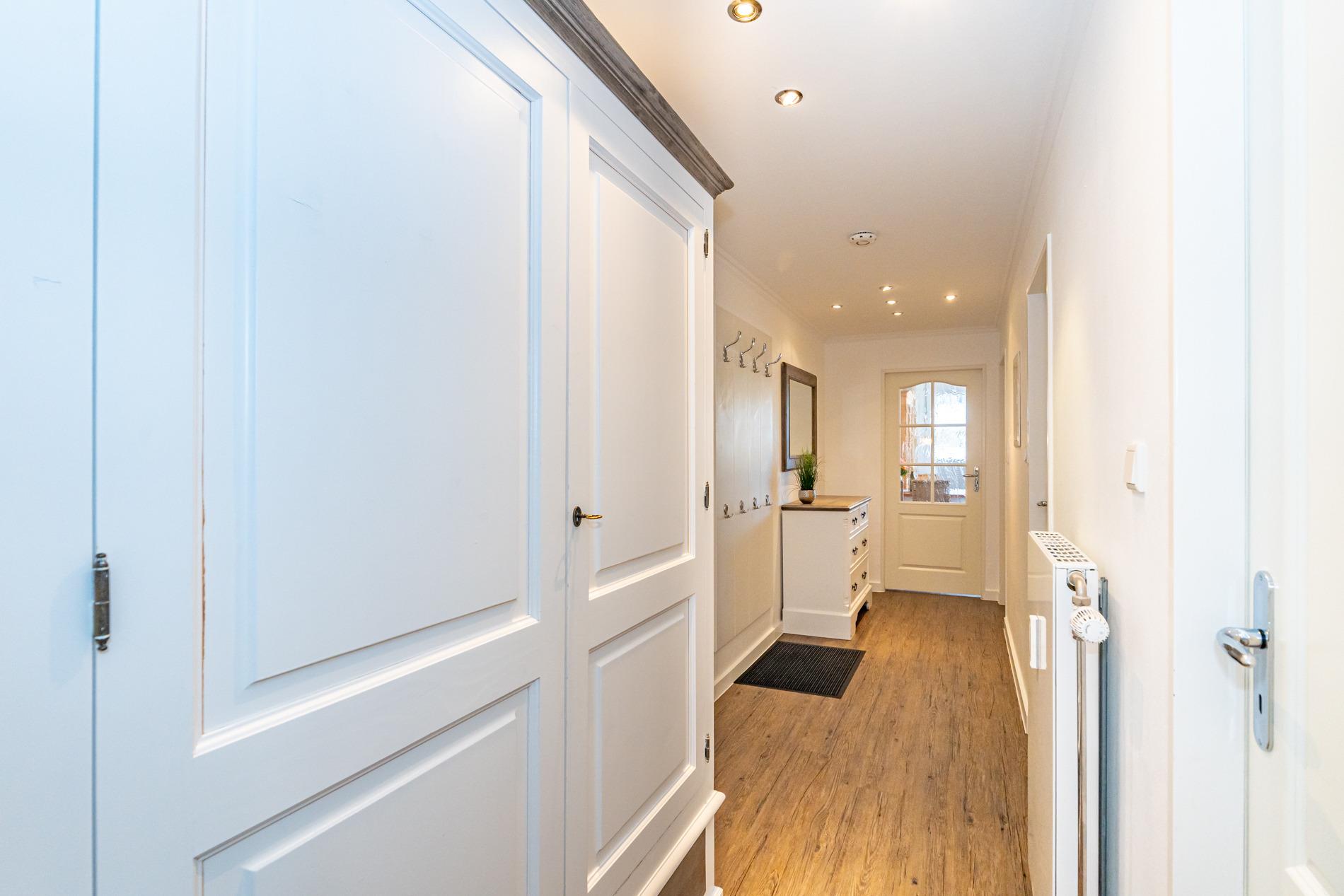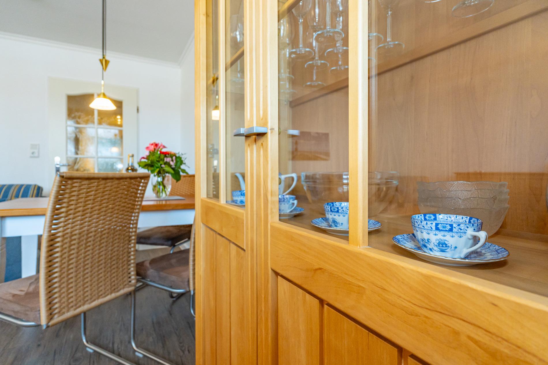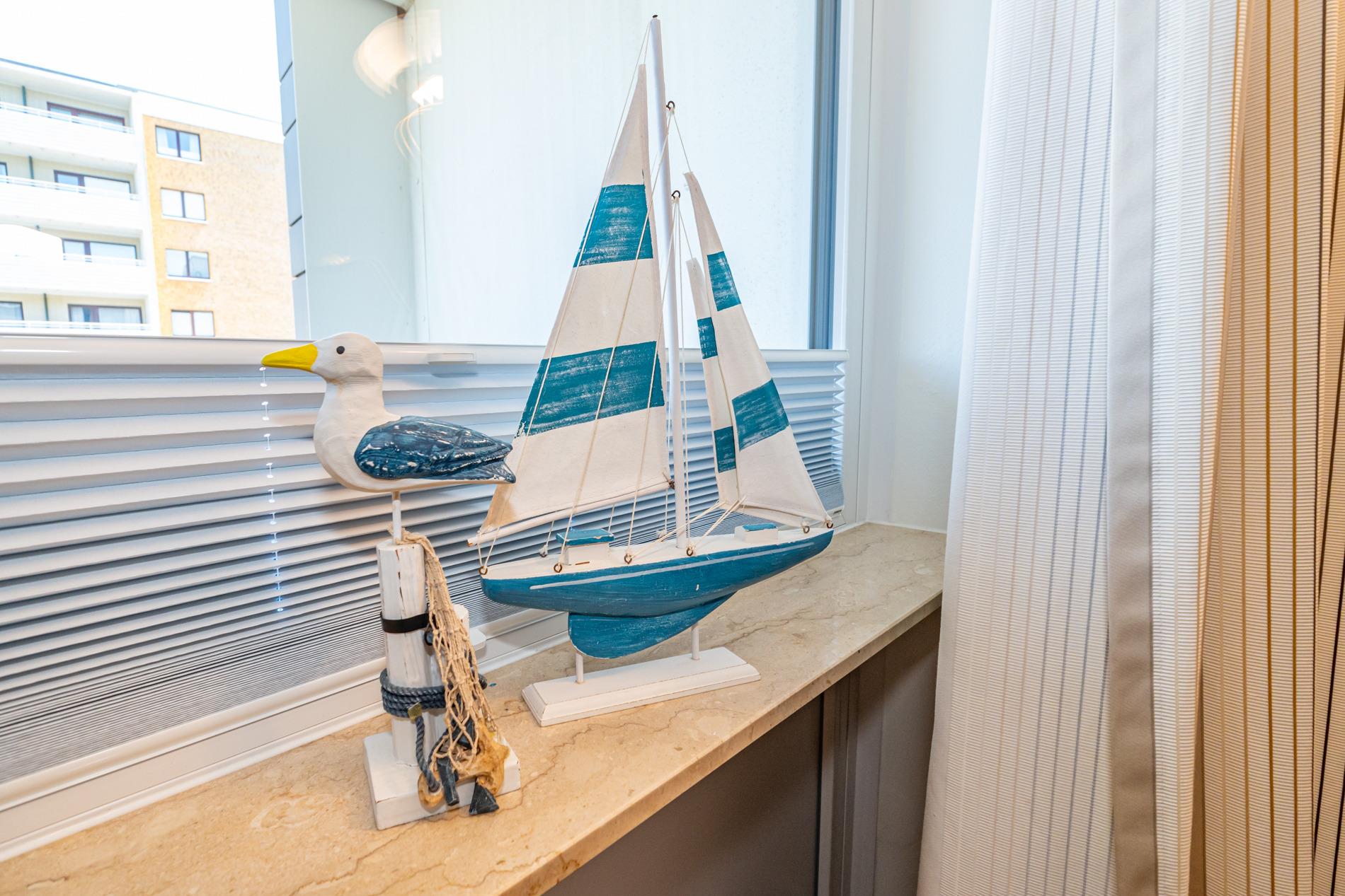 Schick renovierte 3-Zimmer-Nichtraucher-Ferienwohnung, ca. 63 qm, in der 2. Etage zur Landseite mit Ostloggia (Morgensonne, mit Balkonmöbeln und Auflagen) für max. 4 Personen (stufenfrei erreichbar).
