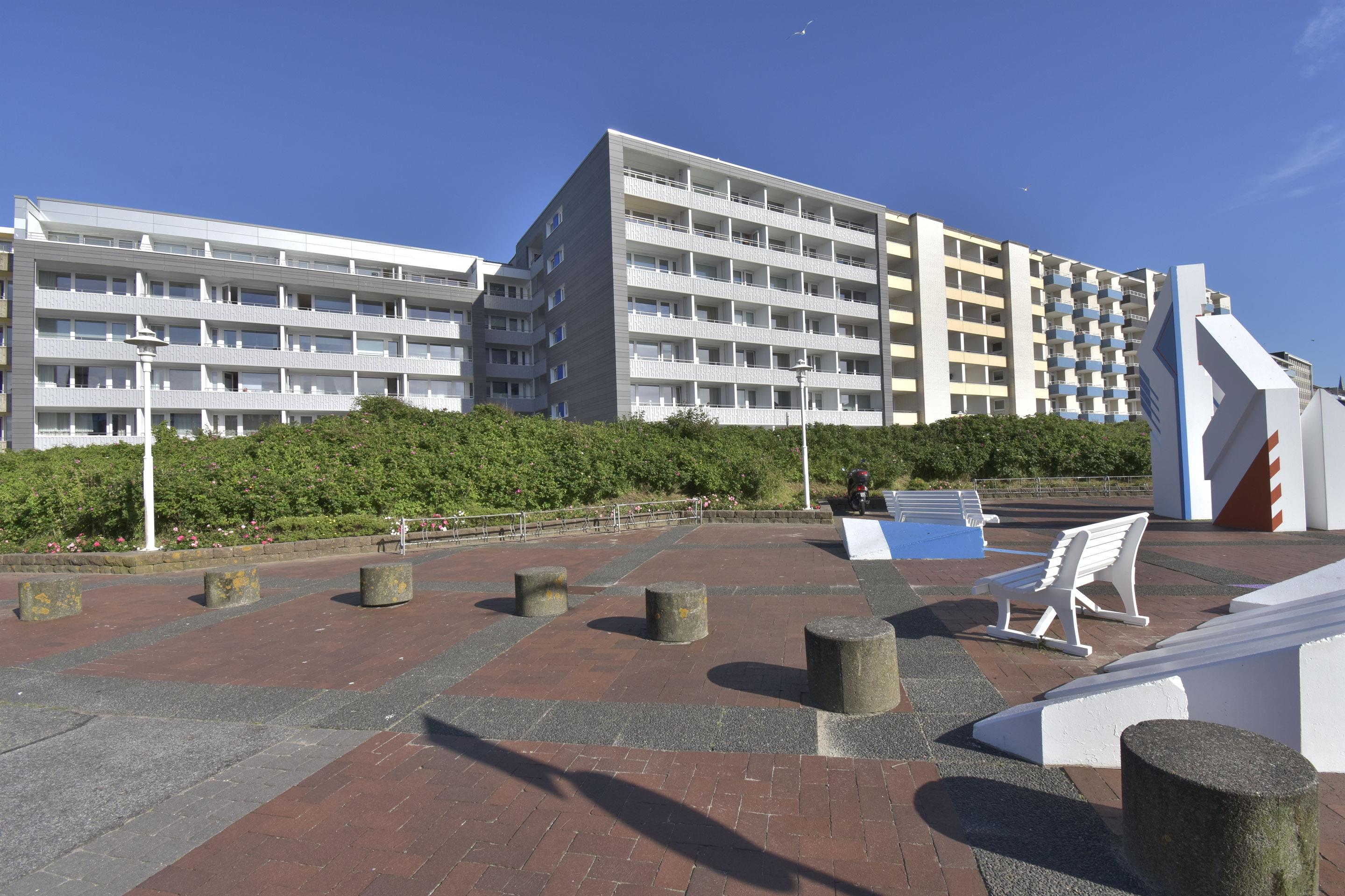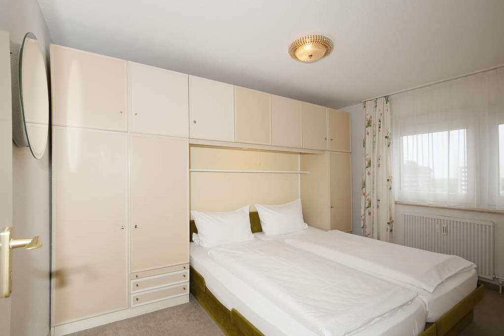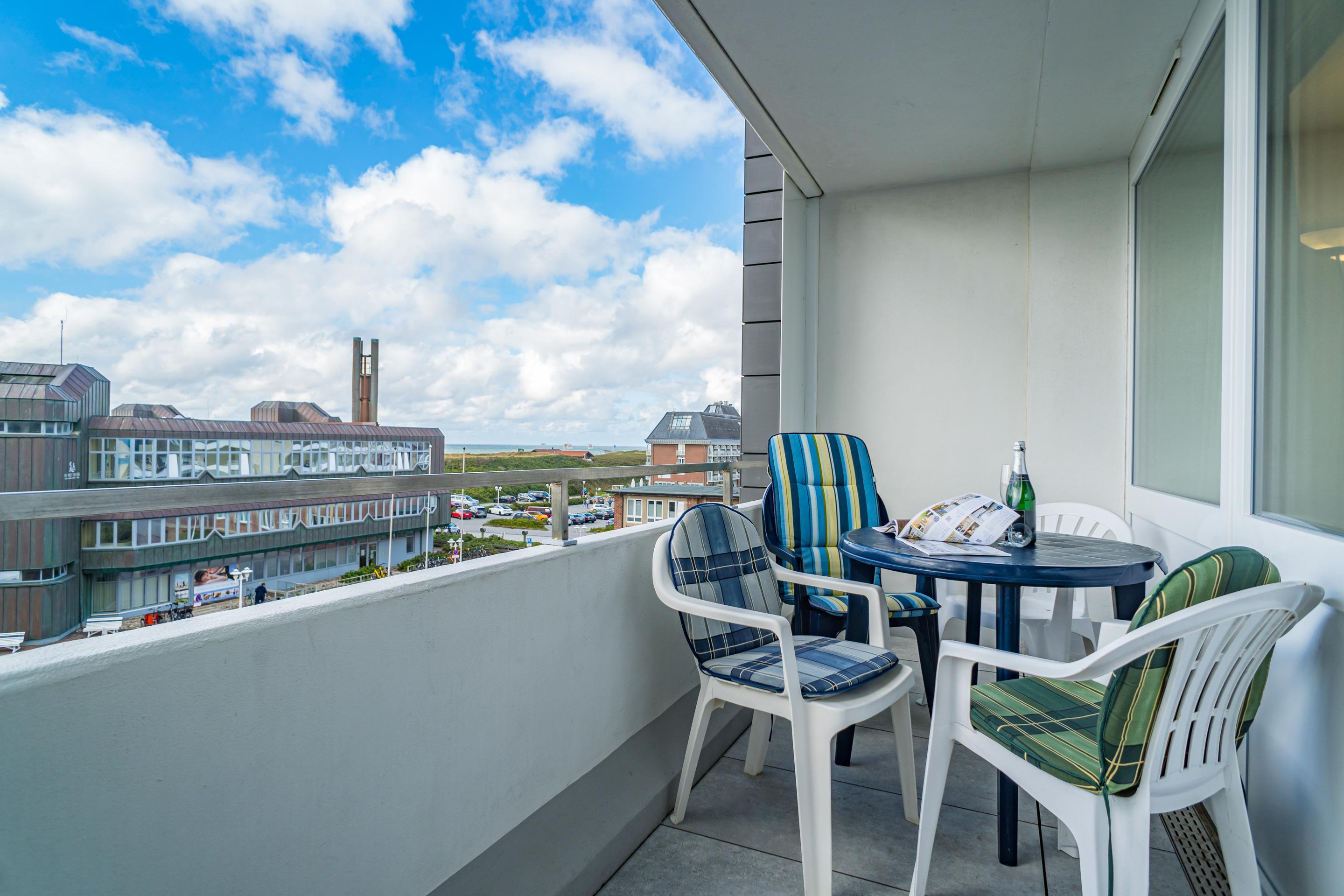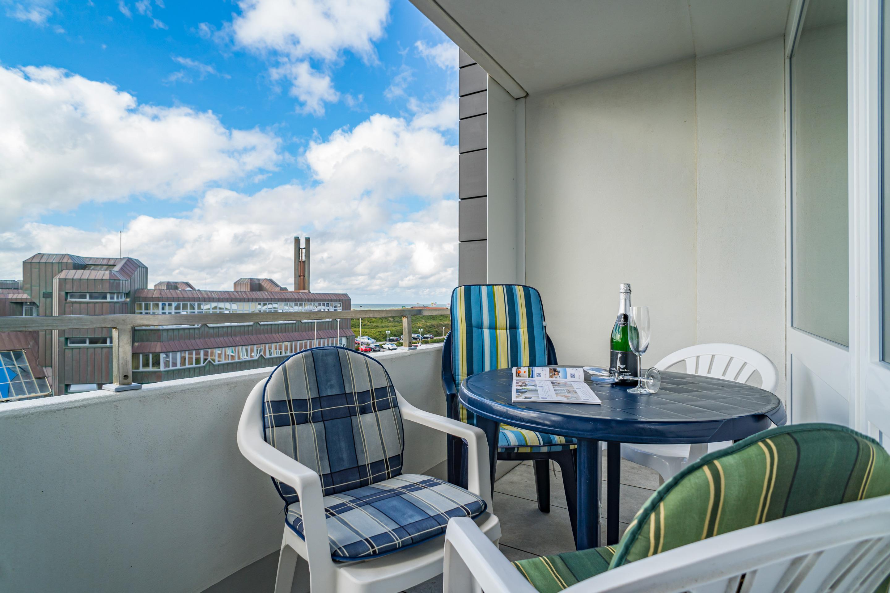 2-Zimmer-Nichtraucher-Ferienwohnung (ca. 51 qm) in der 3. Etage zur Seeseite mit Westloggia und Meerblick (Nachmittagssonne, mit Balkonmöbeln und Auflagen) für[nbsp][nbsp]max. 4 Personen.