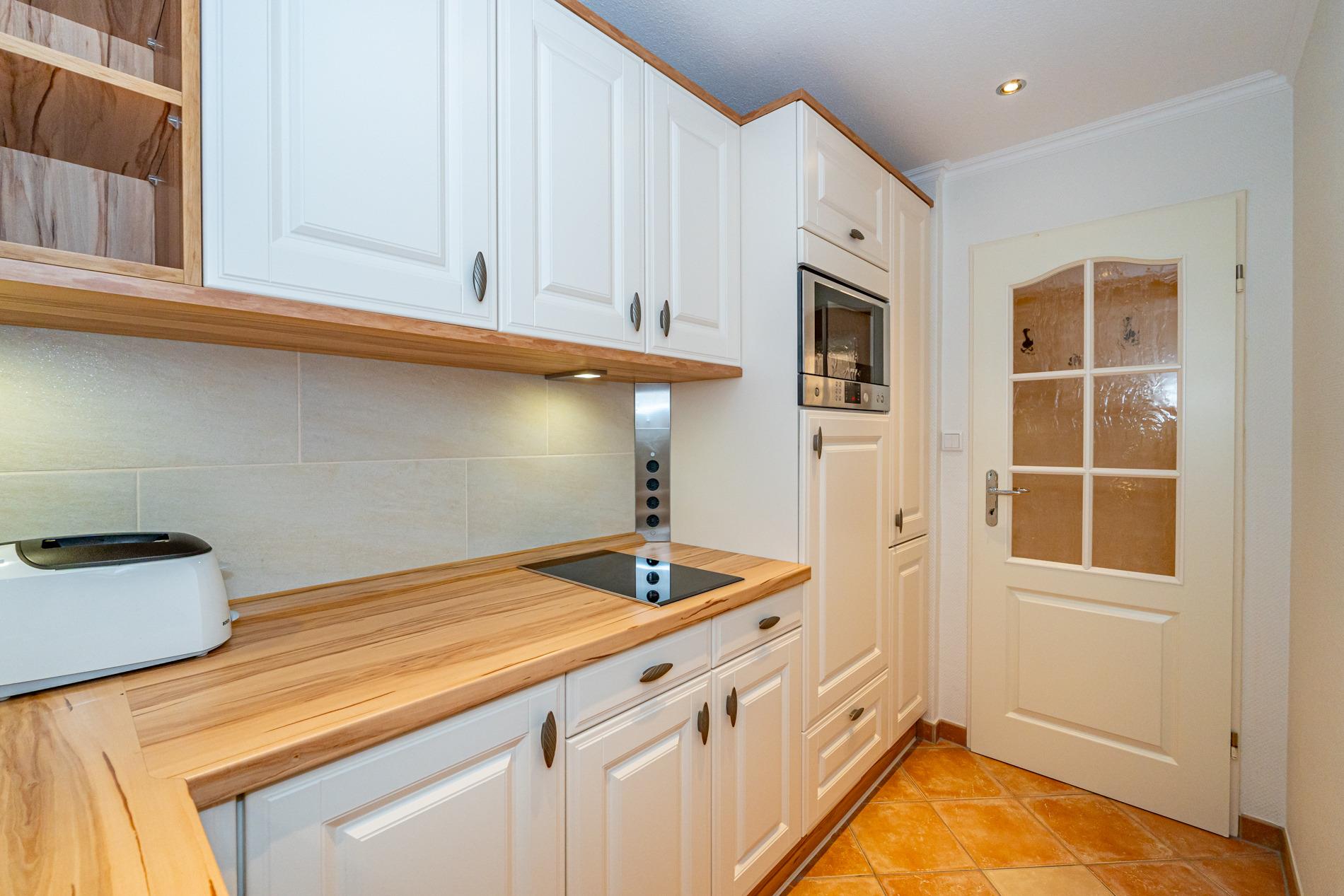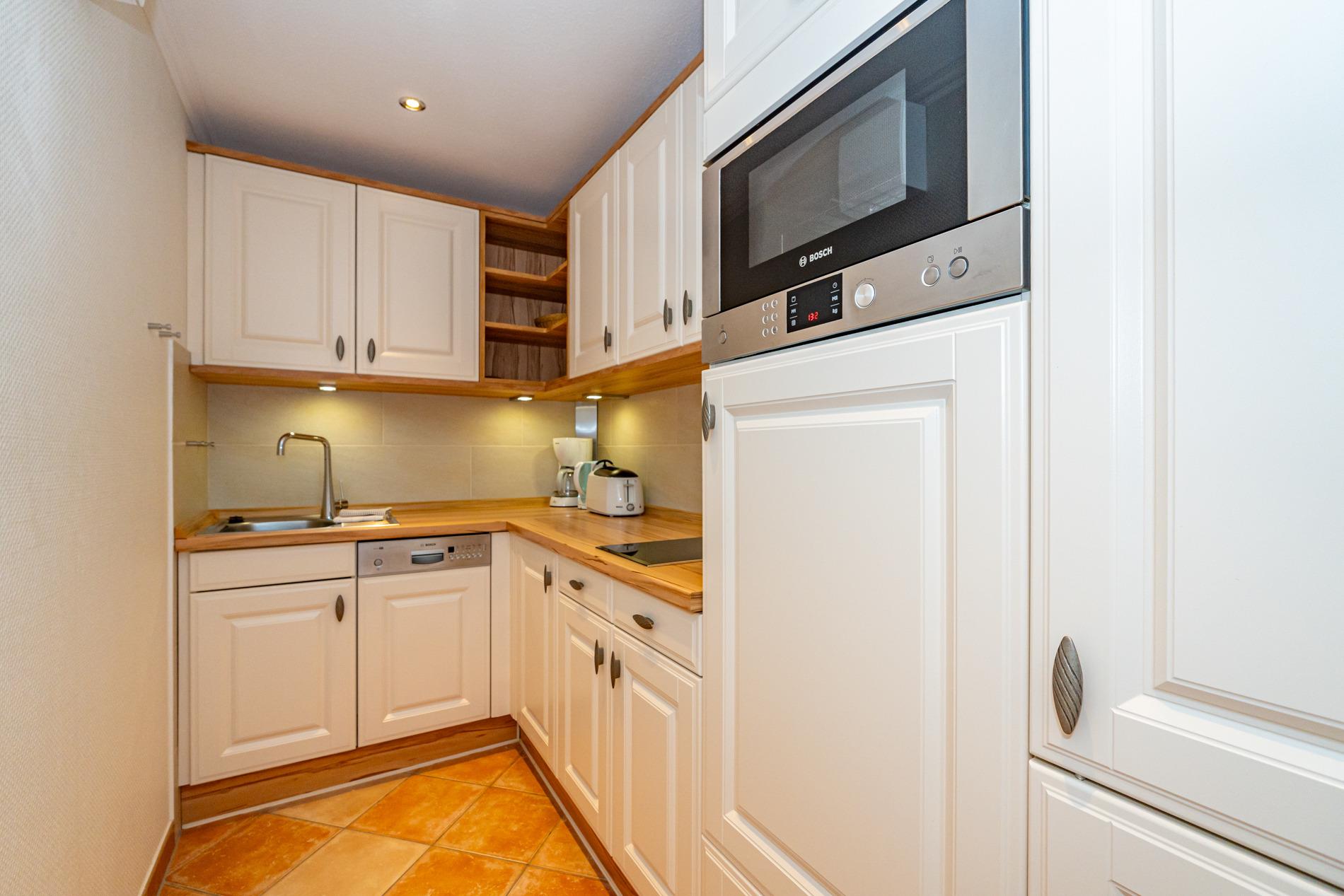 Die Küche hat einen Geschirrspüler, ein Cerankochfeld, eine Mikrowelle und ein Kühlschrank mit 3*-Gefrierfach. Kaffeemaschine, Wasserkocher und Toaster gehören zur Grundausstattung.
