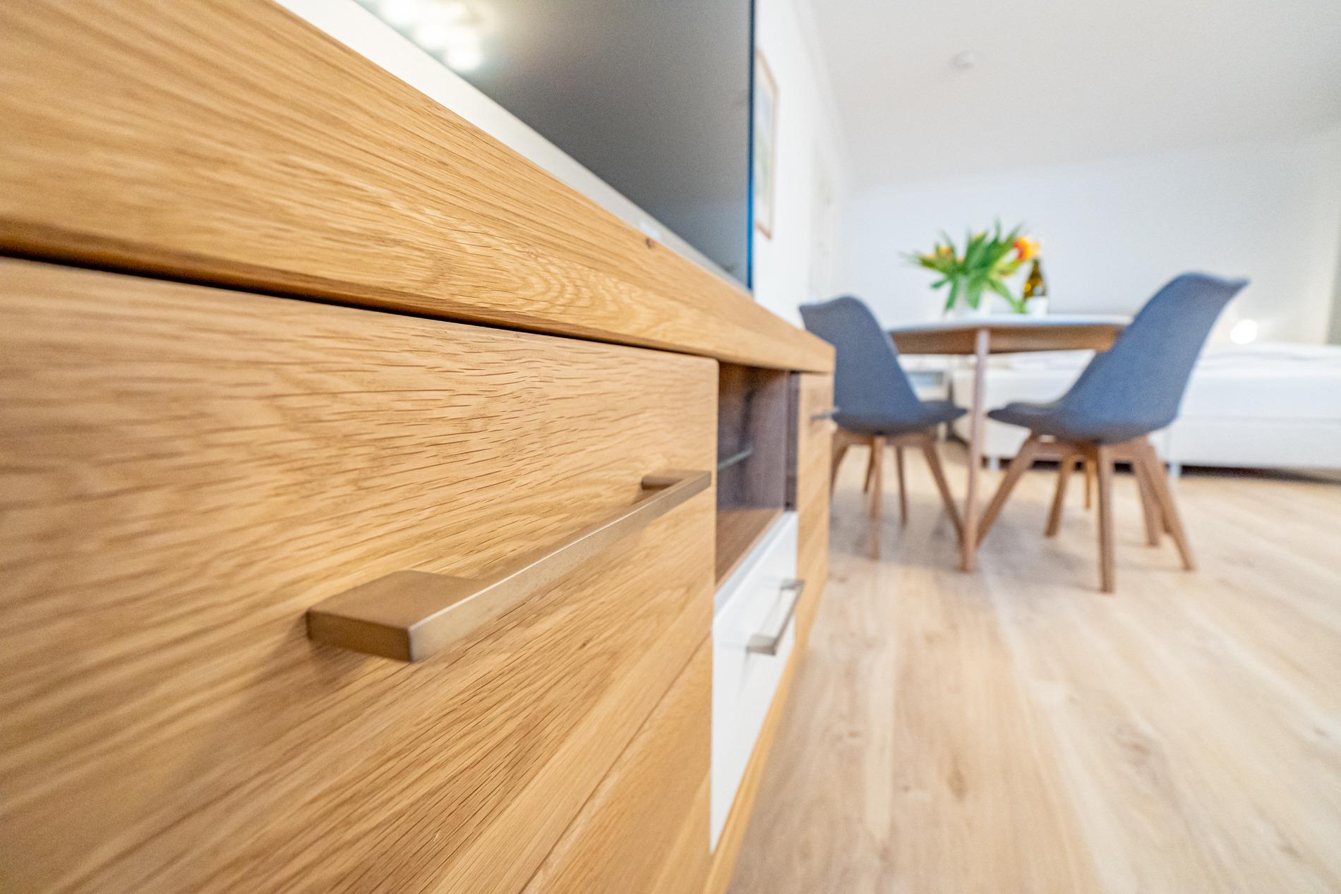 Vom Vorflur mit Garderobe gelangt man in das kombinierte Wohn-/Schlafzimmer (mit Austritt zum Balkon), die neue Küche und das neue, moderne Duschbad/WC.
