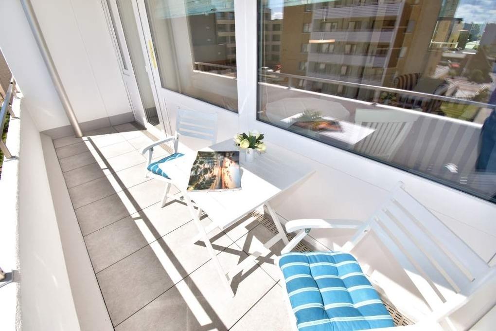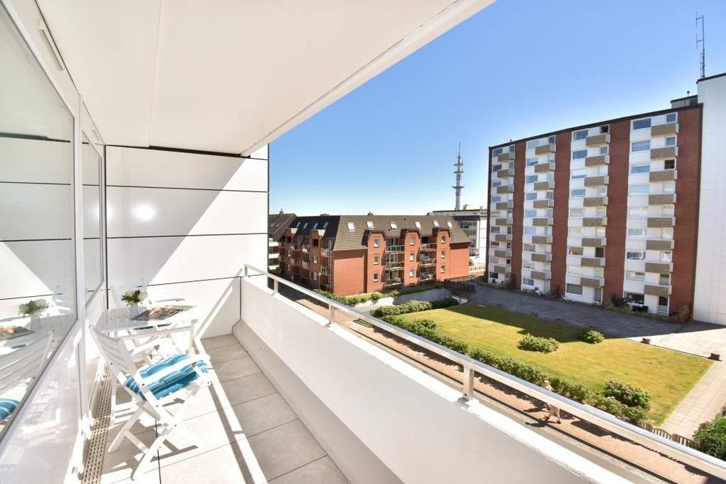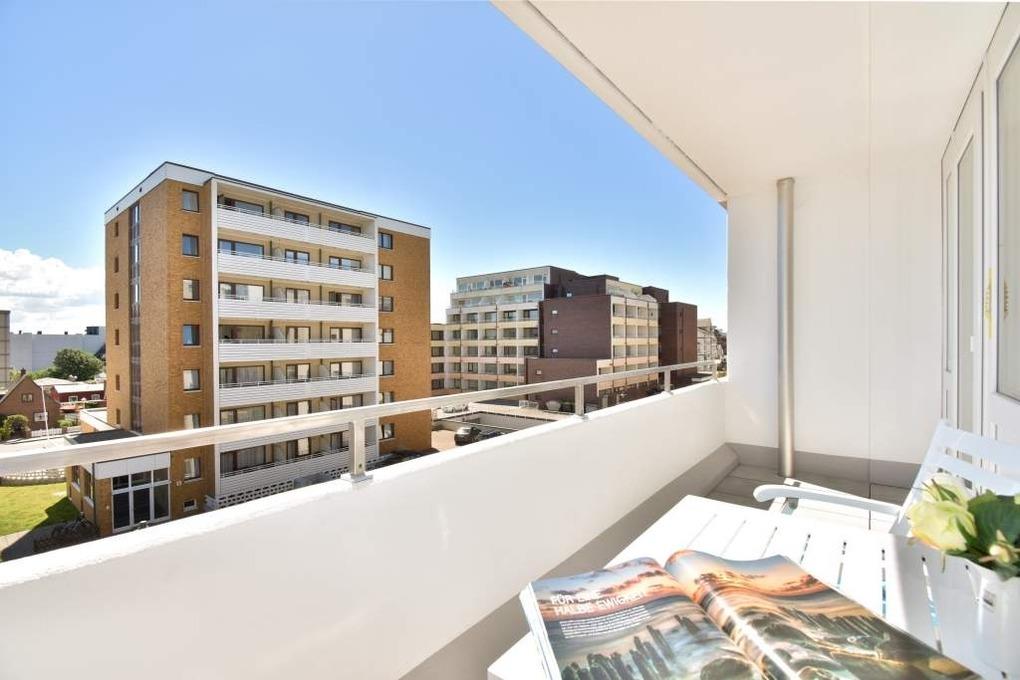 Moderne neu ausgestattete City-Ferienwohnung in unmittelbarer Nähe zum Strand (Sylter Welle) Großzügige 1-Zimmer-Nichtraucher-Ferienwohnung (38qm) in der dritten Etage zur Landseite mit Ostloggia(Vormittagssonne) und Balkonmöbeln für 2 Personen