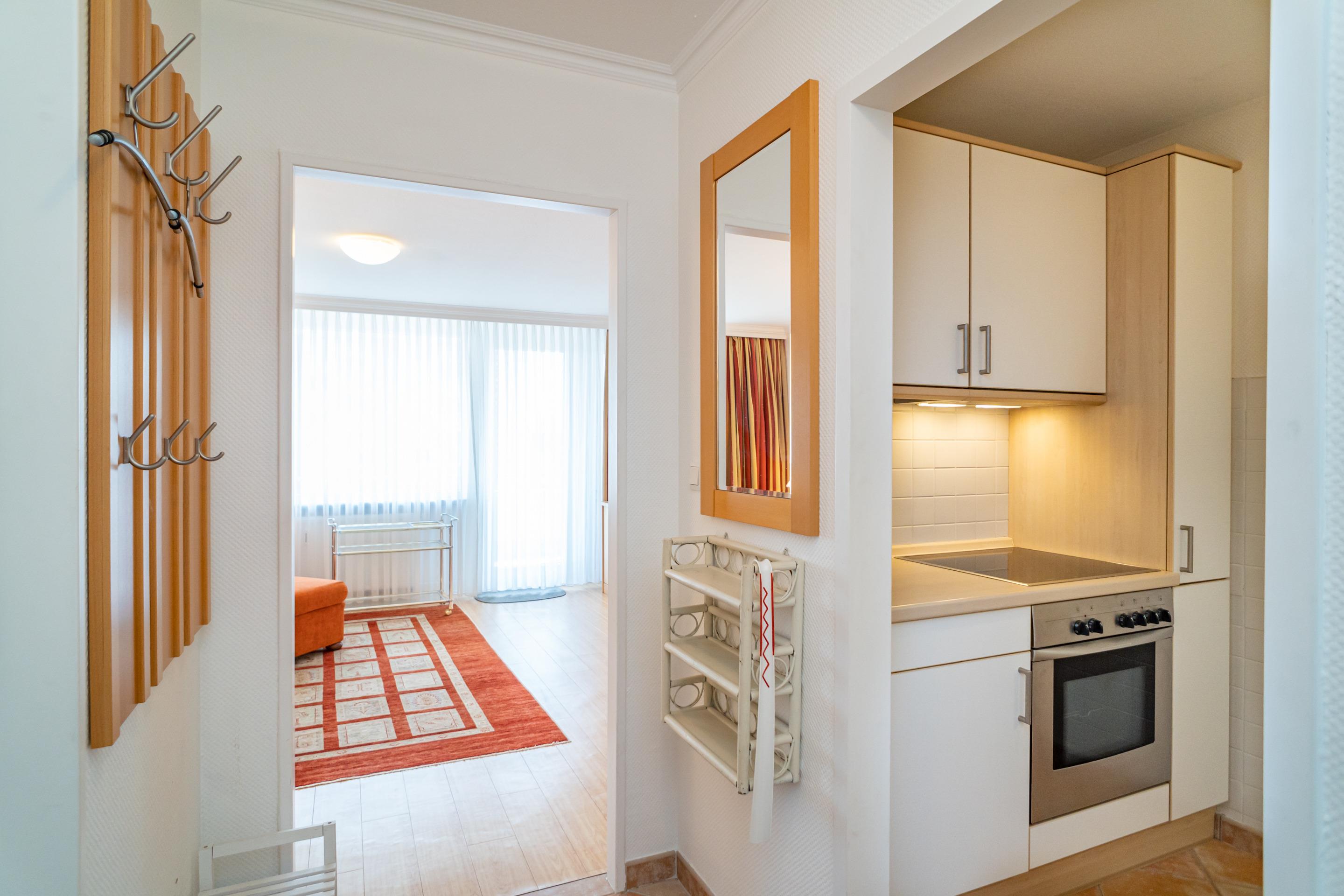 Vom Vorflur mit Garderobe gelangt man in das kombinierte Wohn-/Schlafzimmer (mit Austritt zum Balkon), in die separate Küche und in das neue, moderne Duschbad/WC.
