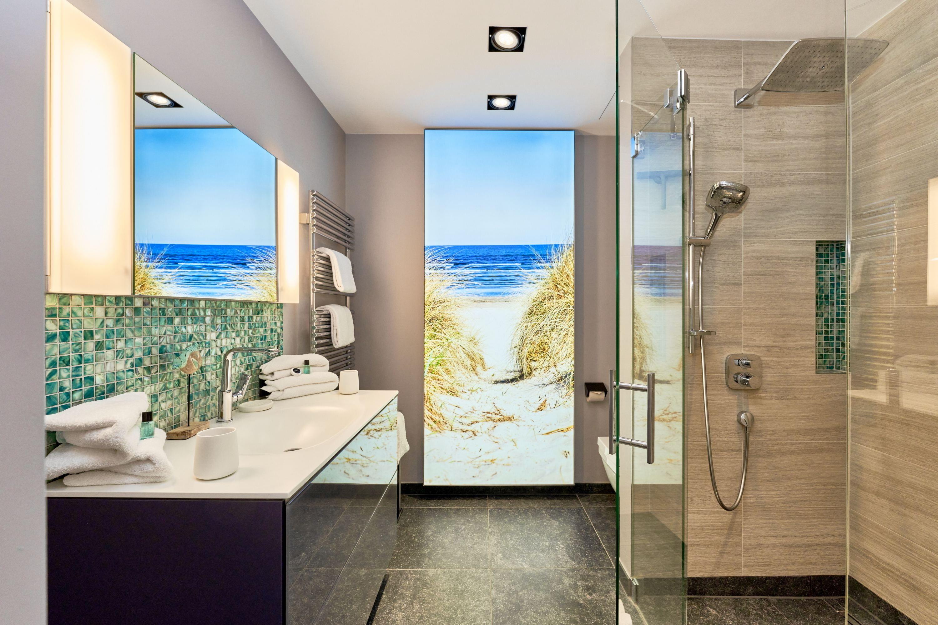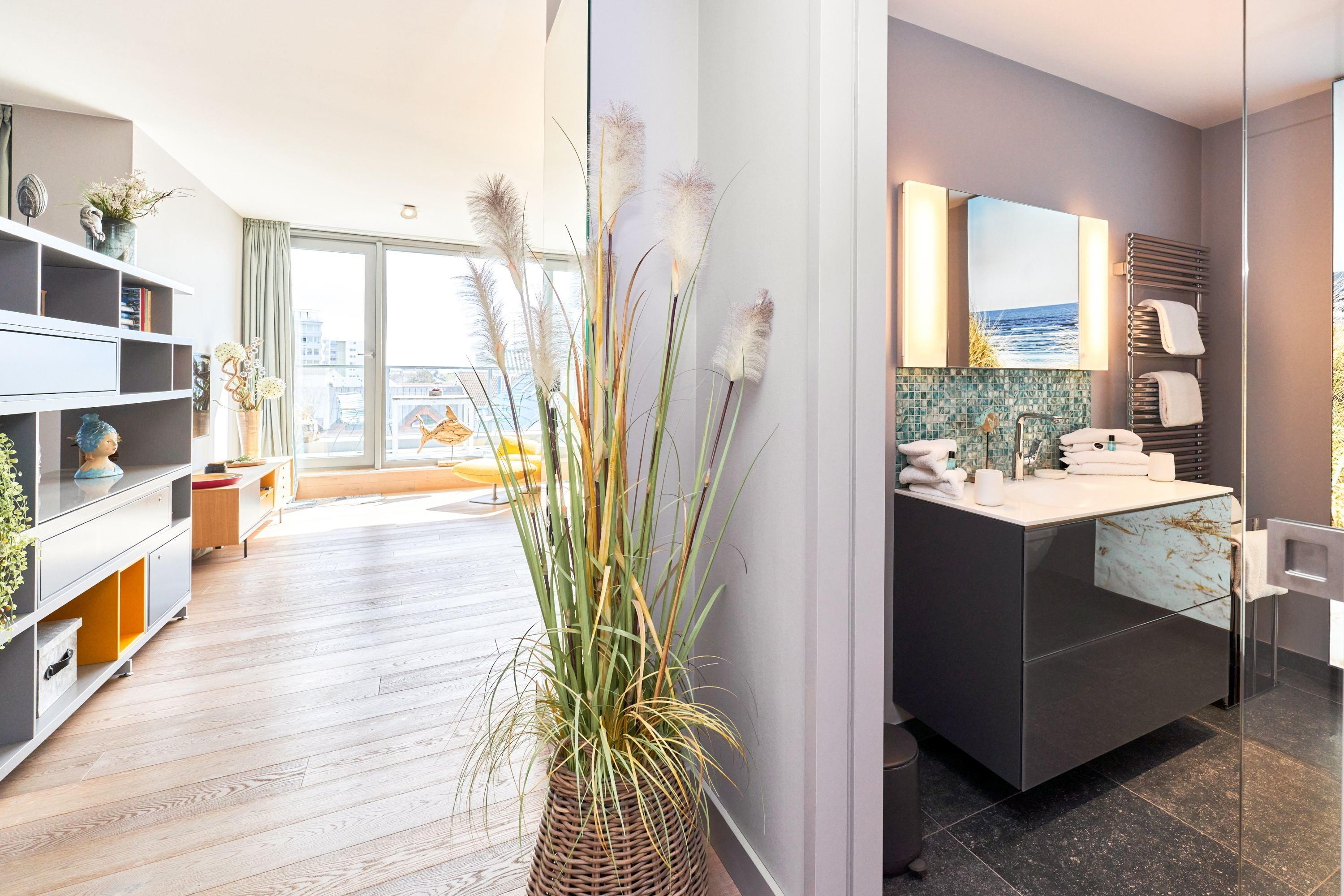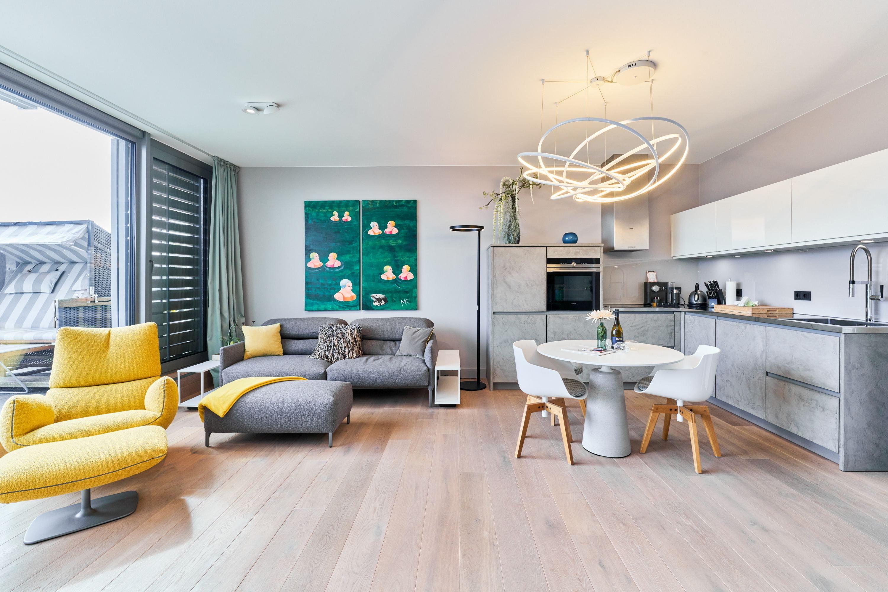 Sölring Loft - Neue Mitte - Westerland , Wohnung 23. Exklusive Ferienwohnung für 2 Personen lässt keine Wünsche offen. Lichtdurchfluteter Wohnraum im zeitlosen Design sowie offenes Wohnambiente im außergewöhnlichen Stil erwarten Sie hier. Die Ausstattung lässt keine Wünsche offen - hochwertige Materialien, feinste Stoffe und edle Wohnaccessoires sowie ein traumhaftes geräumiges Luxusbad und eine integrierte Luxusküche im Beton- Look verstehen sich von selber.