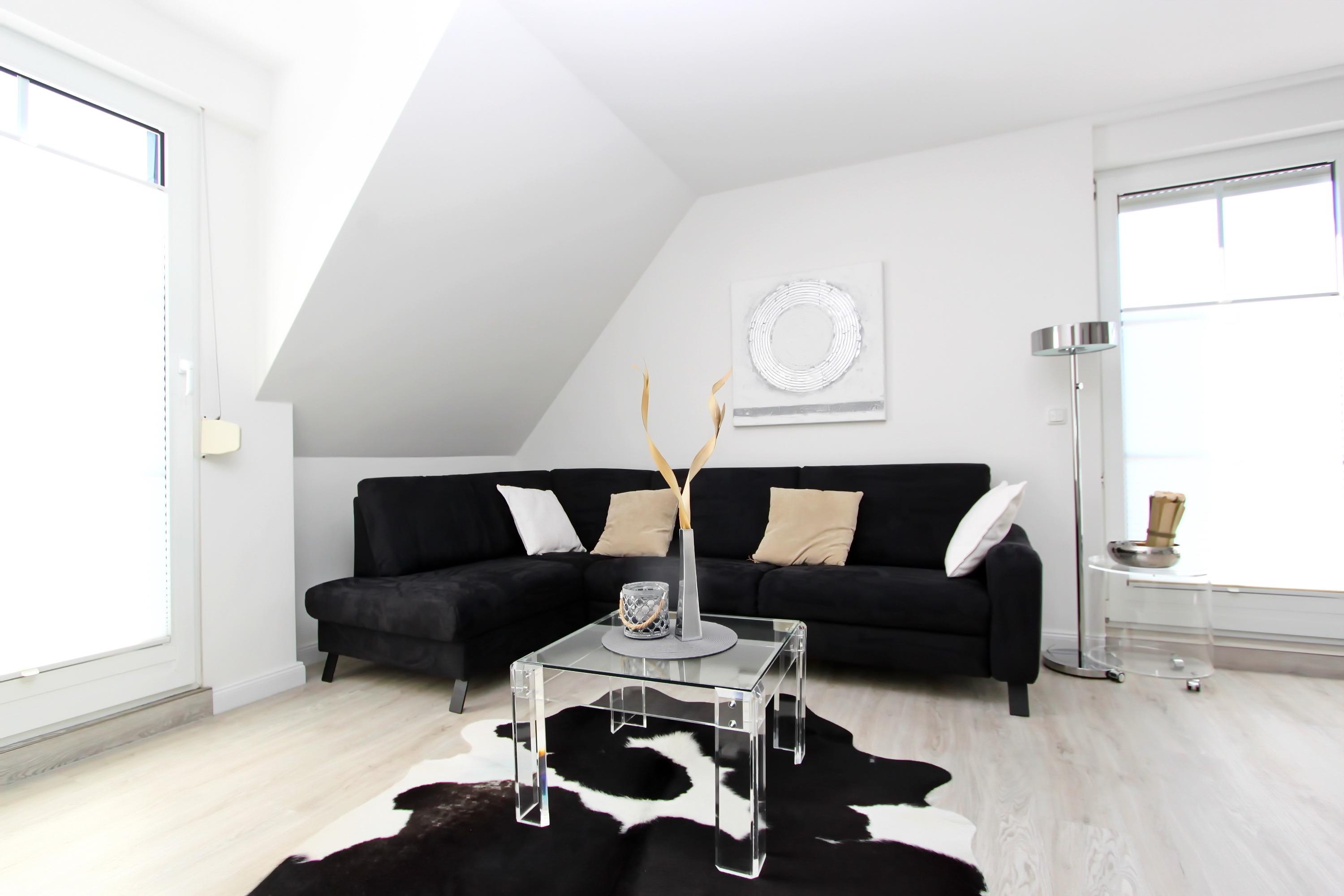 Das neuwertige, lichtdurchflutete Appartement "Strandlicht" (DTV****) bietet auf seinen ca. 65 qm, die sich über 2 Ebenen (OG/DG) erstrecken, ausreichend Platz für 2-4 Personen. Die moderne und gemütliche Einrichtung sowie die beiden zur Sonne ausgerichteten Süd- und Westbalkone lassen keine Wünsche offen.