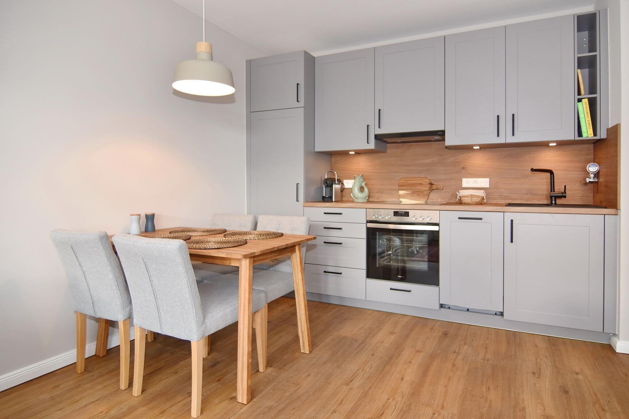 Diese im Frühjahr 2023 frisch renovierte 2-Zimmer-Wohnung befindet sich in strandnaher Lage im Haus Alice im 1.OG. Die Wohnung ist großzügig geschnitten und verfügt über einen großen Südbalkon. Das helle Wohnzimmer bietet Ihnen neben der Küche mit] mit Geschirrspüler, Backofen und Ceranherd, einen schönen Essplatz und eine Sitzgruppe bestehend aus Schlafcouch (140x200 Liegefläche) und Sessel. Vom Flur mit Garderobe gelangen Sie zum Duschbad und zum Schlafzimmer mit Doppeltbett (160x200, 2 Matratzen) und großem Kleiderschrank. Ab Mai 2025 Balkon mit Strandkorb. Zur Wohnung gehört der Pkw-Stellplatz Nr. 36-9. W-Lan (ohne Gewähr) ist vorhanden. Eine Waschküche befindet sich in der Anlage und ist über Münzautomaten zu nutzen, Fahrradständer befinden sich am Haus. Rauchen und Tierhaltung ist nicht gestattet. Bettwäsche und Handtücher sind zur Anreise aufgezogen.