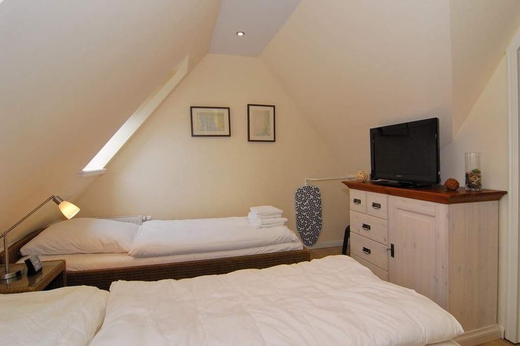 Exklusive 3-Zimmer-Ferinwohnung mit Südbalkon in unmittelbarer Nähe zum Strand und zur Innenstadt. Ca. 60m², OG/DG. Nichtraucher. WLan und Telefon-Flatrate (dt. Festnetz ist frei, alle anderen Nummer sind gesperrt), Tresor.OG: Gefliestes Wohnzimmer mit Couchecke, Essplatz für 4 Personen sowie moderner Einbauküche mit Backofen hierin integrierter Mikrowelle, Geschirrspüler, Flatscreen, Stereoanlage, Schlafzimmer mit Doppelbett und TV, Duschbad/WC. DG: Schlafzimmer mit 2 Einzelbetten und TV, Vollbad/WC. Kinderbett passt nicht in die Schlafräume. Ein Einbauschrank mit Fächern befindet sich oben im Flur. Wasch-/Trocknerkomibination. 1 Pkw-Stellplatz. Tierhaltung nicht gestattet. Bettwäsche und Handtücher sind zur Anreise aufgezogen. Auf dem südlich angrenzenden Nachbargrundstück entsteht ab Februar 2025 ein Neubauvorhaben.