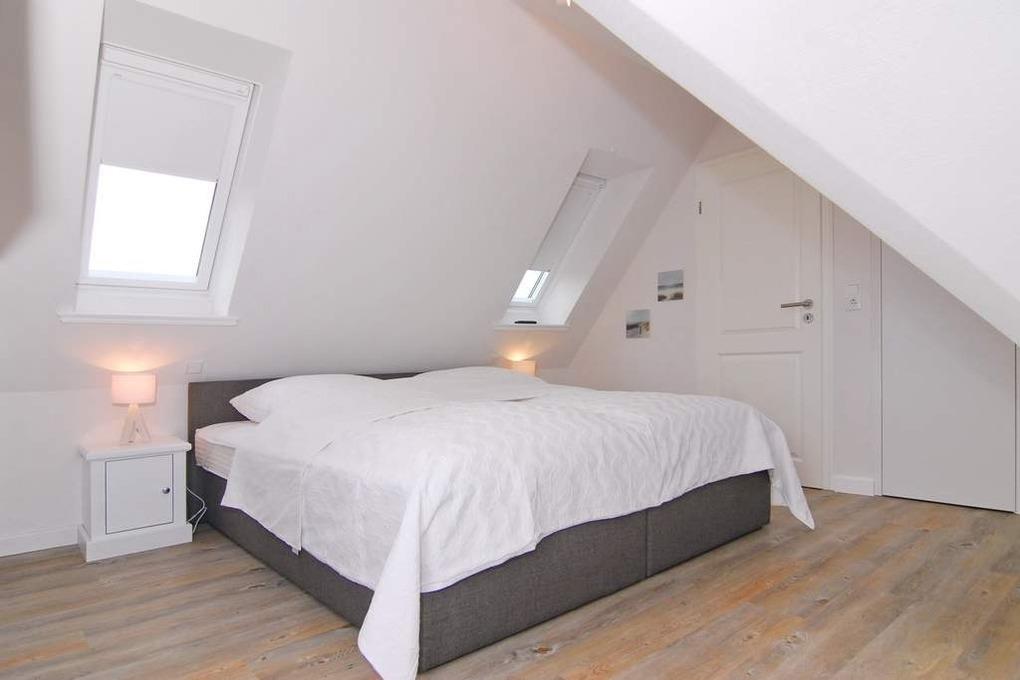 Die lichtdurchflutete 2-Zimmer-Wohnung befindet sich in der Apartmentanlage "Amerij" und somit in unmittelbarer Nähe zum Strand und zur Stadt. Sie ist gen Süden und Osten ausgerichtet und bietet Ihnen einen sonnigen Südbalkon mit Blick in die benachbarten Gärten. Über den eigenen Zugang gelangen Sie ins Obergeschoss. Hier befindet sich das Wohnzimmer mit Sitz- und Essecke, die offene Küche mit Geschirrspüler, Backofen/Mikrowelle und Nespresso-Maschine sowie ein Gäste-WC. Vom Wohnzimmer gelangen Sie auf den möblierten Südbalkon. Im Dachgeschoß befindet sich das Schlafzimmer mit Doppelbett und Flat-TV sowie das Duschbad/WC. Ein Wasch-/Trockner steht hier zur Verfügung. Pkw-Stellplatz am Haus. Rauchen und Tierhaltung ist nicht gestattet. Bettwäsche und Handtücher sind zur Anreise aufgezogen. Auf dem südlich angrenzenden Nachbargrundstück entsteht ab Februar 2025 ein Neubauvorhaben.