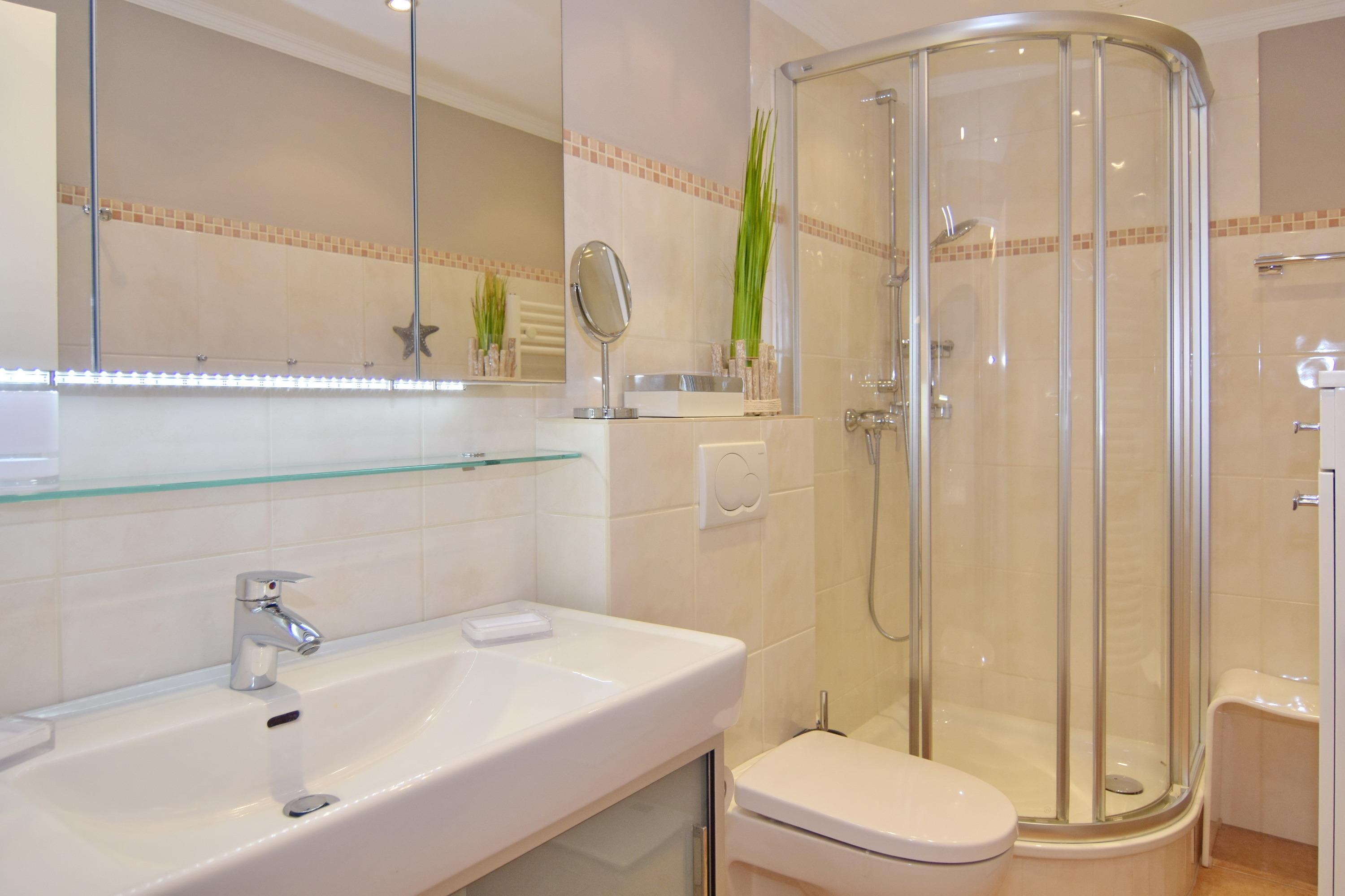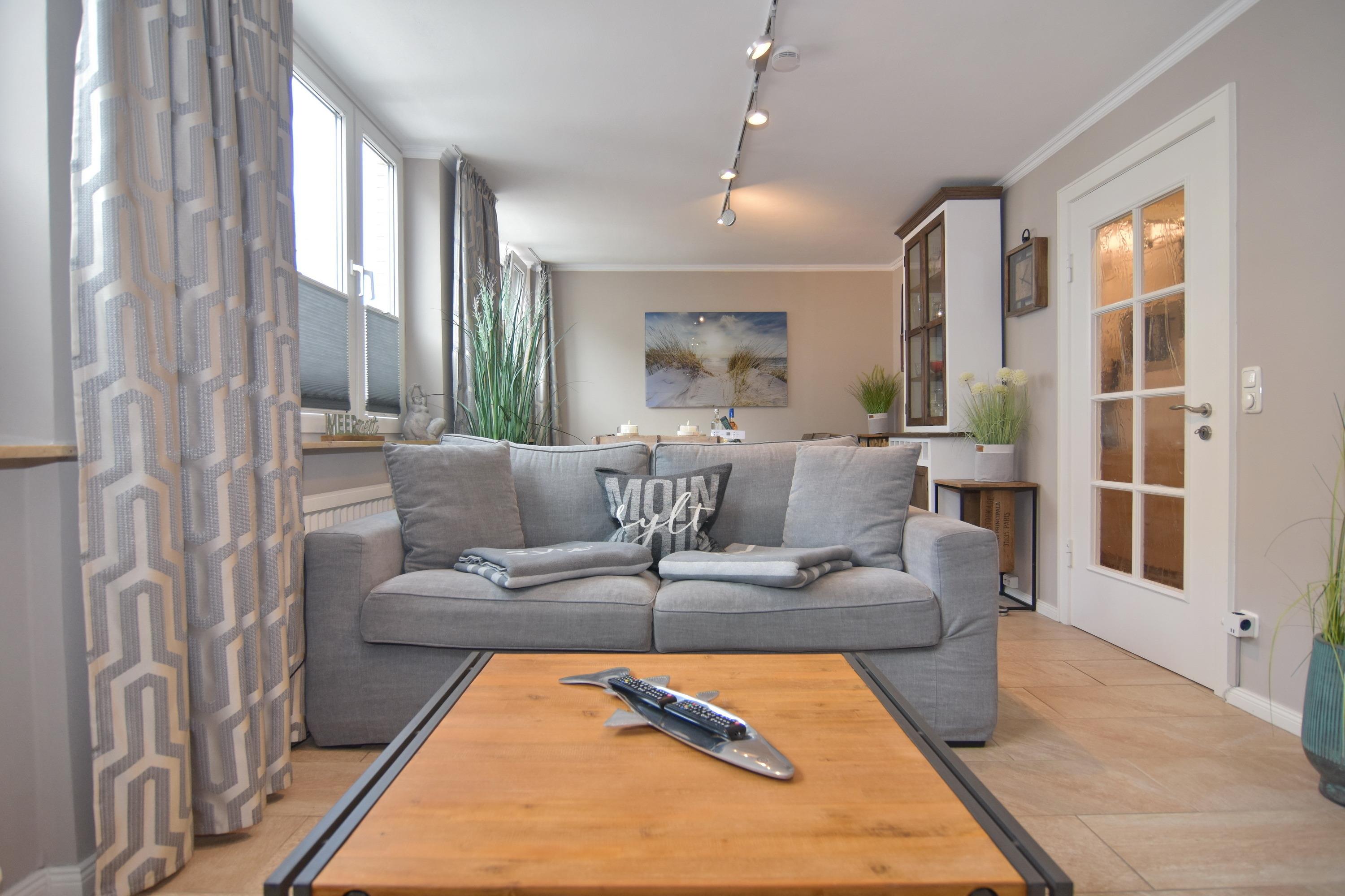 Die Wohnung ist mit viel Liebe zum Detail und vielen kleinen Accessoires eingerichtet. Modern und antik wird hier gekonnt kombiniert. Der Wohnraum ist mit einer gemütlichen Couchgarnitur und einem tollen großzügigem Echtholz-Essplatz mit 4 Polsterstühlen ausgestattet. Im angrenzenden Schlafzimmer befindet sich ein Doppelbett und viel Stauraum und noch ein zusätzlicher kleiner Raum mit eingebauten Schränken. Die separate Küche ist voll ausgestattet mit einem 4 Platten-Induktionskochfeld, einer Mikrowelle, einem Geschirrspüler und einem Kühlschrank mit integriertem Gefrierfach. Duschbad/WC mit Halbrundtusche, großzügigem Waschtisch und Handtuchheizkörper. Nichtraucherwohnung. Wohnungsgröße ca. 45 m². Ein Hotspot im Haus ermöglicht Ihnen einen kabellosen und kostenfreien Zugang zum Internet (WEG-AD3 - Passwortfrei - ohne Gewähr). Ein kleiner Hund darf nach kostenpflichiger Anmeldung mit in die Wohnung.