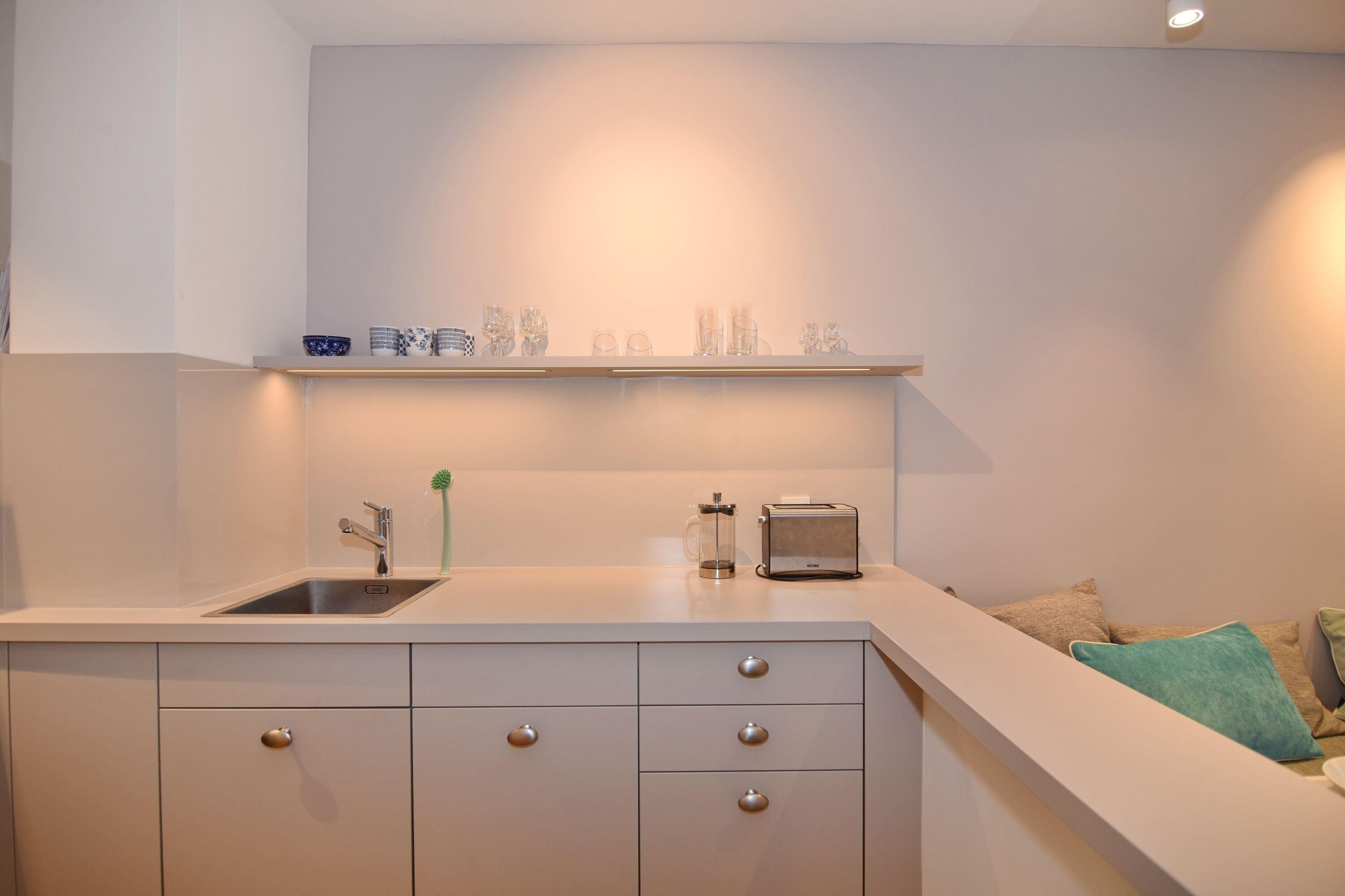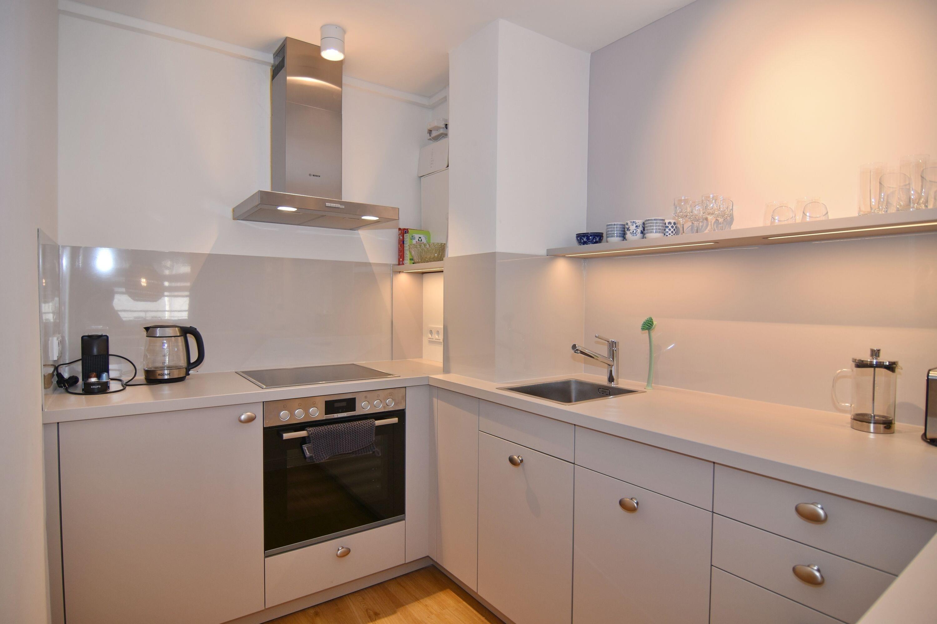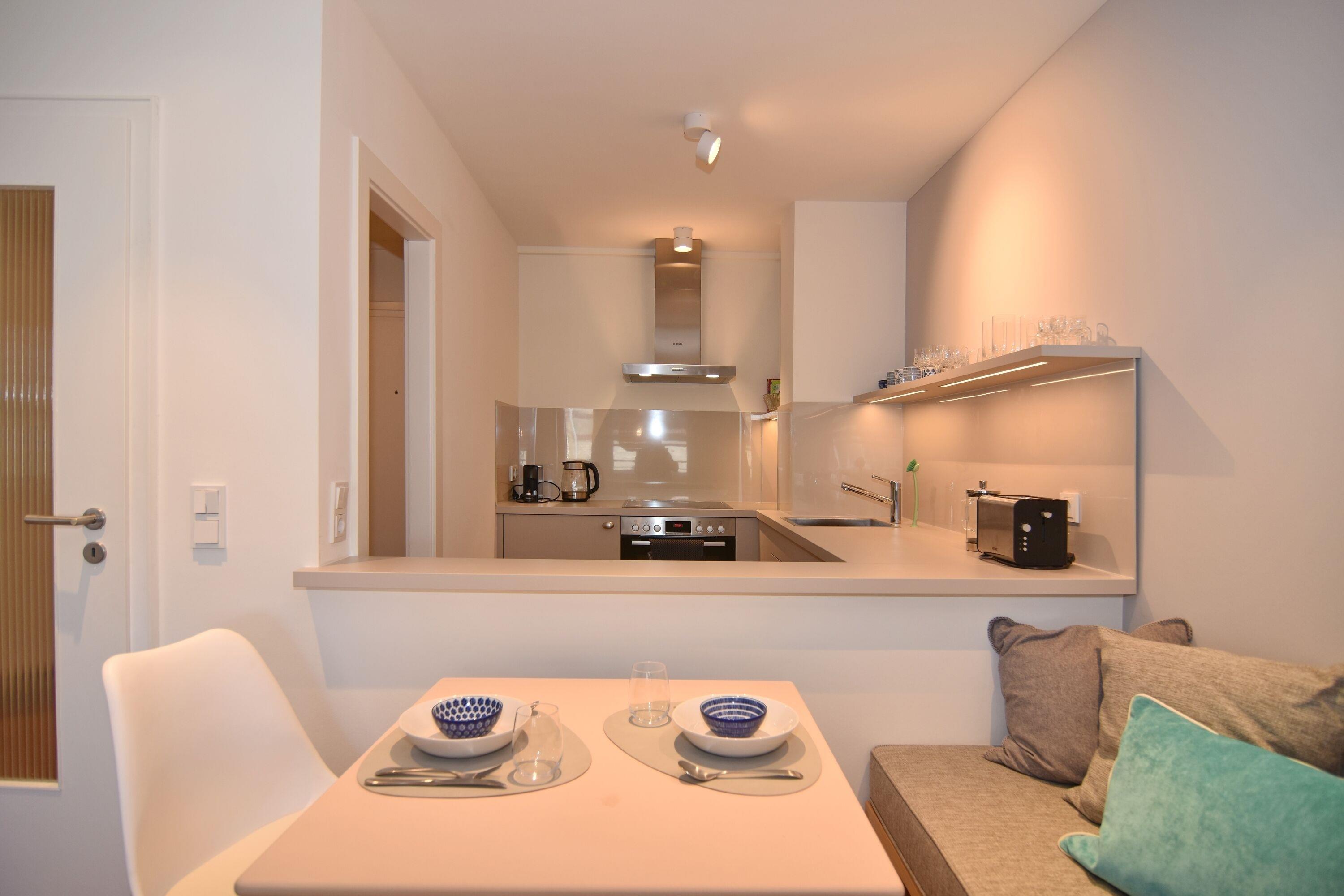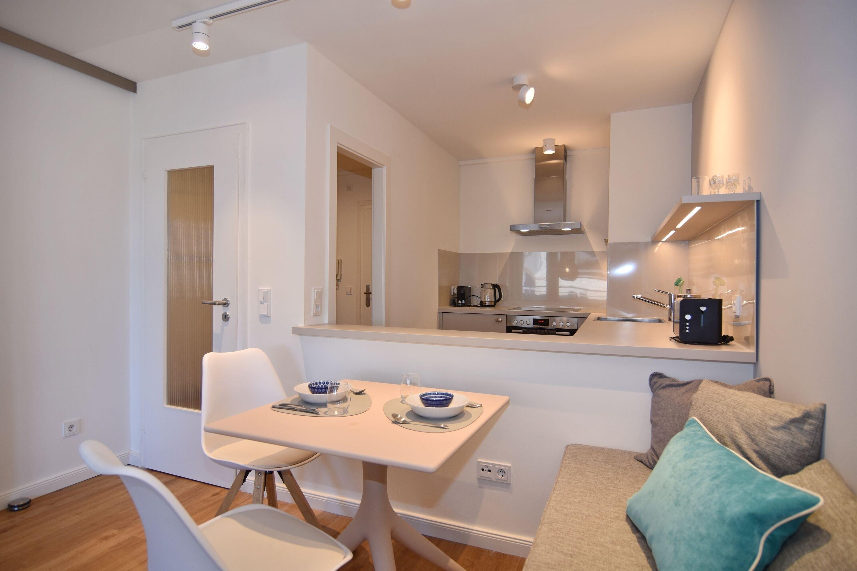 Moderne 2-Zimmer-Wohnung im Herzen von Westerland. Alle Einkaufsmöglichkeiten und der Strand sind bequem und in direkter Nähe fußläufig zu erreichen. Das Wohnzimmer verfügt über eine lange, gepolsterte Eichen-Sitzbank, einem Relaxsessel mit Fusshocker sowie einem Essplatz. Von hier aus gelangen Sie auf den geschützten Westbalkon oder ins geräumige Schlafzimmer mit Doppelbett, TV und Aufbewahrungsmöglichkeiten für Ihre Kleidung. Vom großen Flur mit Garderobe und Spiegel geht es in die 2024 neu gestaltete offene Küche mit 4-Platten-Cerandherd und Backofen und in das helle Bad mit Wanne und Duschvorrichtung. Wlan ist (ohne Gewähr) vorhanden. Zu der Wohnung gehört der Tiefgaragenstellplatz Nr. 54 (ca. 2 m breit, Durchfahrtshöhe 1,80m). Die Garage ist über das Treppenhaus erreichbar. Der Fahrstuhl beginnt im Erdgeschoss. Im Haus befindet sich eine gemeinschaftliche Waschküche mit Münzautomaten. Bettwäsche und Handtücher sind zur Anreise aufgezogen. In der Wohnung ist das Rauchen und Tierhaltung nicht gestattet.