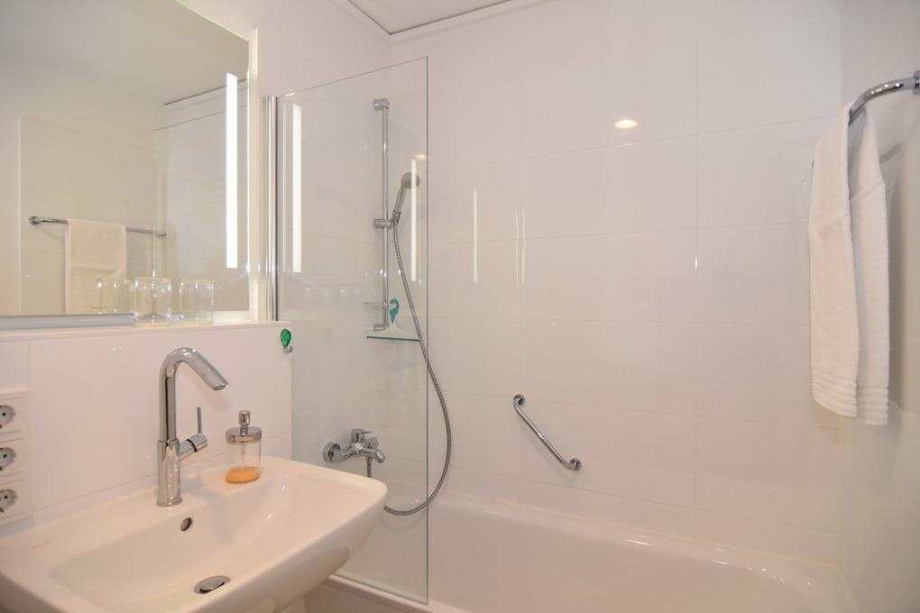 Badeværelse med bruser og badekar