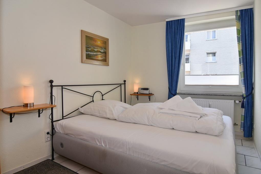 2 Zimmer-Ferienwohnung im Haus Atlantik, Nichtraucher, 2. OG, ca. 35m², unmittelbar am Strand. Wohn-/ Schlafraum mit Schlafcouch und Eßplatz, Kabel-TV, Stereoanlage, W-LAN (ohne Gewähr), kleiner Südbalkon, offene Küche mit Backofen, Mikrowelle und Geschirrspüler, Schlafzimmer mit Doppelbett (160x200) und Kleiderschrank, kleiner Flur mit Einbauschrank, Duschbad/WC. Das Apartment ist gepflegt ausgestattet und komplett gefliest. Tierhaltung verboten!!! Bettwäsche und Handtücher sind zur Anreise aufgezogen. Ein PKW-Stellplatz kann kostenpflichtig dazu gebucht werden.