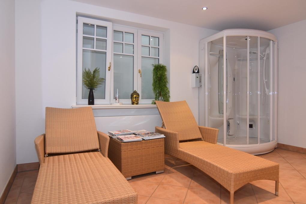 Exklusive 3-Zimmer-Ferienwohnung mit Südterrasse. "Nichtraucher". Ca. 70m². EG: Wohnzimmer mit Sitz- und Essecke, TV, Stereoanlage und W-Lan (ohne Gewähr), offene Küche mit Geschirrspüler und Mikrowelle und Backofen, Schlafzimmer mit Doppelbett, Einbauschrank und TV, Duschbad/WC. UG: Schlafzimmer mit Doppelbett, Einbauschrank und TV, Vollbad/WC. Abstellraum mit Waschmasch. / Trockner. Tierhaltung verboten. Pkw-Stellplatz 10. Kinderhochstuhl vorhanden. Im Haus: Sauna und Ruheraum. Bettwäsche und Handtücher sind zur Anreise aufgezogen. Achtung für Familien mit Kleinkindern: es gibt keine Tür zwischen Wohnraum und Treppe ins UG.