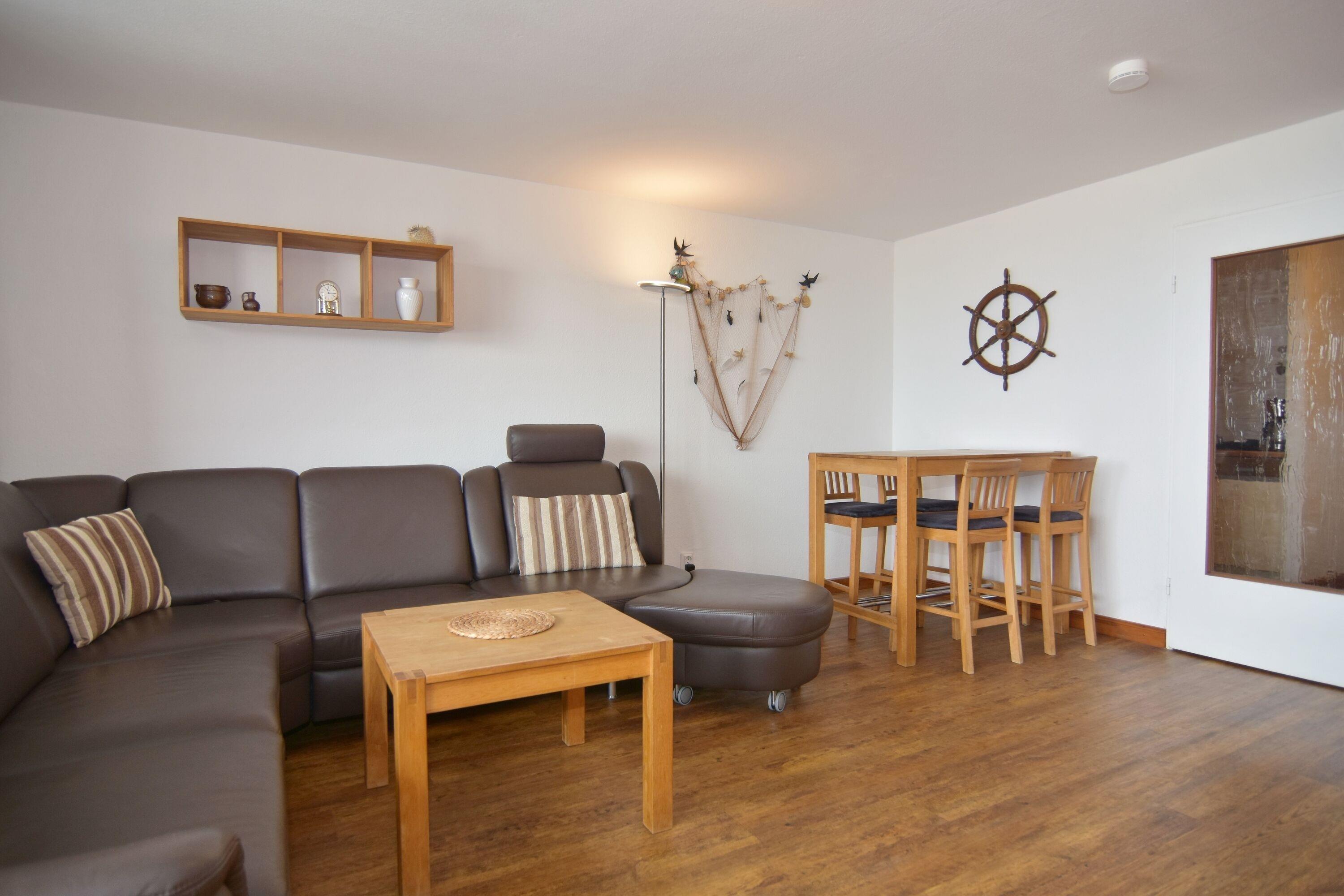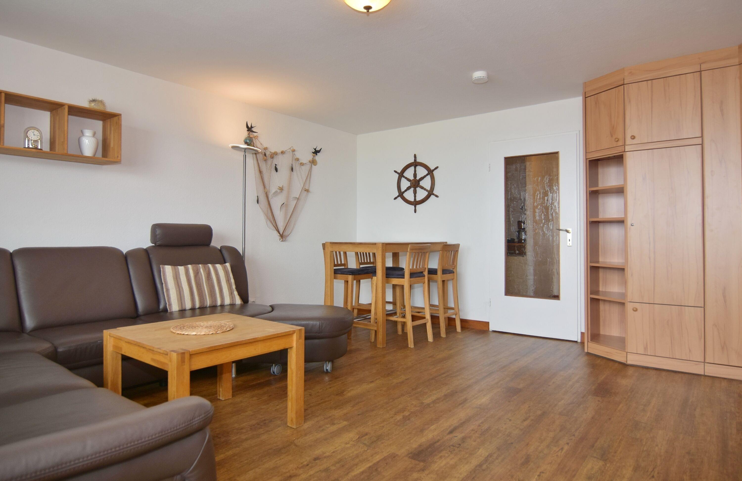 Der Wohn-/Schlafraum wird im Frühjahr 2026 renoviert und erhält neben einem Doppelbett (160x200) eine komplette Neumöblierung sowie eine neue Fenstergestaltung. Derzeitig hat die Wohnung ein Doppelschrankbett. Die Wohnung verfügt über einen Westbalkon mit Blick auf die Nordsee. Die separate Küche ist mit einem Backofen , einem Cerankochfeld, einem Kühlschrank mit Gefrierfach und einer Geschirrspülmaschine ausgestattet. Das Badezimmer verfügt über eine große Duschkabine mit flachem Einstieg und einem Handtuchheizkörper. Ein kostenfreier WLAN Hot Spot (WEG Haus am Meer - Passwortfrei - ohne Gewähr) ist vorhanden. Tierhaltung und Rauchen sind in der Wohnung nicht gestattet. Bettwäsche und Handtücher sind zur Anreise aufgezogen. Ein PKW-Stellplatz kann kostenpflichtig zugebucht werden.Änderungen in der Ausstattung bleiben bis zur Fertigstellung (ca. Ostern 2026) vorbehalten. Vorhandene Bilder zeigen die Ausstattung Stand 07/2025. Beginnend vom 15.10.2025 bis 5.4.2026 (Ostern) findet die Fassandensanierung der Landseite (Osten) sowie des Südgiebels statt. Mit Baulärm ist in dieser Zeit zu rechnen.