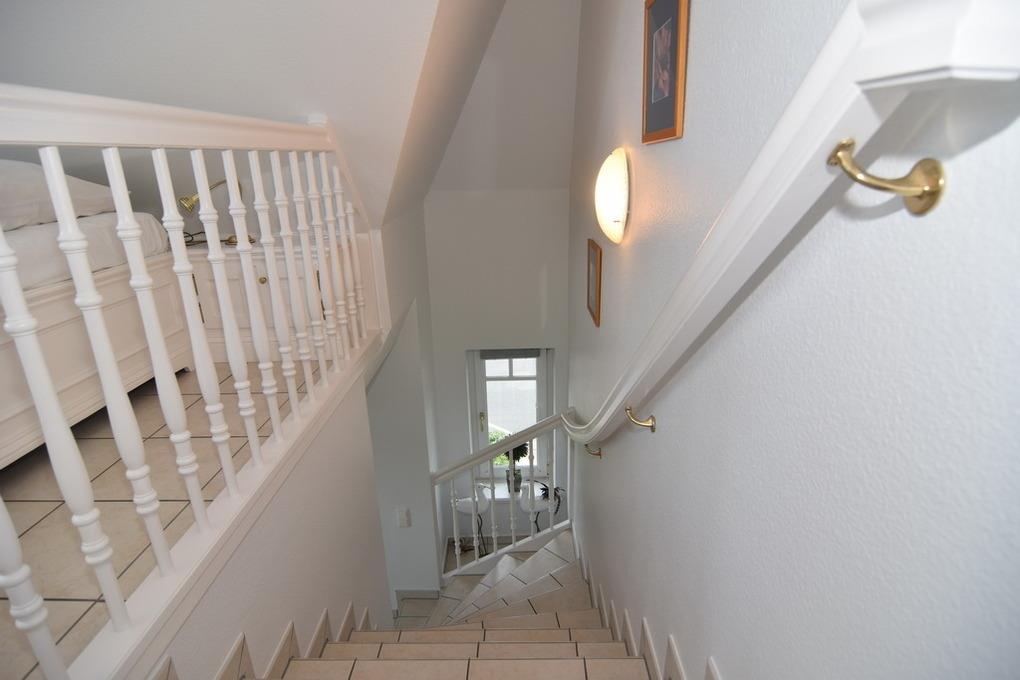2 Zimmer-Ferienwohnung im Haus Hopfengarten, ca. 38m², OG/DG. Nichtraucher-Whg.! OG: Wohnraum mit Couch, Eßplatz, WLAN (ohne Gewähr), Kabel-TV, Radio, Westbalkon Pantry-Küche m. Mikrowelle und Geschirrspüler, Duschbad/WC. DG: Schlafzimmer mit Doppelbett, Einbauschrank und TV. Waschmaschine/Trockner im App. PKW-Stellplatz Nr. 6 am Haus. Tierhaltung ist nicht gestattet. Fahrradabstellraum vorhanden. Bettwäsche und Handtücher sind zur Anreise aufgezogen. Apartment ist komplett gefliest. Achtung - keine Sonderkonditionen