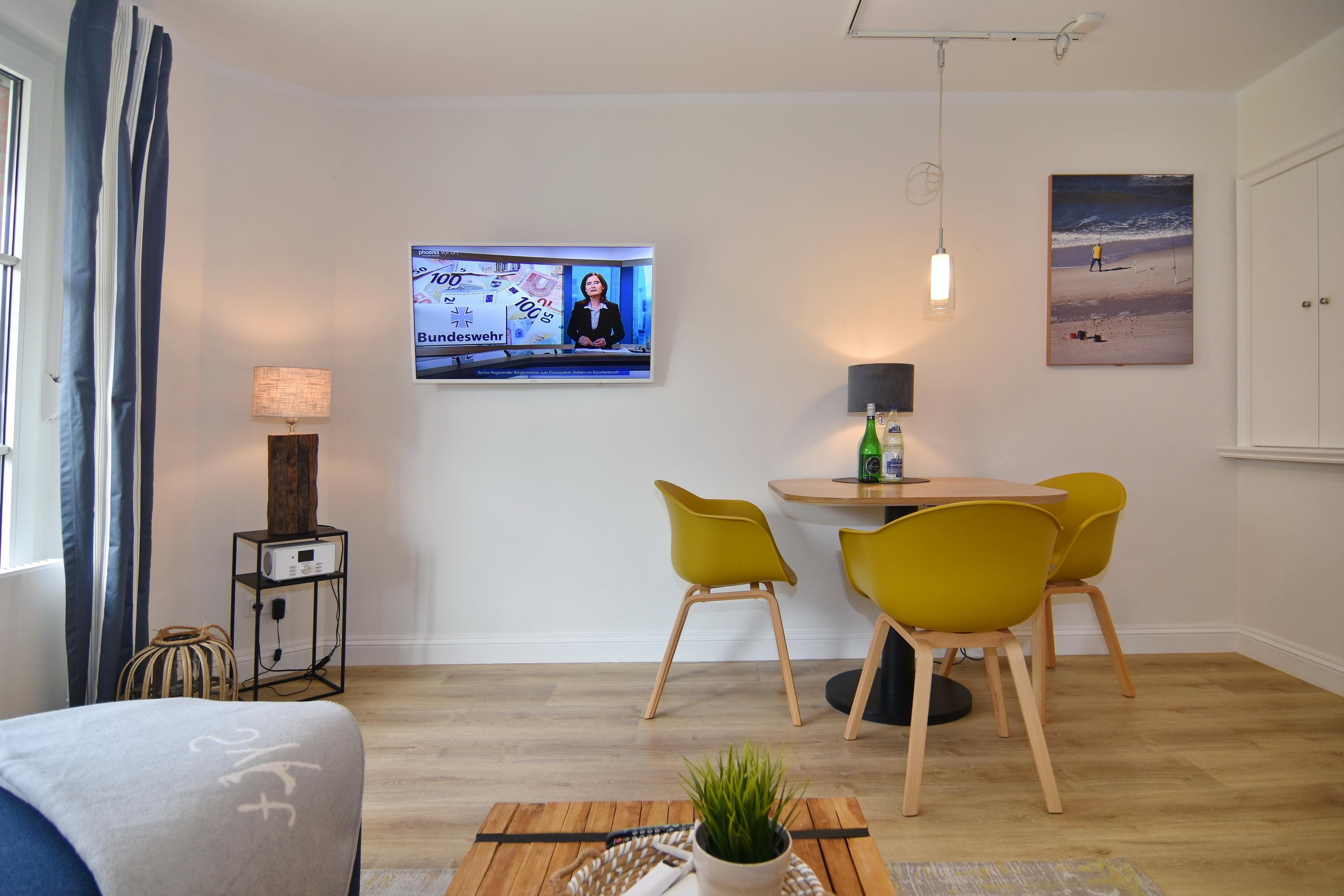 Sehr schönes 2-Zimmer-Apartment mit sonniger Südwestterrasse im Haus "Luv". Ca. 50 m², Nichtraucher. Strandkorb (Apr.-Okt.) + Gartenmöbel. Gemeinschaftsgarten EG: Helles, schön möbliertes Wohnzimmer mit 2-Sitzer-Couch, Sessel, Essplatz und Küchenzeile mit Mikrowelle und 2-Platten-Herd, Flat-TV, Radio, W-LAN (ohne Gewähr). UG: helles Schlafzimmer mit Box-Spring-Doppelbett (2x80x200), Einbauschränken und Flat-TV, Duschbad/WC, Flur. Tierhaltung ist nicht gestattet. Garage Nr. 2 kann kostenlos gebucht werden. Schönes Schwimmbad und finnische Sauna. Waschmaschine und Trockner (Münzautomaten). Bettwäsche und Handtücher sind zur Anreise aufgezogen!