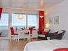 1-Zimmer-Ferienwohnung, ca. 34 qm, 9.OG, im "Haus Metropol". Wohn-/ Schlafraum mit Doppelbett, Eßplatz am Fenster, zwei Loom Sessel, Kabel-TV, Radio, WLAN, Westbalkon mit herrlichen Meeresblick, Küchenzeile im Flur mit Geschirrspüler und Mikrowelle, Duschbad/WC. Appartement ist gefliest. - Nichtraucher-Whg. Tierhaltung ist nicht gestattet. Bettwäsche und Handtücher sind zur Anreise aufgezogen. Ein PKW-Stellplatz kann kostenpflichtig zugebucht werden.