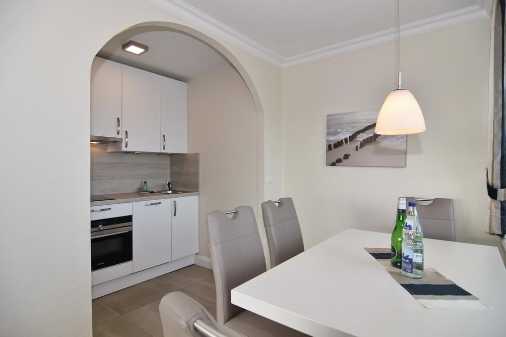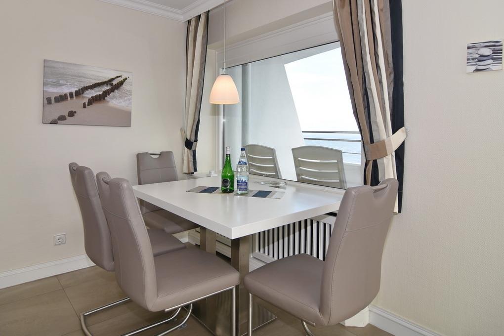 Exclusive 2-Zimmer-Ferienwohnung "Haus Metropol", 9.OG, Nord-Ost-Ecke im Haus Metropol. Nichtraucher! Wohnraum mit Doppelschlafcouch und Sessel, Telefon, Kabel-TV, Internet/ W-Lan, ohne Gewähr, Radio, Eßecke am Fenster, Nordbalkon mit herrlichem. Meeresblick, Ostbalkon mit Blick über die Insel, offene Küche mit 2-Platten-Herd, Geschirrspüler und Microwelle, Schlafzimmer mit Doppelbett, Einbauschrank und Ostbalkon, Dusche/WC mit Bidet. Das Badezimmer ist sowohl vom Flur als auch direkt vom Schlafzimmer aus zu begehen. Tierhaltung ist nicht gestattet. Wohn-/ Schlafraum ist mit einem hellen Holzfußboden ausgelegt. PKW-Stellplatz/Garage kann kostenpflichtig gebucht werden. Bettwäsche und Handtücher sind zur Anreise aufgezogen.