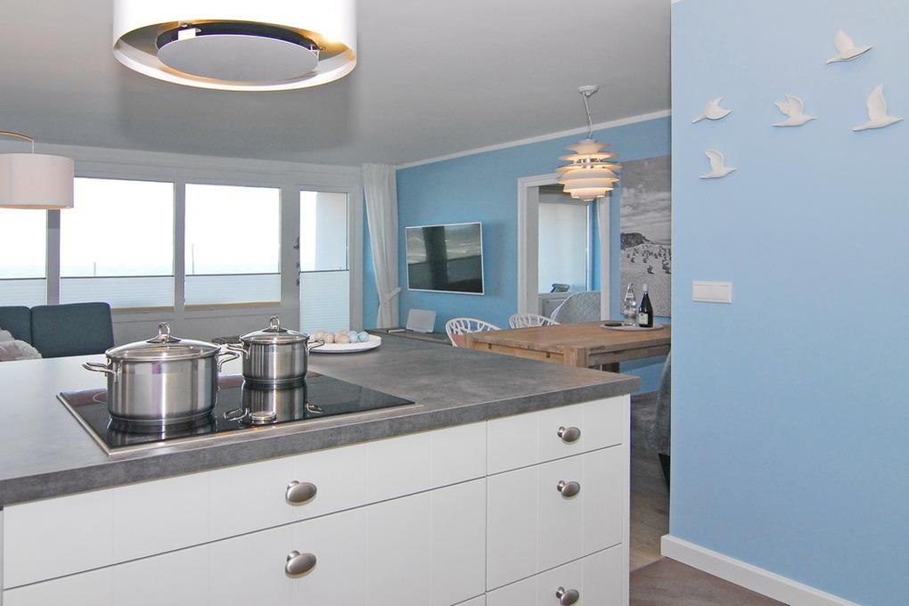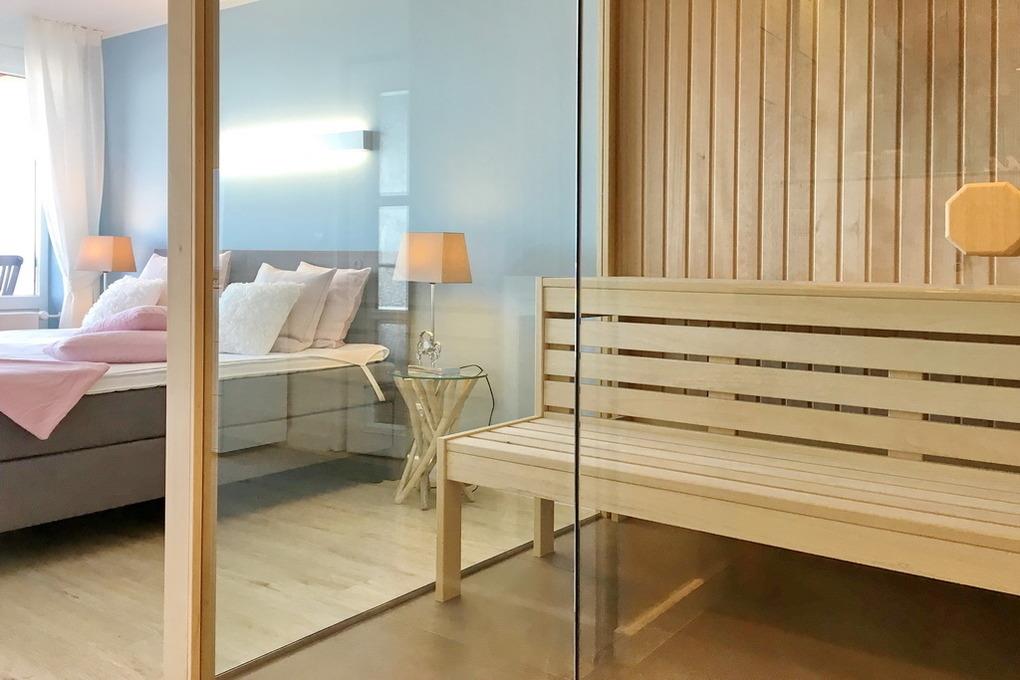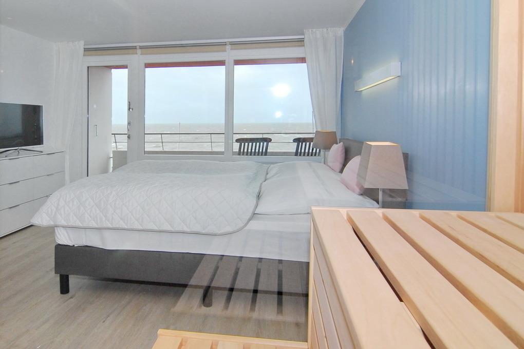 Das ist nicht zu toppen. Diese exklusive 2-Zimmer-Ferienwohnung im Haus Metropol bietet neben einer wunderschönen Ausstattung eine Sauna mit Blick auf das Meer. Genießen Sie auf 76m² ein elegantes Wohnzimmer mit geräumiger Sitz- und Essecke und einer Küche, die keine Wünsche offen lässt. Der freie Küchenblock bietet viel Arbeitsfläche, so dass hier jeder kulinarischer Traum erfüllt werden kann. Die Sitzecke lässt sich zu einer Schlafgelegenheit mit einer Liegefläche von 140 x 200 cm umfunktionieren. Das separate Schlafzimmer mit Doppelbett (2x90x200), Kleiderschrank und Flat-TV verfügt genauso wie das Wohnzimmer über einen eigenen Westbalkon. Direkt ans Schlafzimmer angrenzend befindet sich die finnische Sauna mit großer Panoramascheibe, so dass Sie von hier aus auf das Meer schauen können. Zwei Duschbäder mit Regenduschen sorgen für die entsprechende Abkühlung. Ein Abstellraum mit Schrankfläche bietet nochmals Platz für Kleidung und Gepäck. Diese Wohnung ist eine strikte Nichtraucher-Wohnung, Tierhaltung ist hier nicht gestattet. Ein PKW-Stellplatz kann kostenpflichtig gebucht werden. Bettwäsche und Handtücher sind zur Anreise aufgezogen.