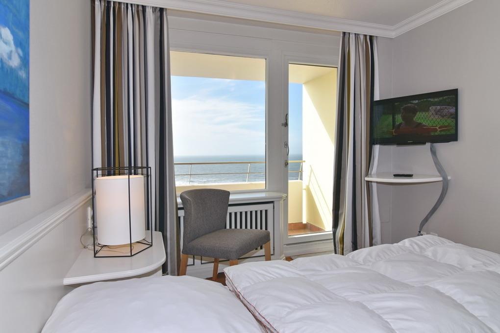 . Exklusive 3-Zimmer-Ferienwohnung im 11. Stock des Haus Metropol. Nichtraucher-Whg.![nbsp][nbsp]Wohnzimmer mit großzügiger Couch und Sessel, Eßplatz am Fenster mit Blick auf das Meer, TV, Radio, WLAN (ohne Gewähr),[nbsp][nbsp]separate Küche mit Geschirrspüler und Backofen. Vom Wohnzimmer gelangen Sie auf den West- und Nordbalkon, beide bieten einen herrlichen Meeresblick. Für die Ruhestunden bietet die Wohnung ein großes Schlafzimmer mit Doppelbett (180x200), Einbauschränken, Flachbild-TV, eigenem Westbalkon mit Meeresblick und Vollbad ensuite. Vom zweiten Schlafzimmer mit 2 Einzelbetten (90x200) und Einbauschrank gelangen Sie über den Flur ins Duschbad/WC. Tierhaltung und Rauchen sind hier nicht gestattet. Der dazugehörige Garagen-Stellplatz (10/T03) kann bei Buchungsabschluss zu € 15,--/Nacht gebucht werden. Waschküche und Fahrradkeller befinden sich im Haus. Bettwäsche und Handtücher sind zur Anreise aufgezogen..