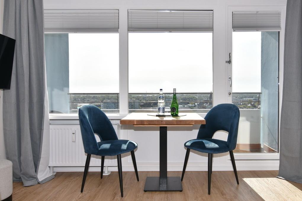 Schönes, modernes 1-Zimmer-Apartment im 11. OG des Haus "Metropol". Ca. 30 m² zur Landseite mit toller Sicht über die Insel bis zum Wattenmeer. Wohn-/ Schlafzimmer mit Einzelschrankbetten (2x85x200), Essplatz am Fenster, 2-Sitzer-Sofa, kleiner Sessel, Couchtisch, TV, Radio, WLAN (ohne Gewähr). Vollständige Küchenzeile im Flur mit Geschirrspüler, Ceranfeld, Backofen und Mikrowelle, Duschbad/WC. Großer Ostbalkon mit Balkonmöbeln und freiem Blick über die Insel. Rauchen und Tierhaltung ist nicht gestattet. Bettwäsche und Handtücher sind zur Anreise aufgezogen. Ein PKW-Stellplatz kann kostenpflichtig zugebucht werden.